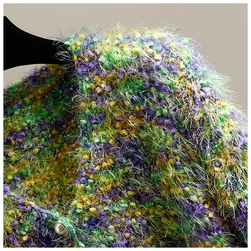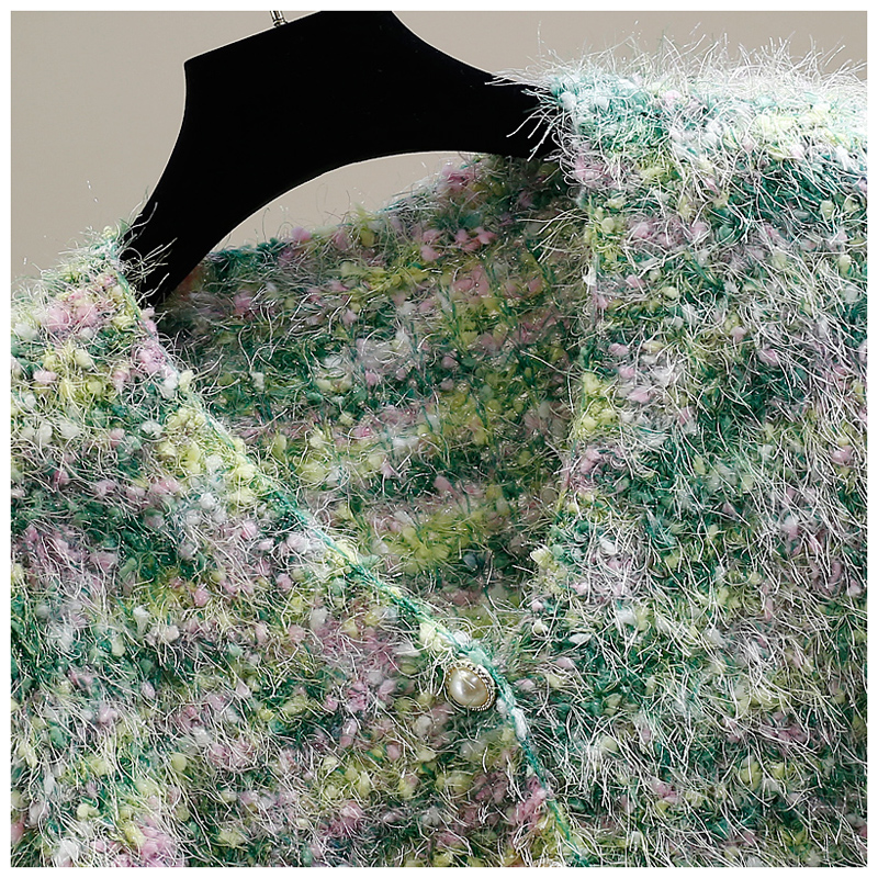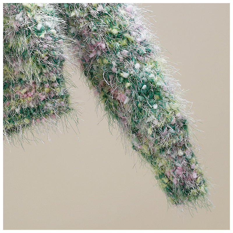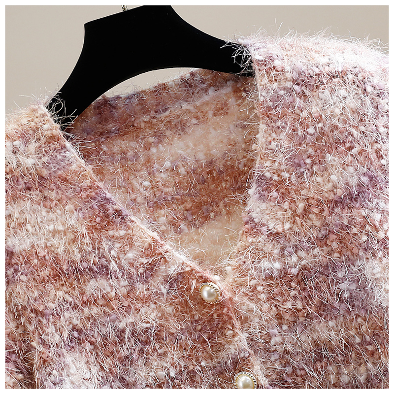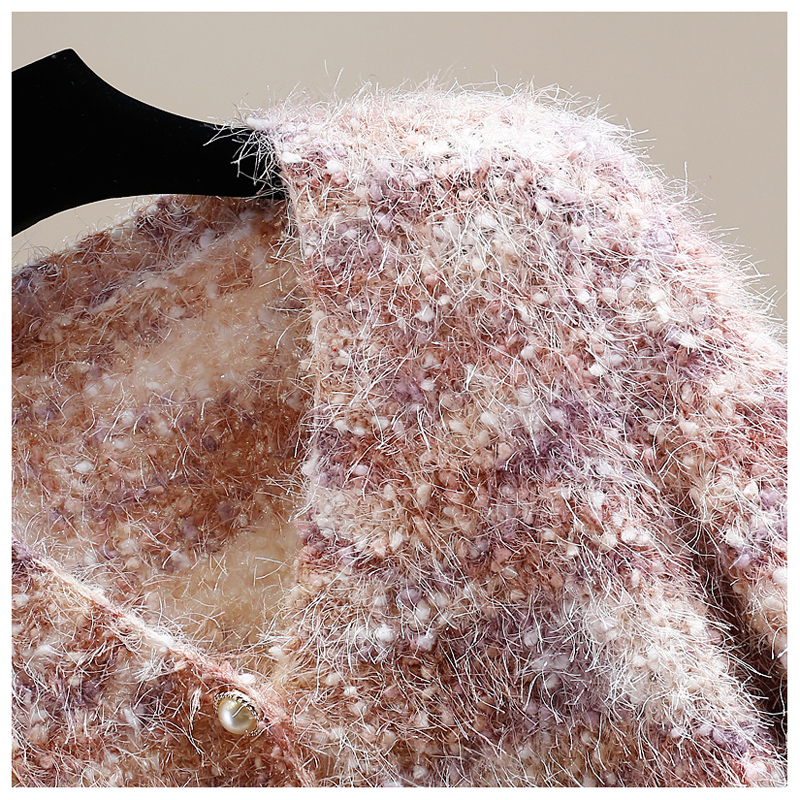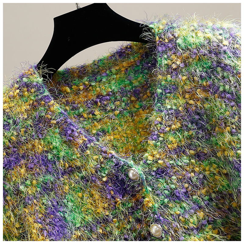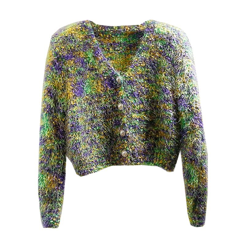 時尚彩色粗線毛絨絨鉤織V領長袖毛衣寬鬆顯瘦軟糯氣質短款毛衣潮