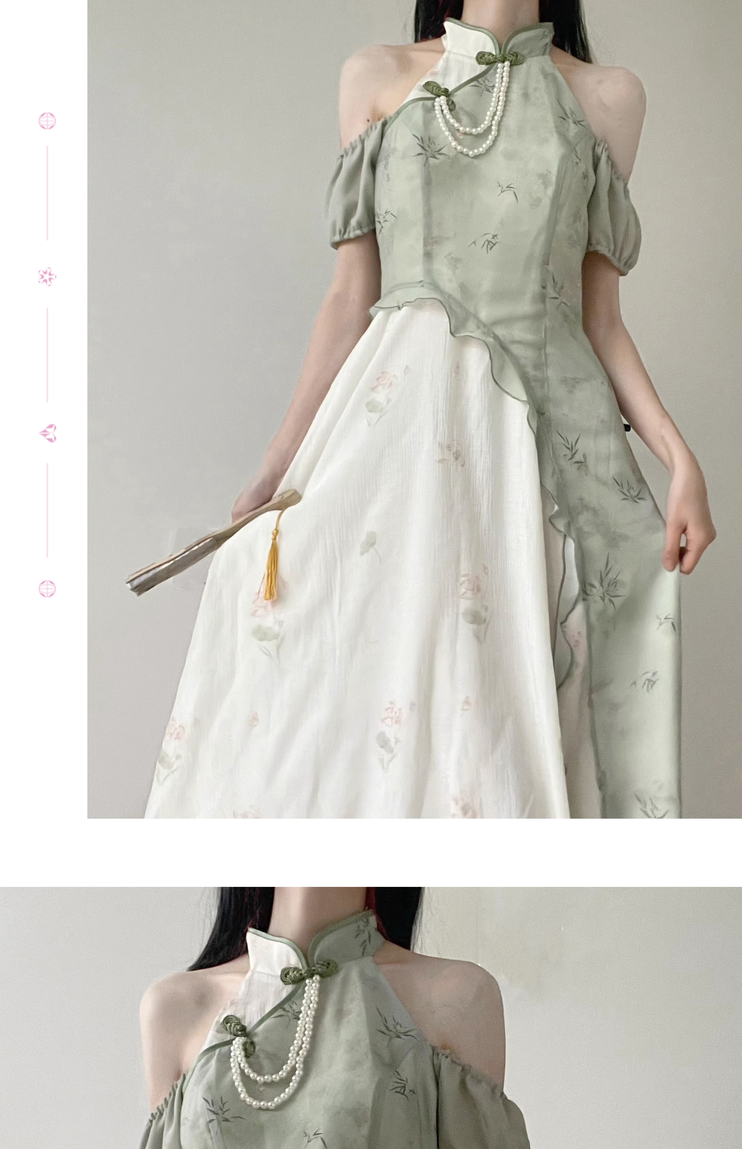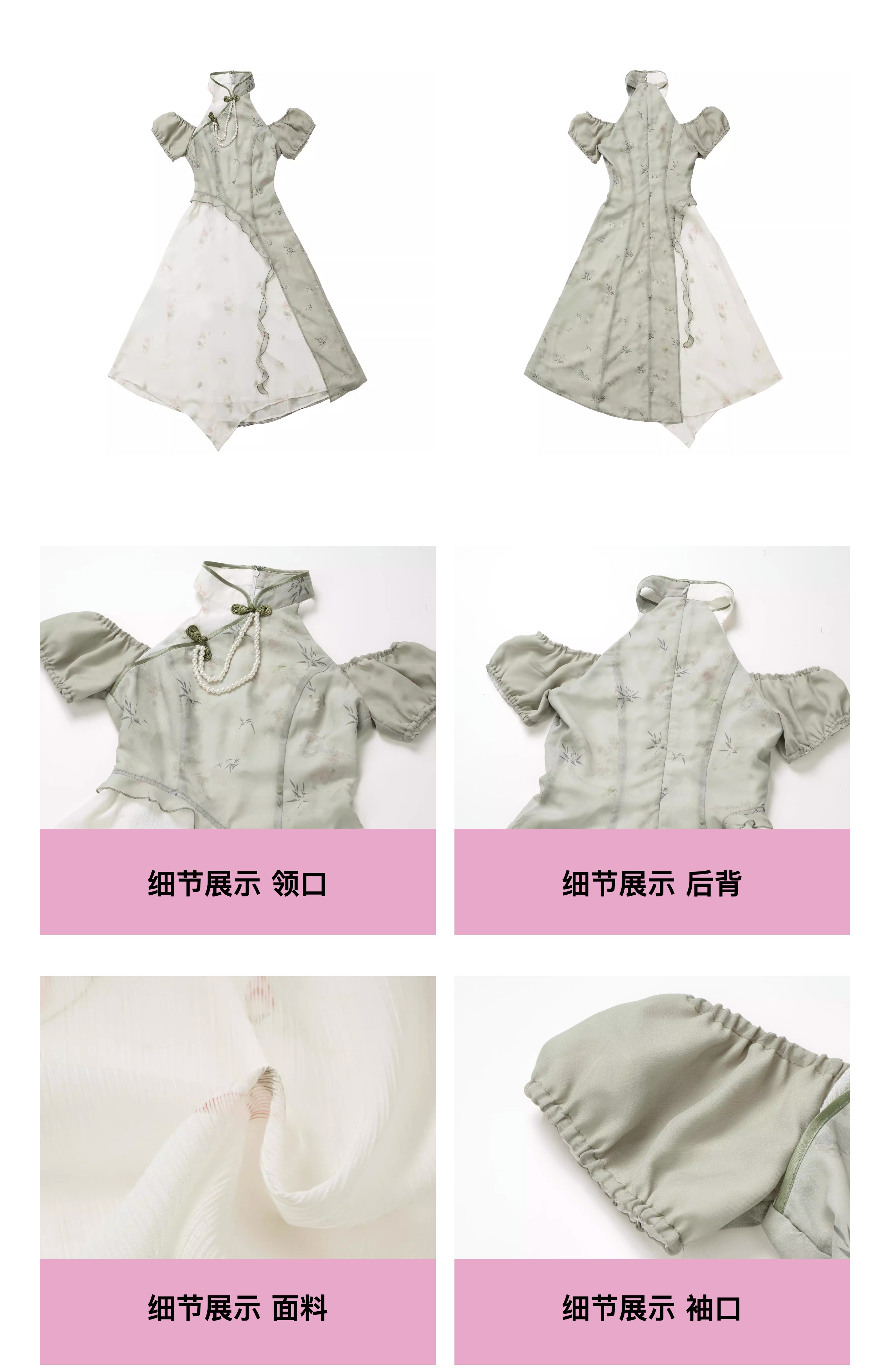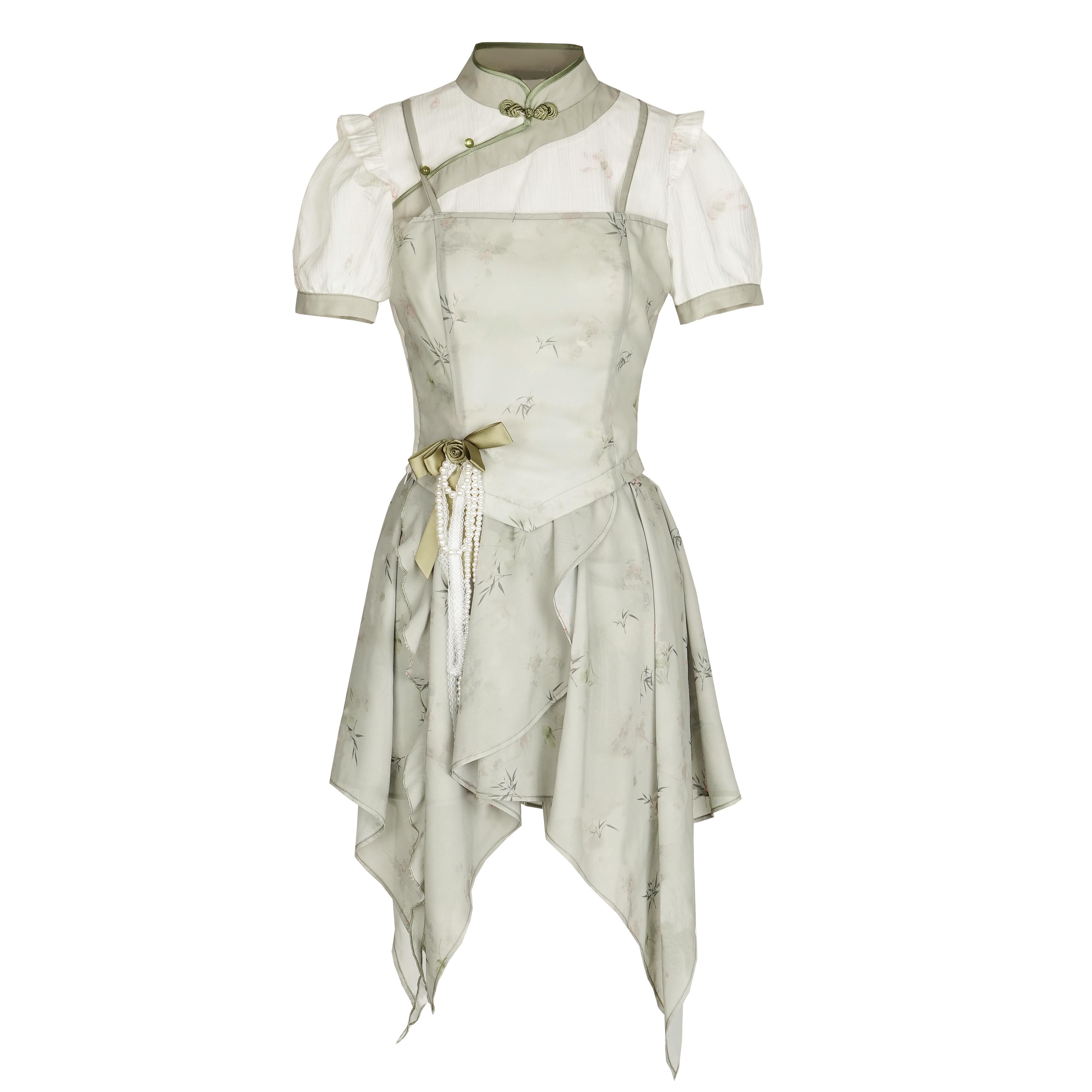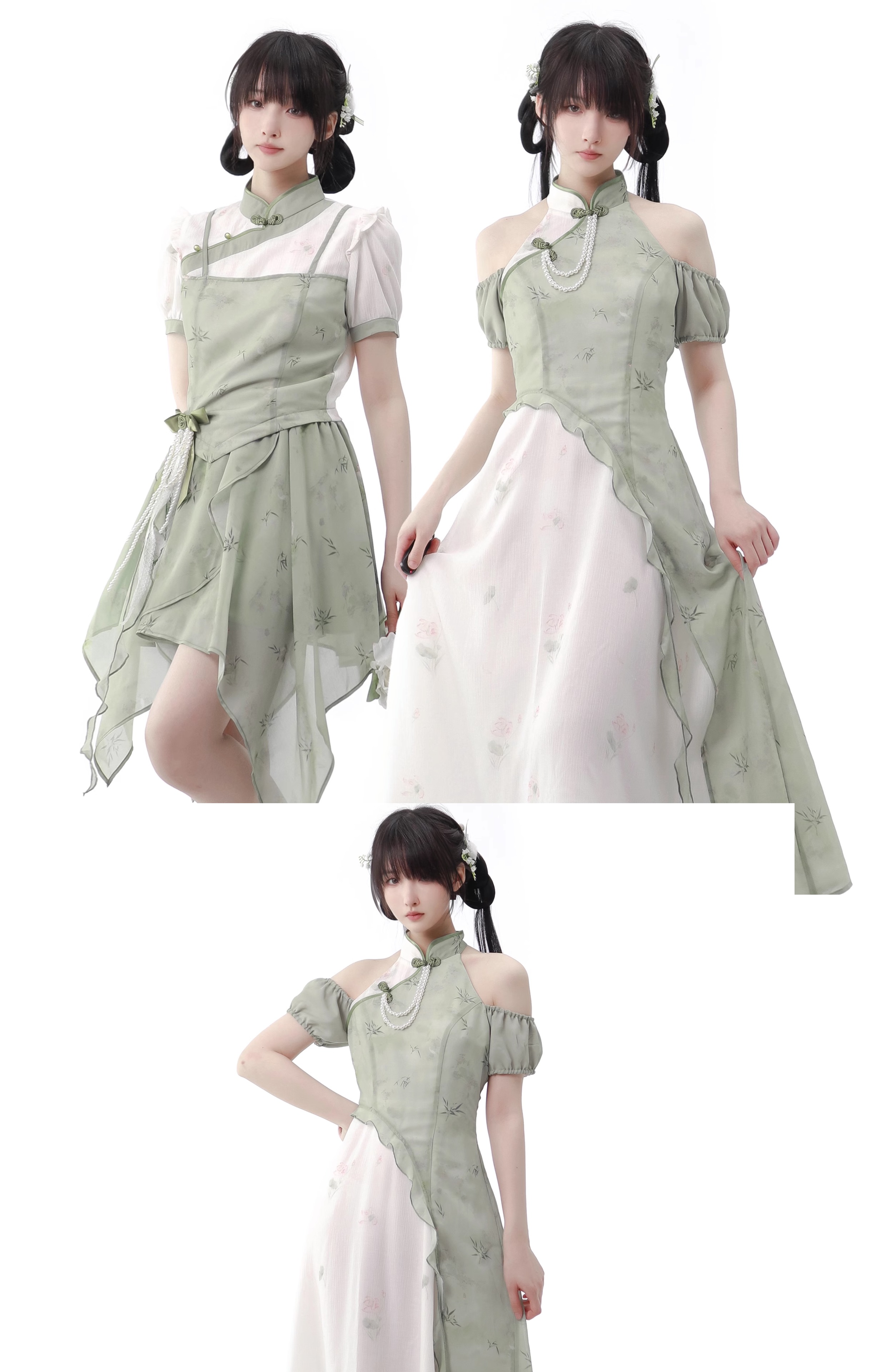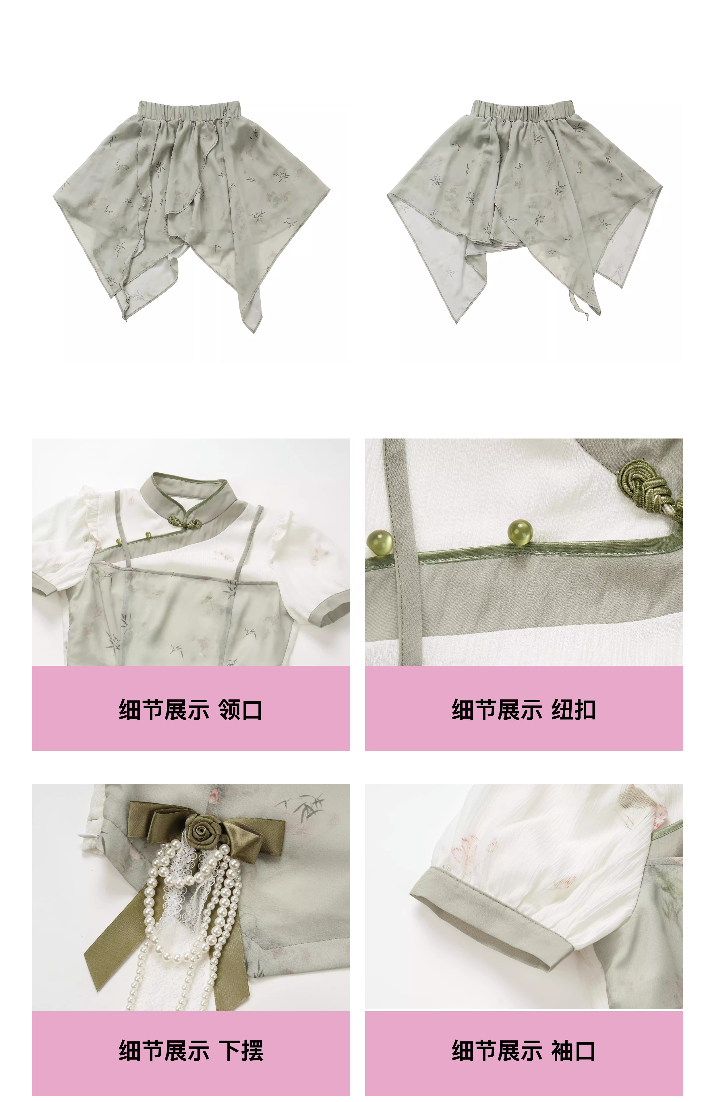 顏色分類 旗袍領上衣(送珍珠蝴蝶結),不規則半身裙,露肩旗袍領洋裝(送珍珠蝴蝶結),短袖旗袍領洋裝(送珍珠蝴蝶結)