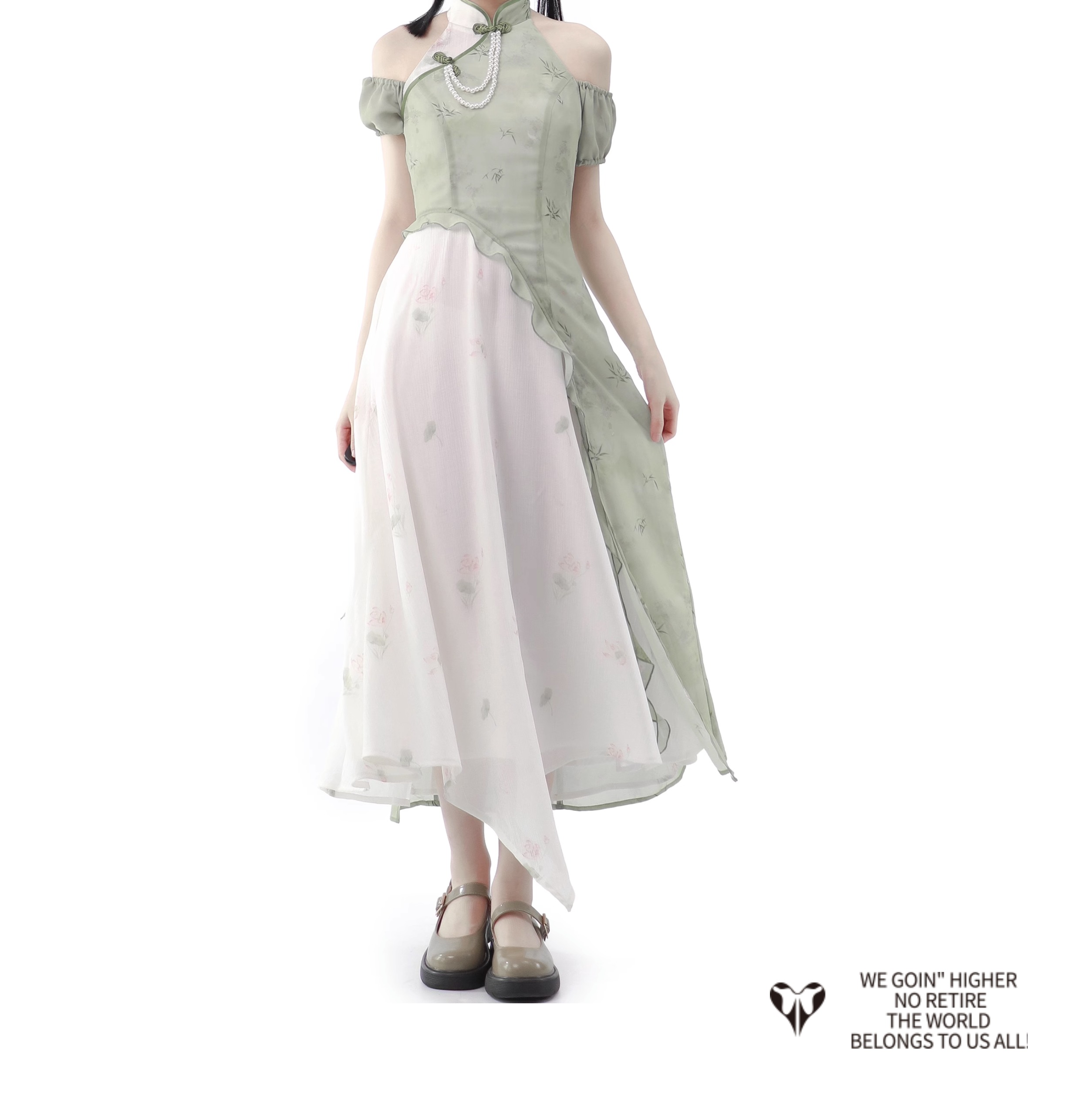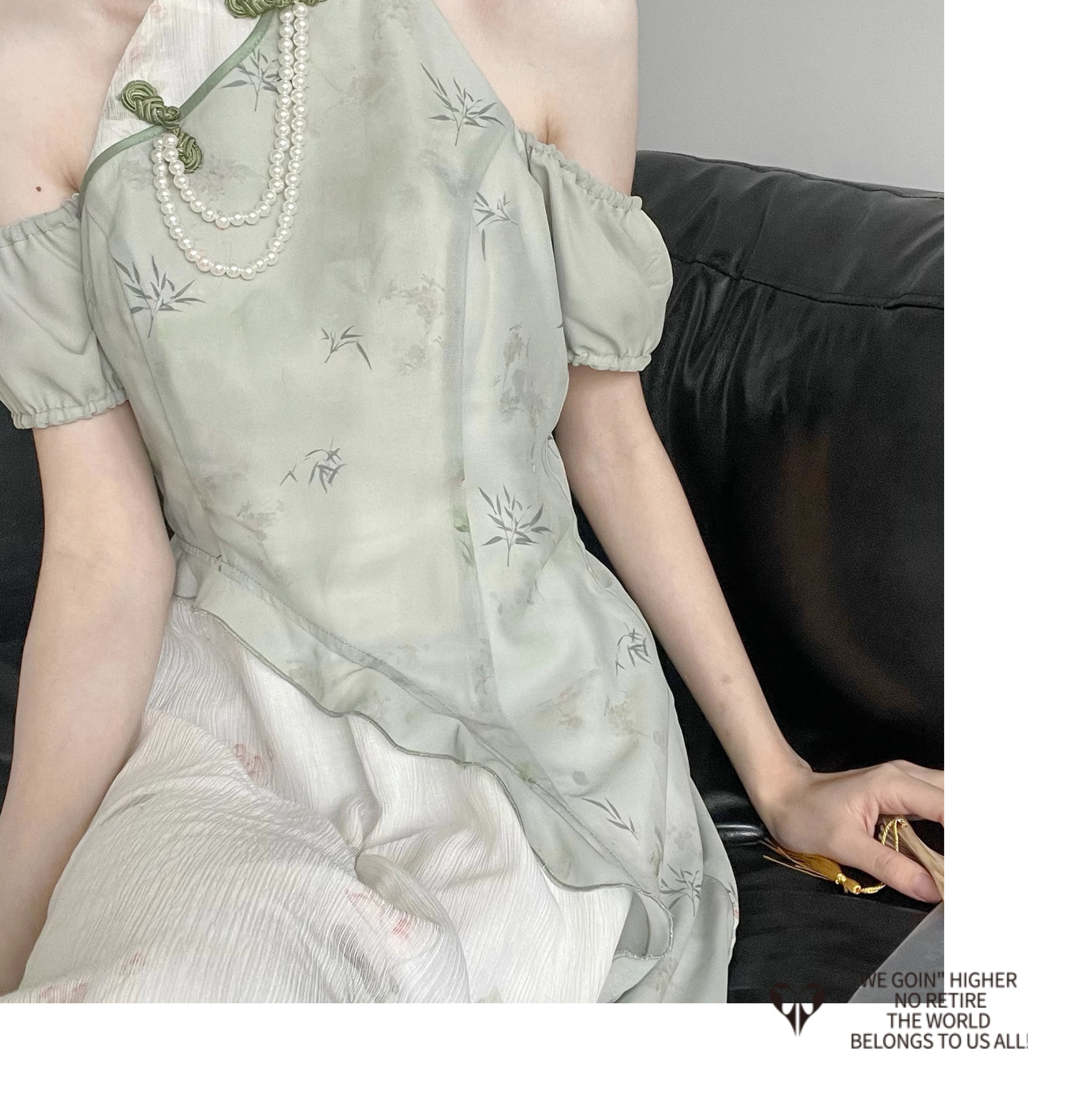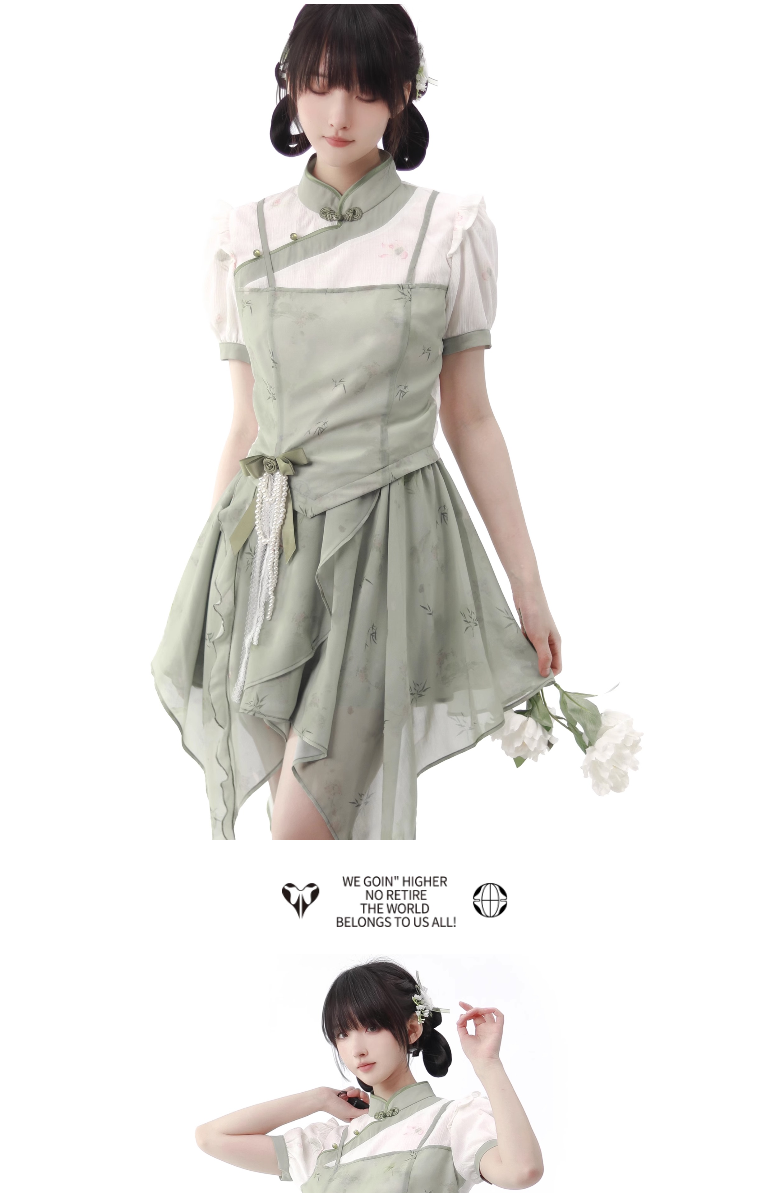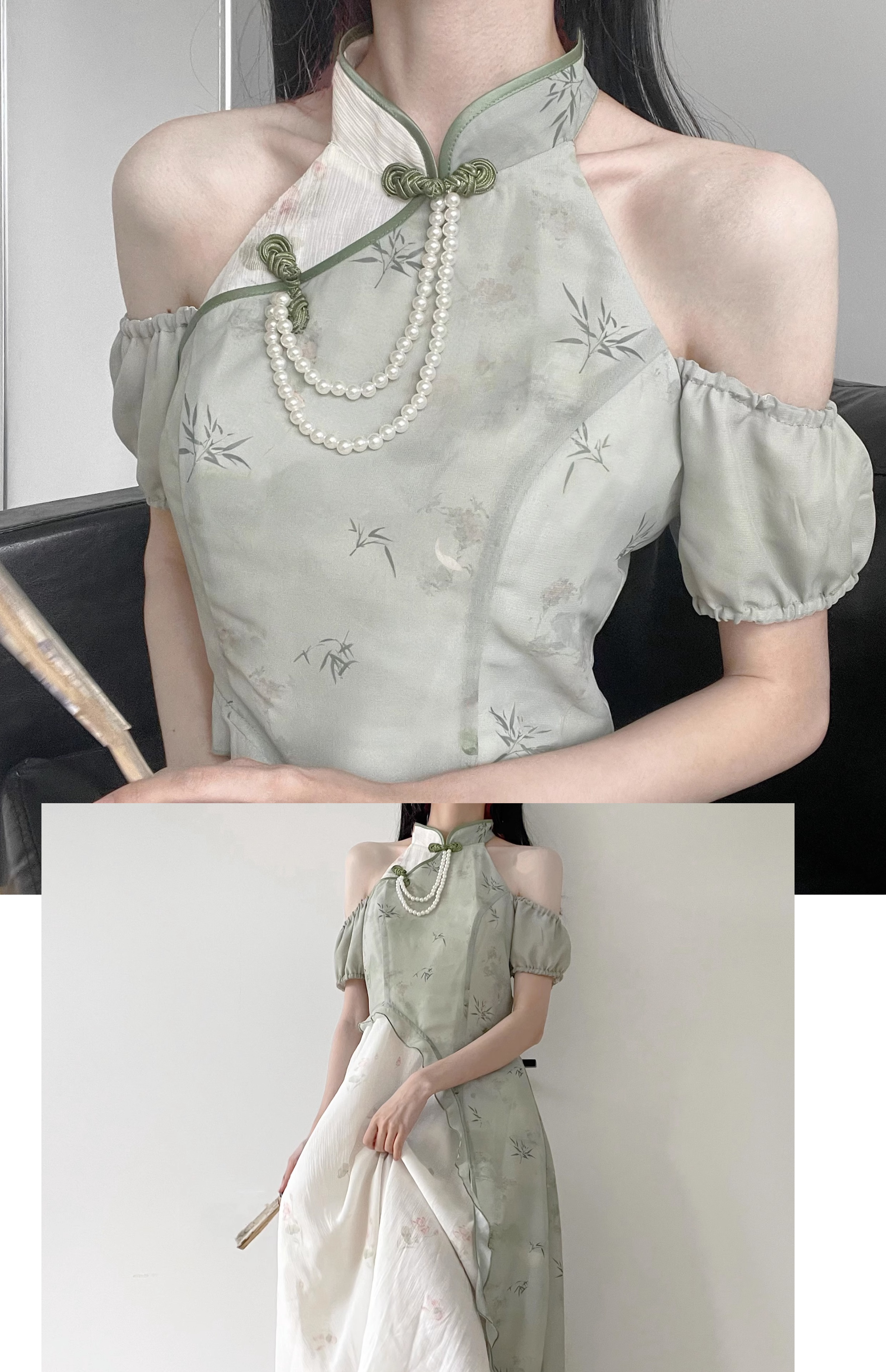 顏色分類 旗袍領上衣(送珍珠蝴蝶結),不規則半身裙,露肩旗袍領洋裝(送珍珠蝴蝶結),短袖旗袍領洋裝(送珍珠蝴蝶結)