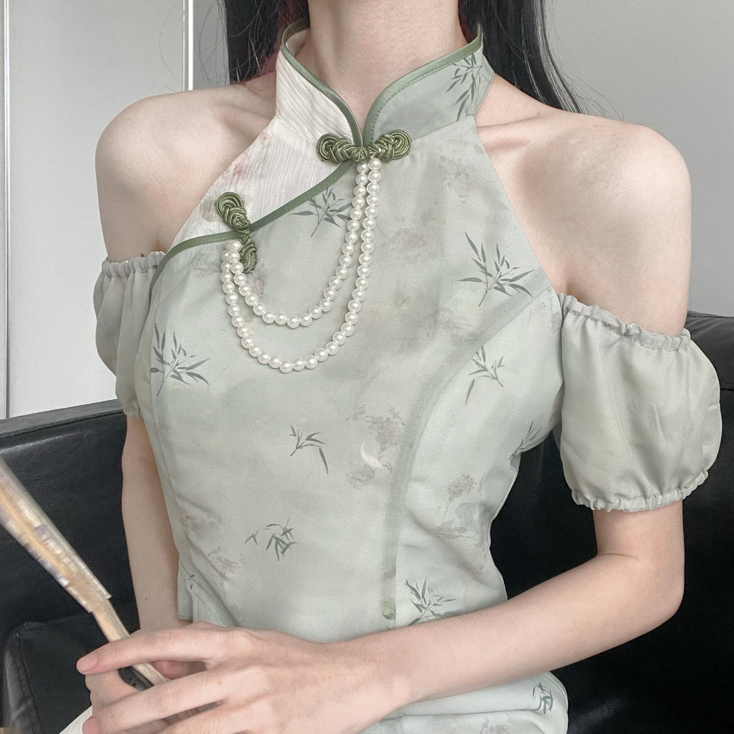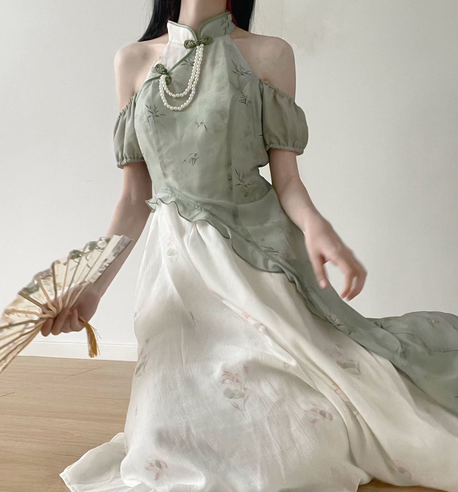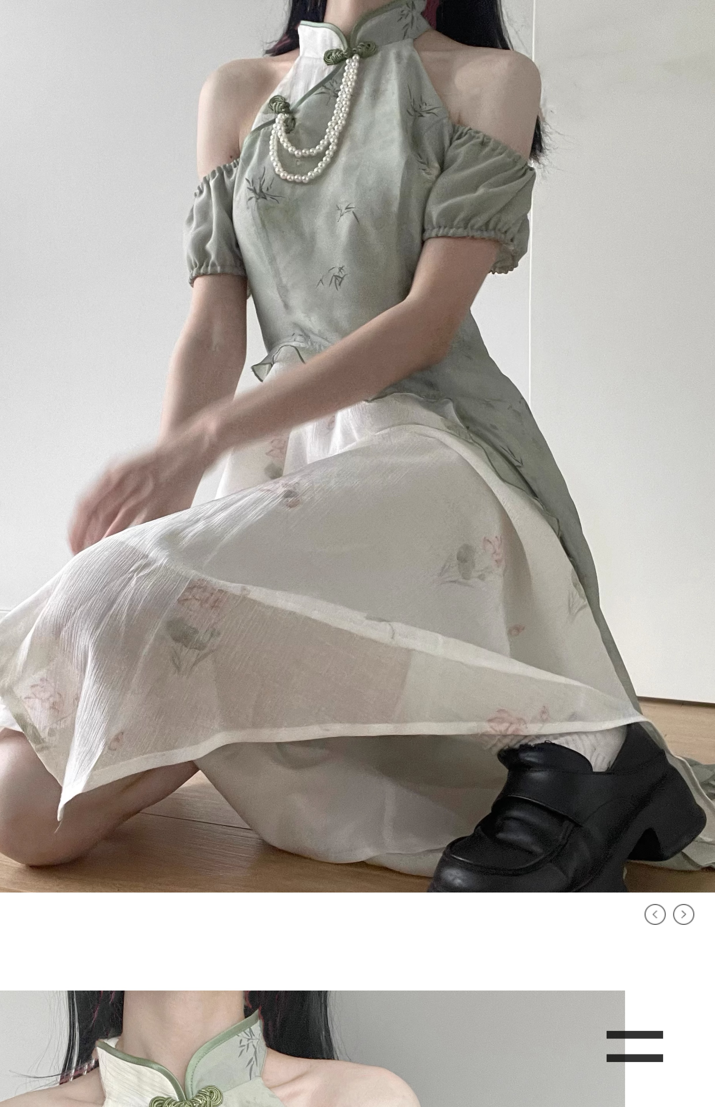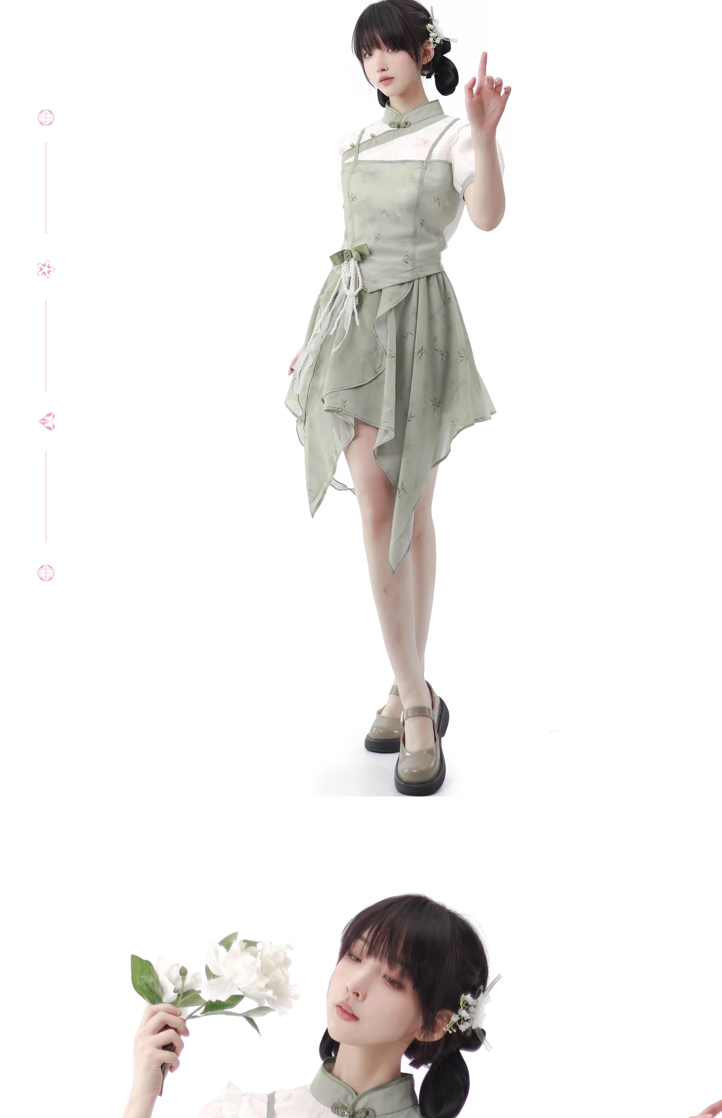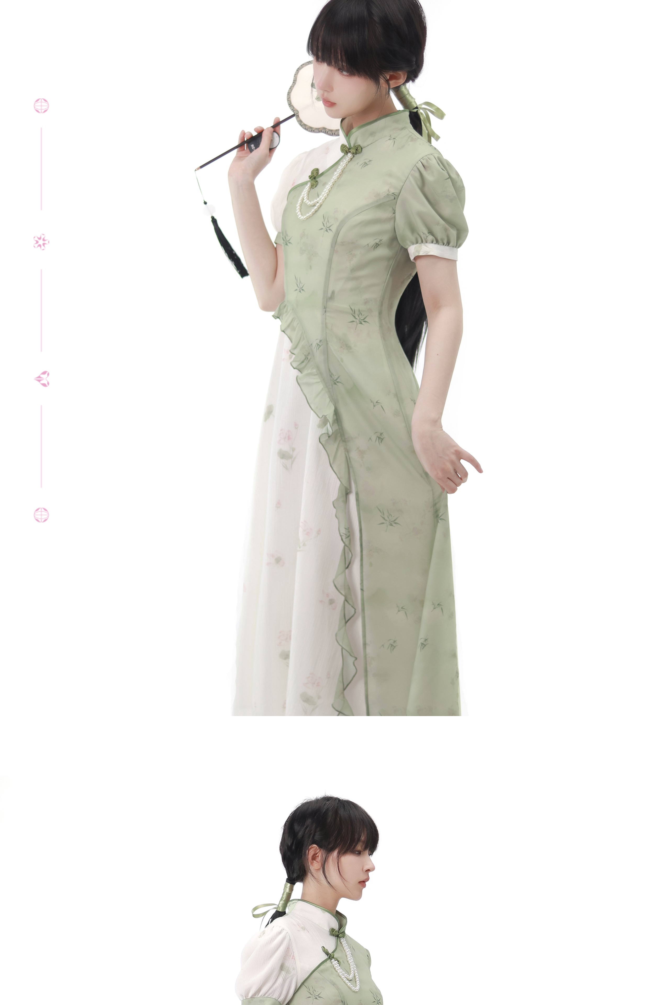 顏色分類 旗袍領上衣(送珍珠蝴蝶結),不規則半身裙,露肩旗袍領洋裝(送珍珠蝴蝶結),短袖旗袍領洋裝(送珍珠蝴蝶結)