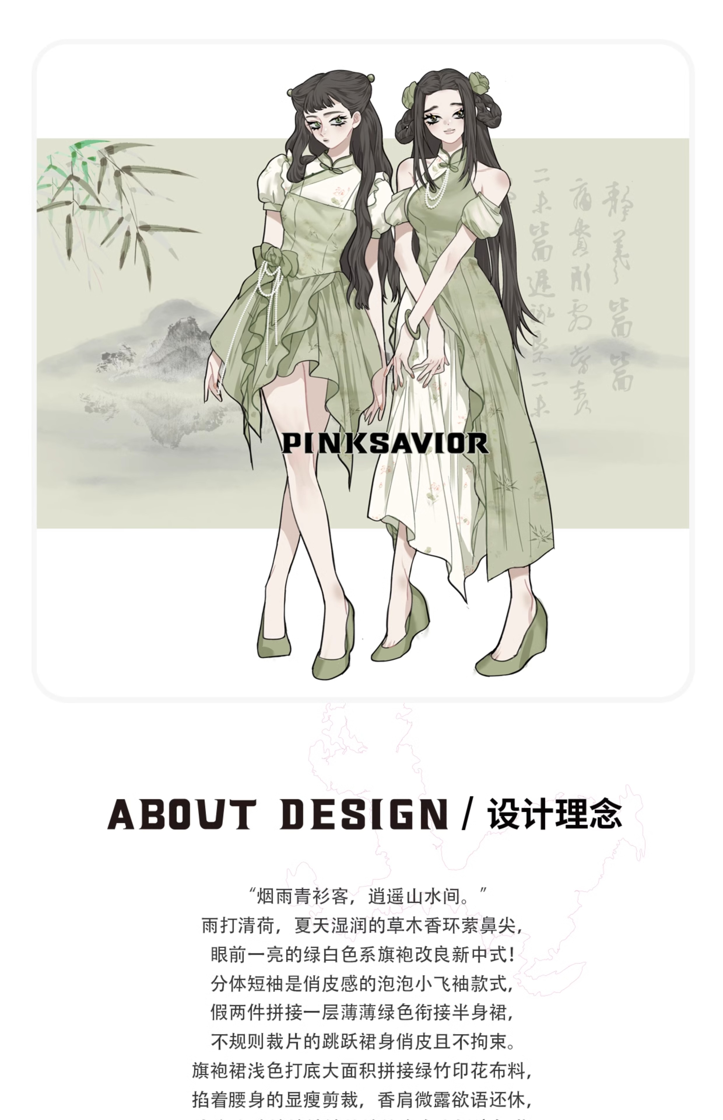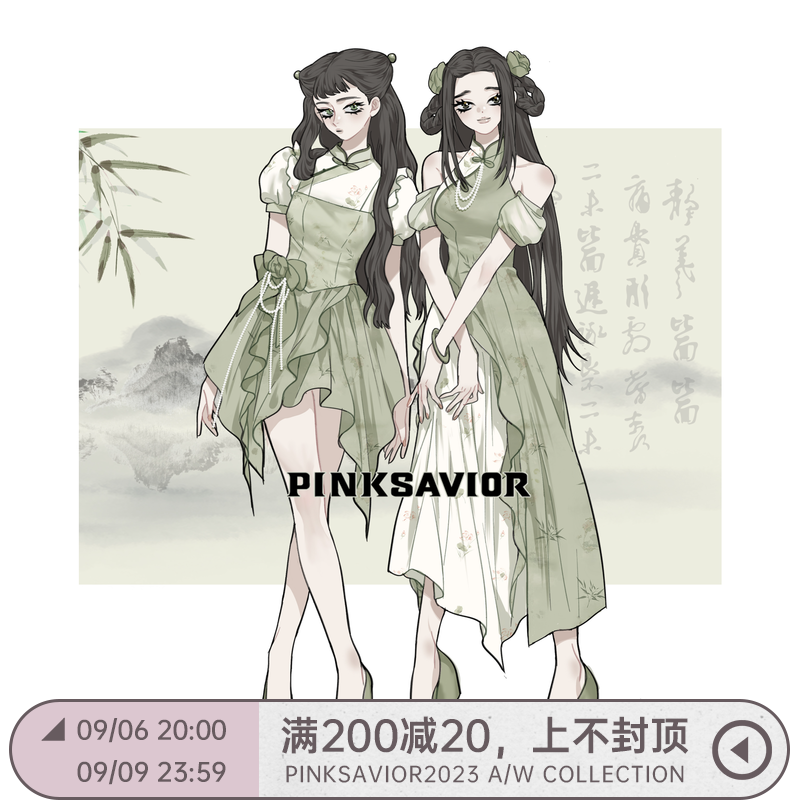 pinksavior【青衫煙雨】新中式旗袍飄帶流蘇裝飾修身收腰洋裝