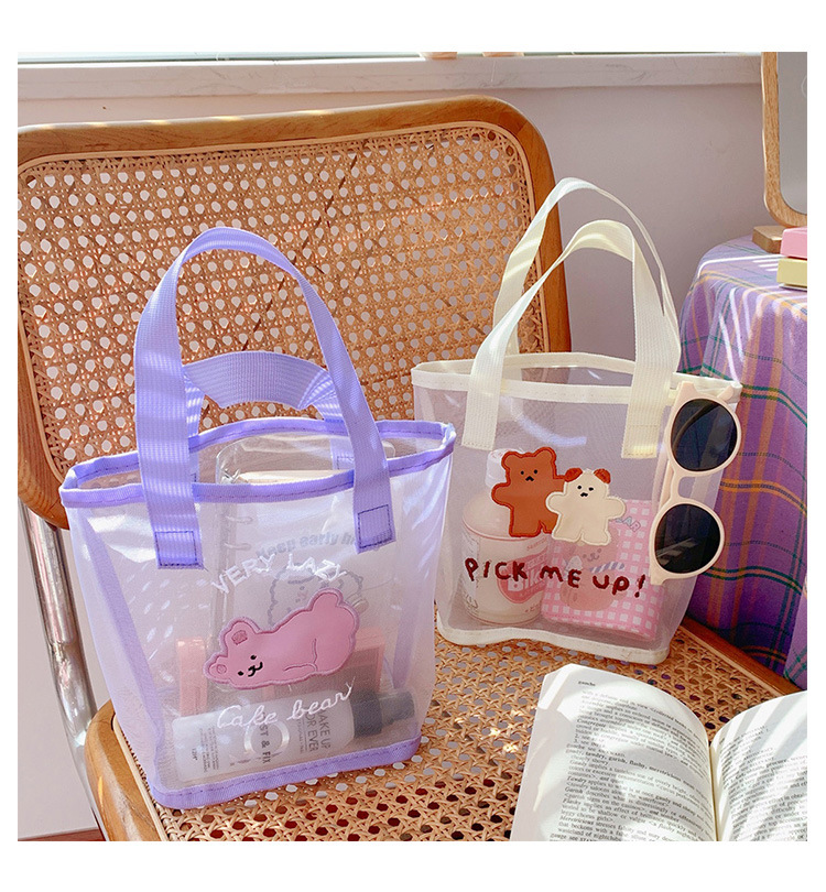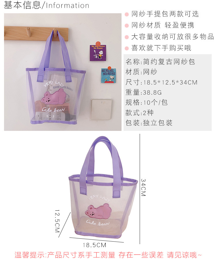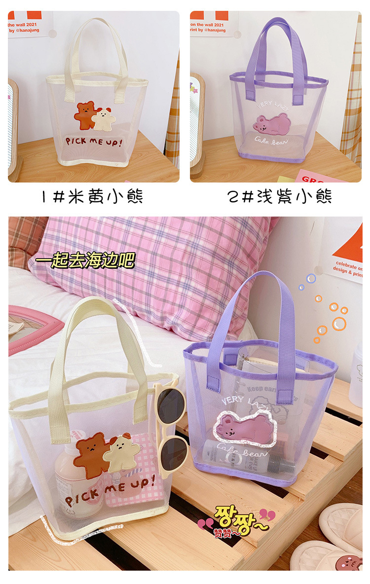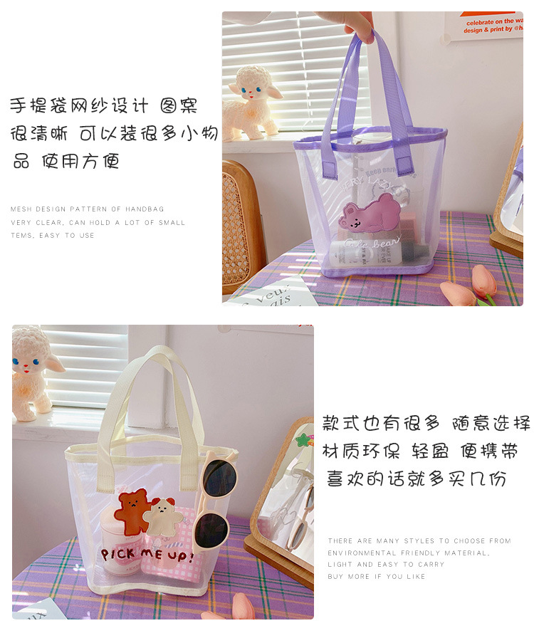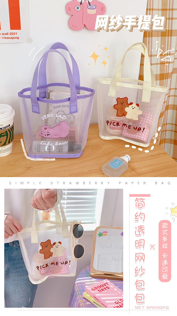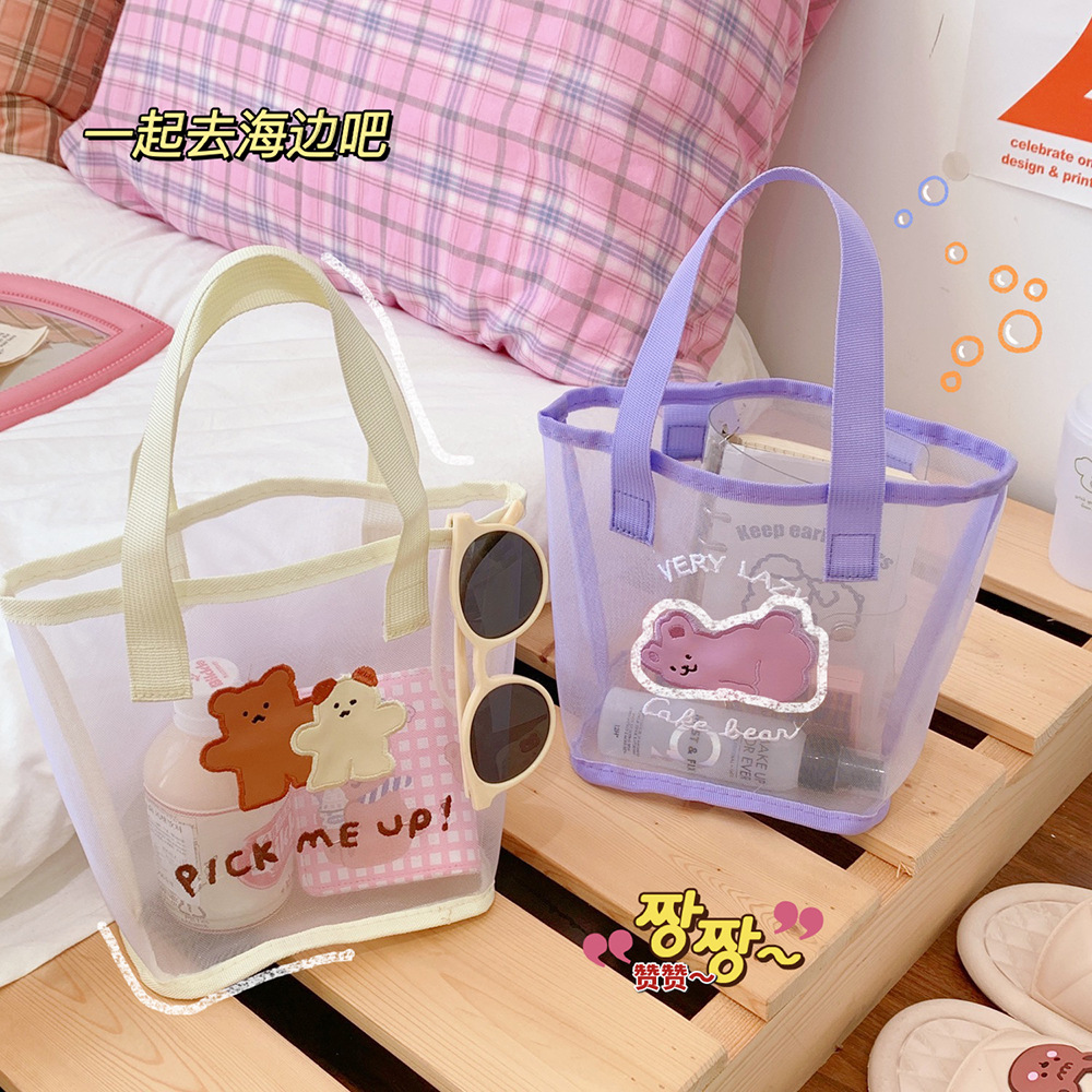 简约ins复古可爱透明网纱手提单肩包清新少女沙滩洗漱化妆收纳袋