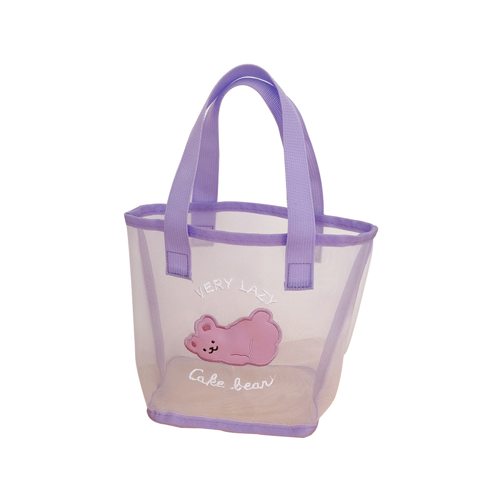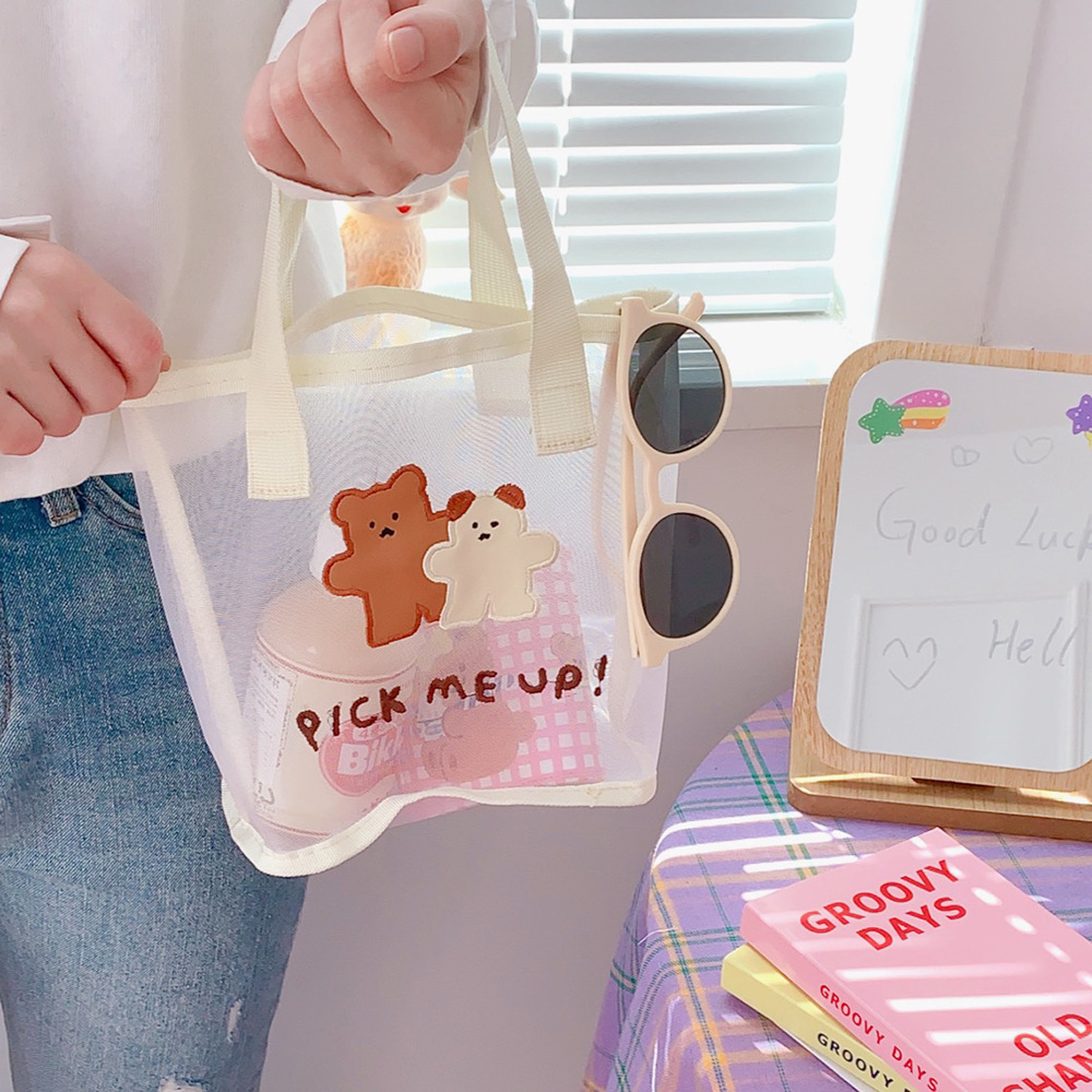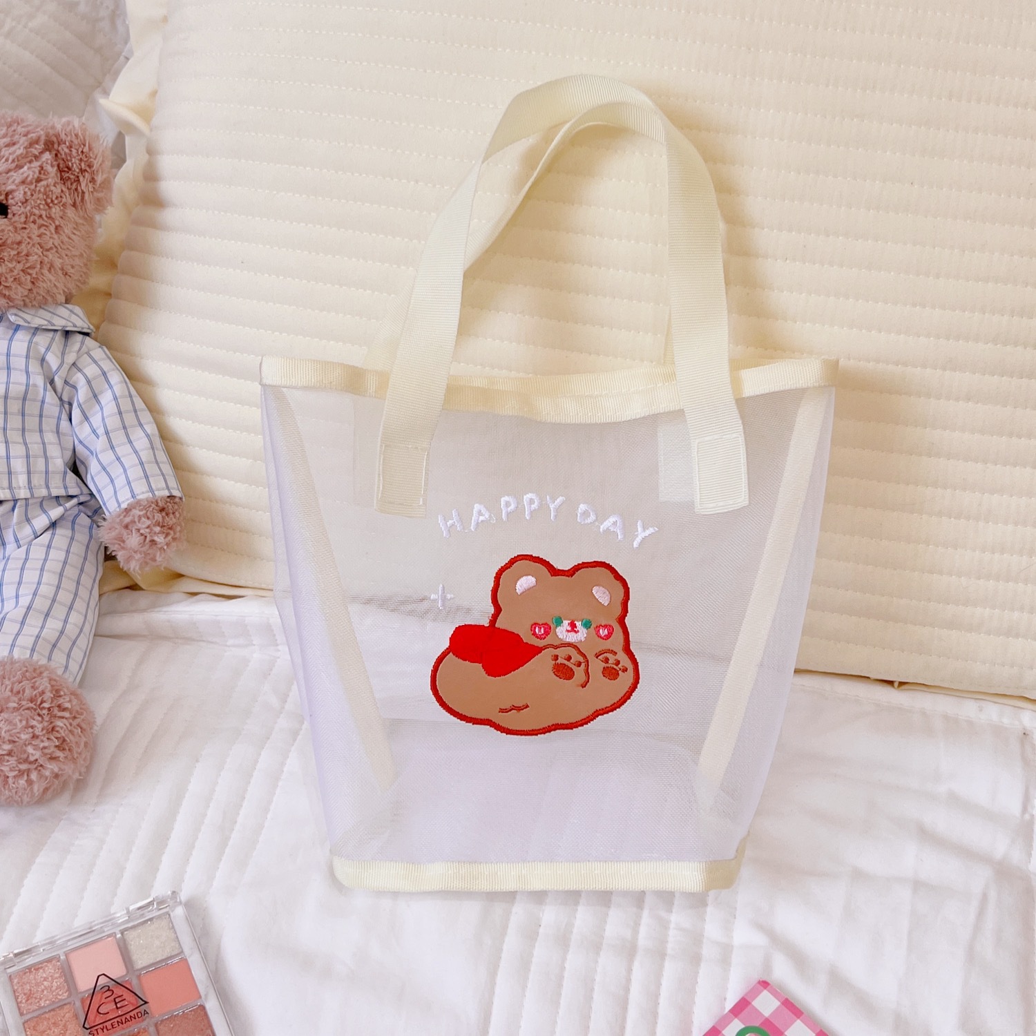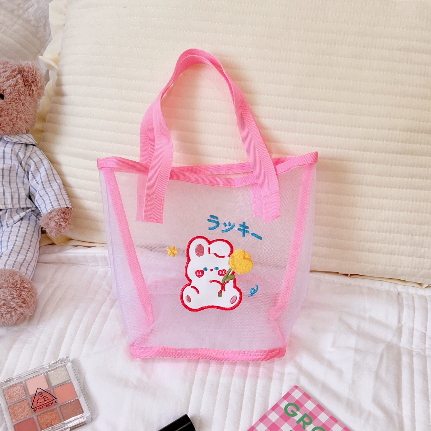 简约ins复古可爱透明网纱手提单肩包清新少女沙滩洗漱化妆收纳袋
