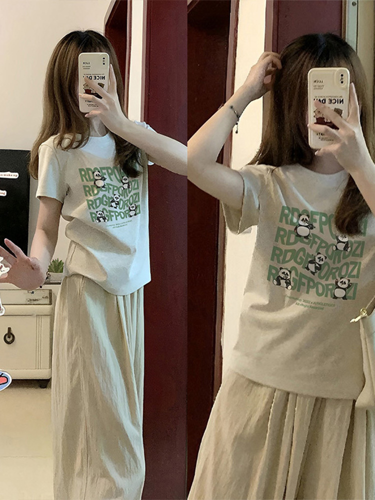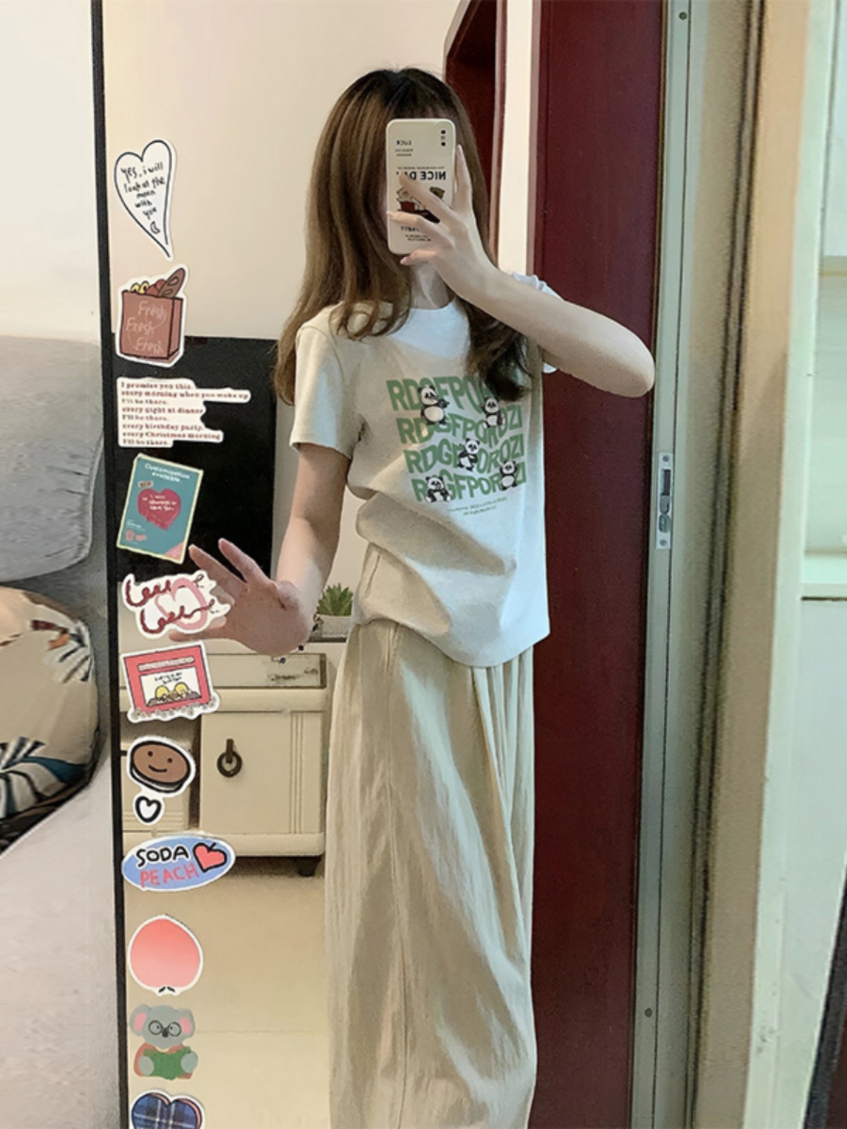 甜美短袖t恤女夏季2023新款设计感小众插肩袖多巴胺穿搭宽松上衣