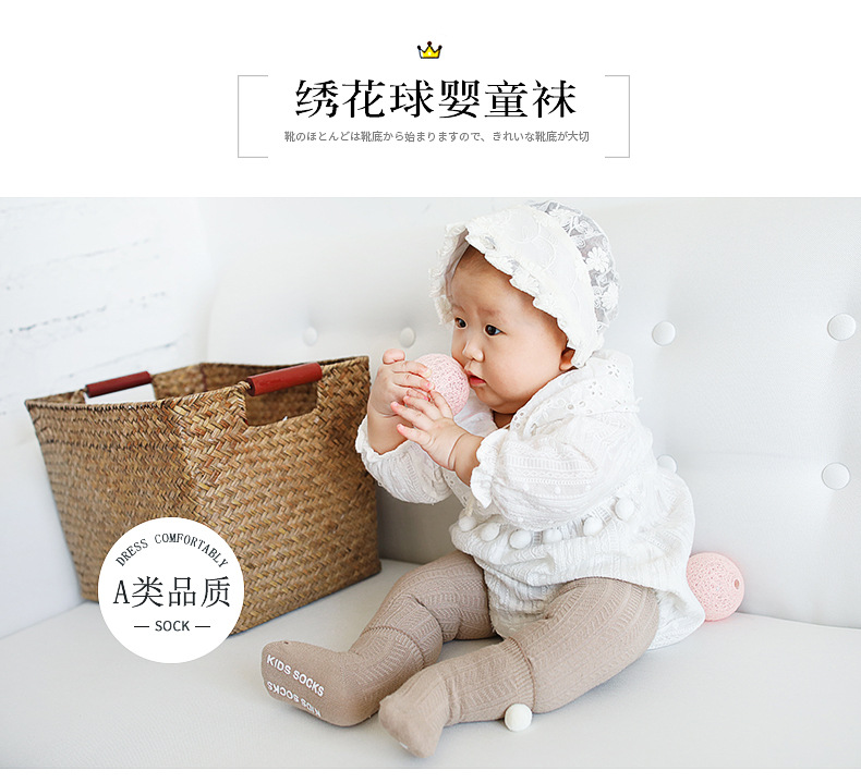 新款秋冬婴儿袜子点胶防滑无骨松口宝宝新生儿0-1岁球球儿童棉袜
