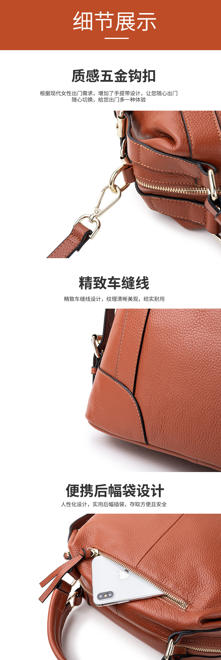 包内部结构 拉链暗袋,手机袋,证件袋,夹层拉链袋