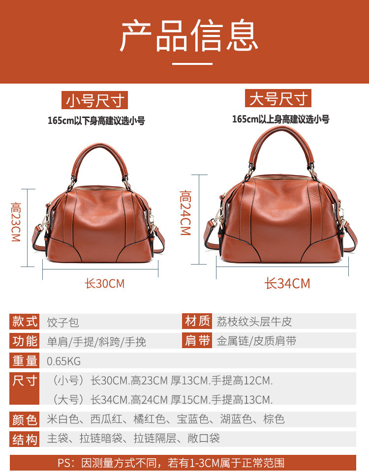 2022新款百搭手提包潮气质手拎包 女士头层牛皮真皮大容量单肩包超值价:¥135