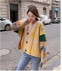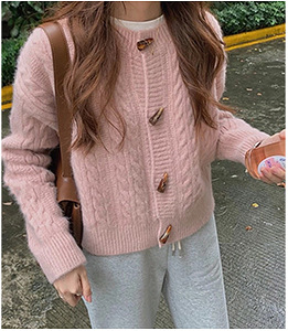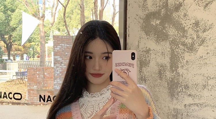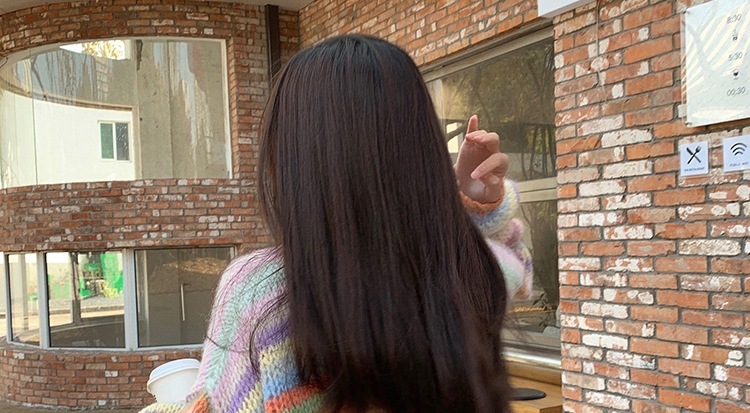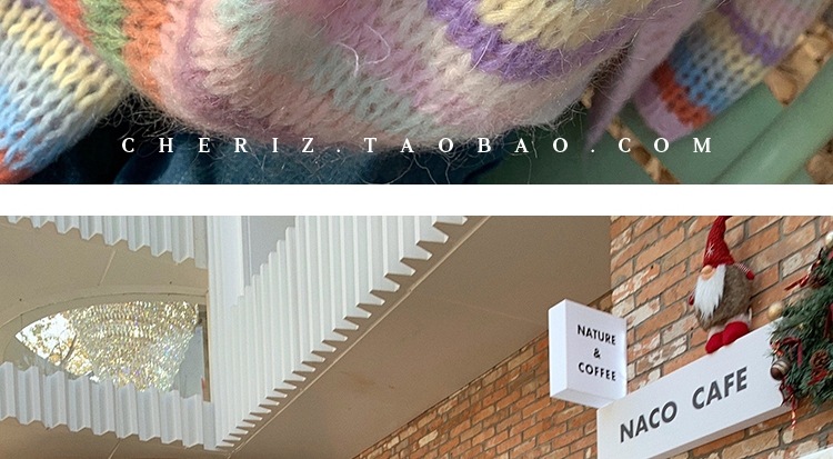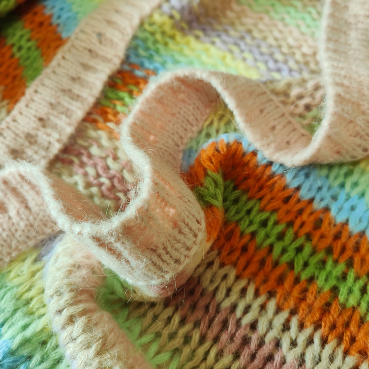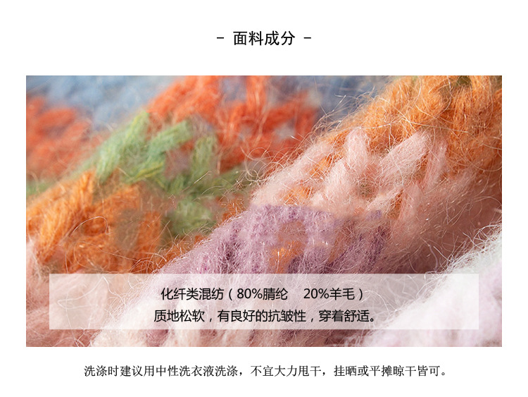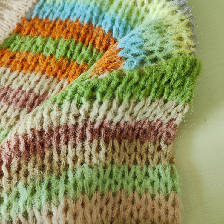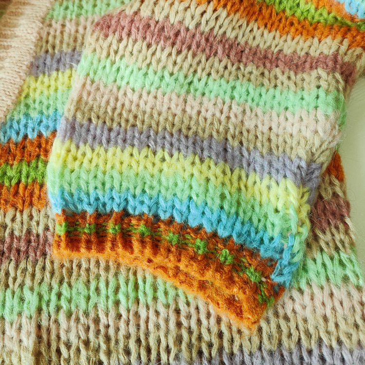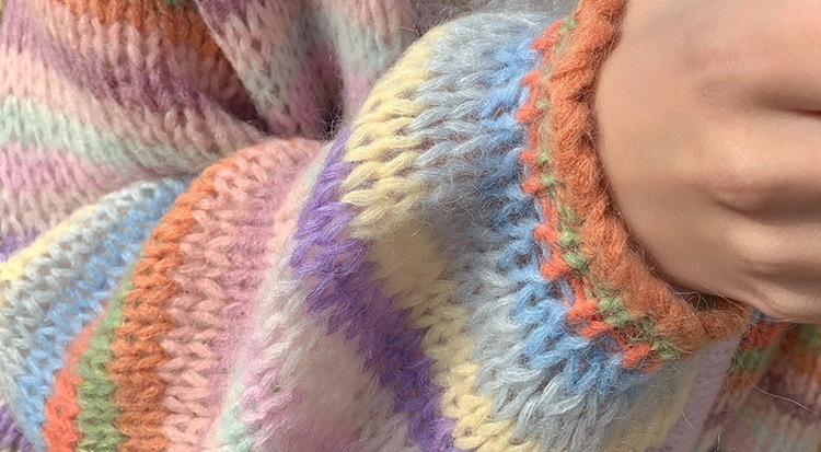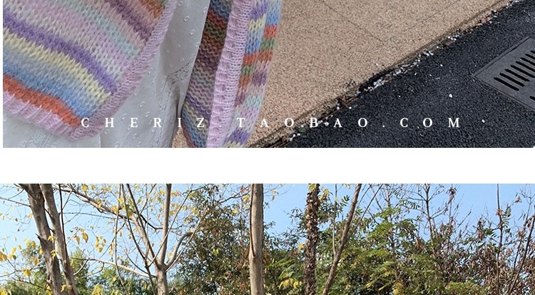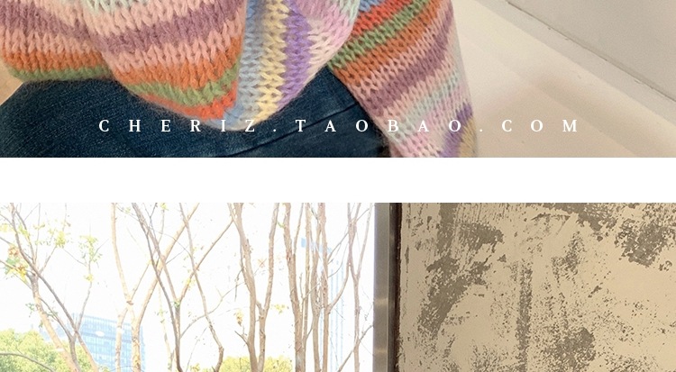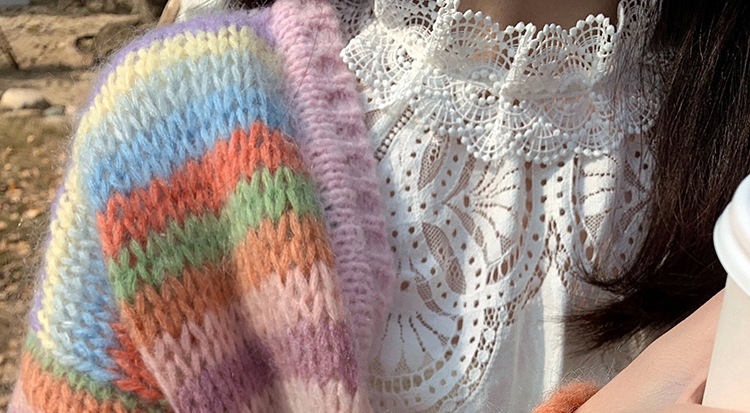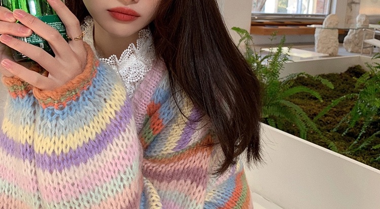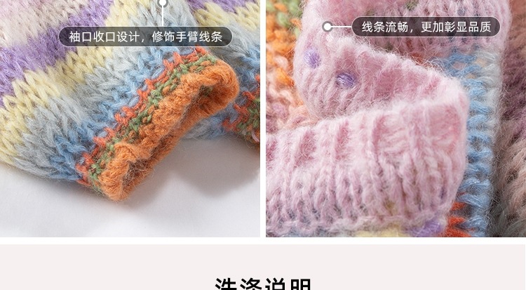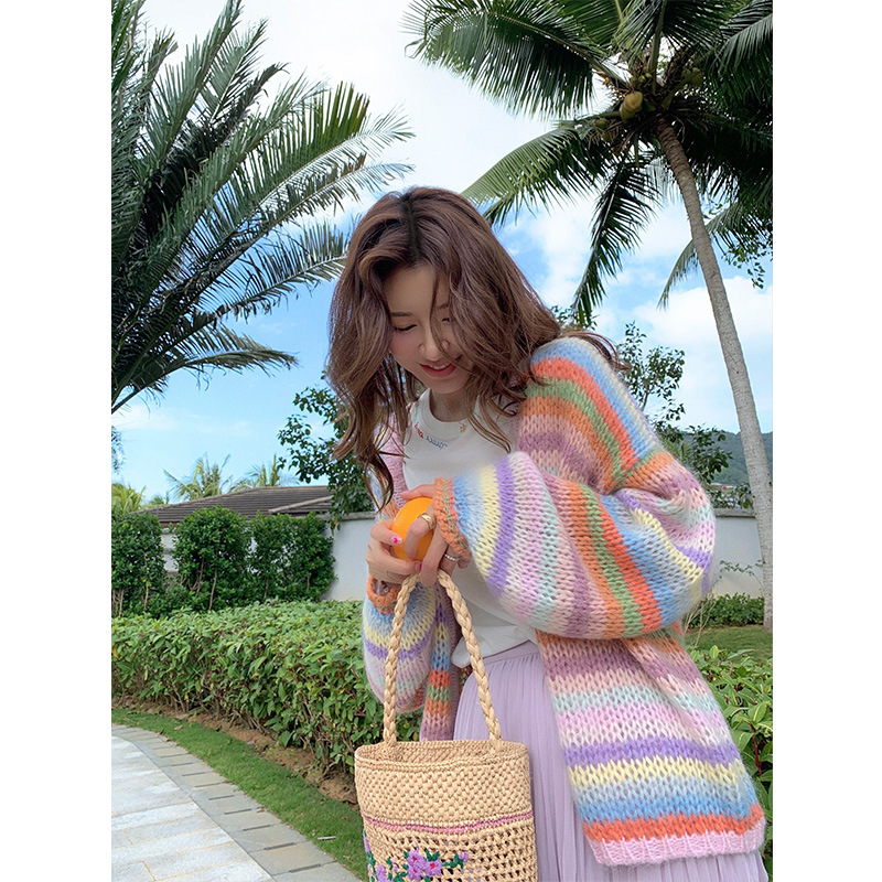 彩虹条纹马海毛针织开衫长款宽松慵懒风外搭早春毛衣外套女软糯风