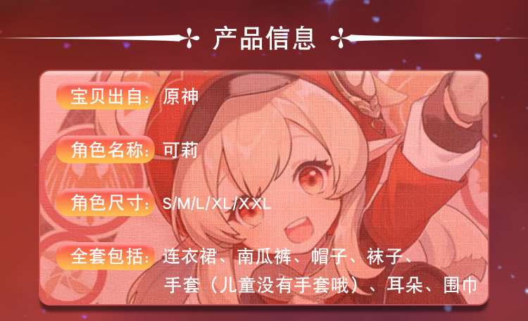 颜色 可莉衣服全套,可莉假发,可莉双肩背包,可莉儿童衣服全套,可莉鞋子(定制)