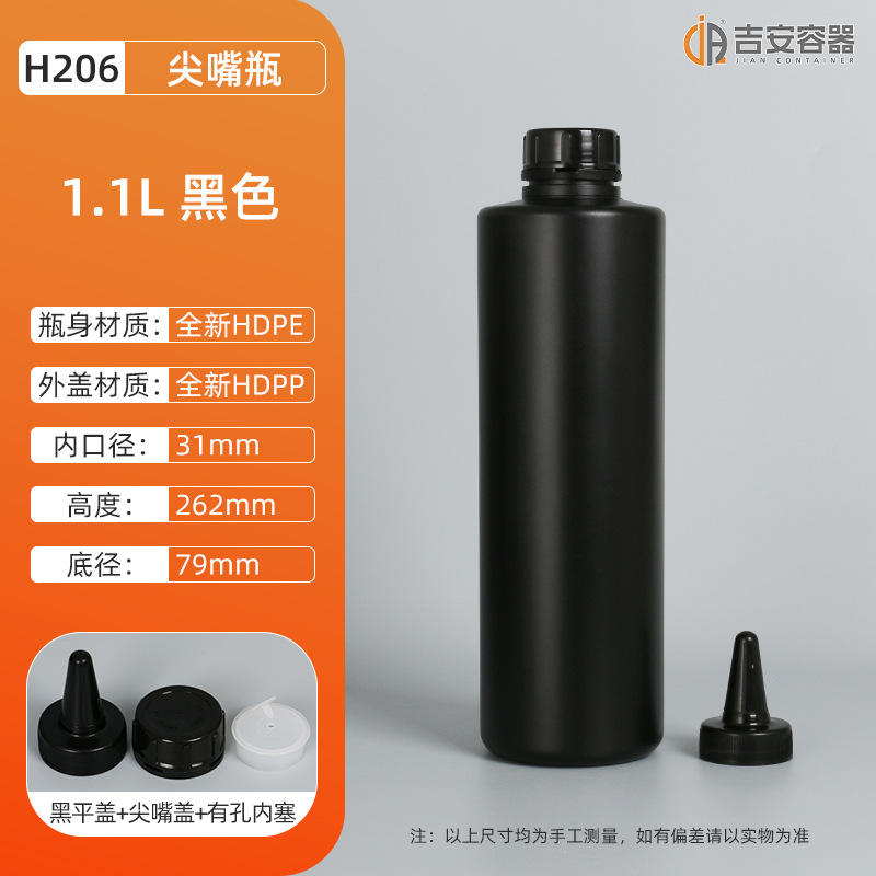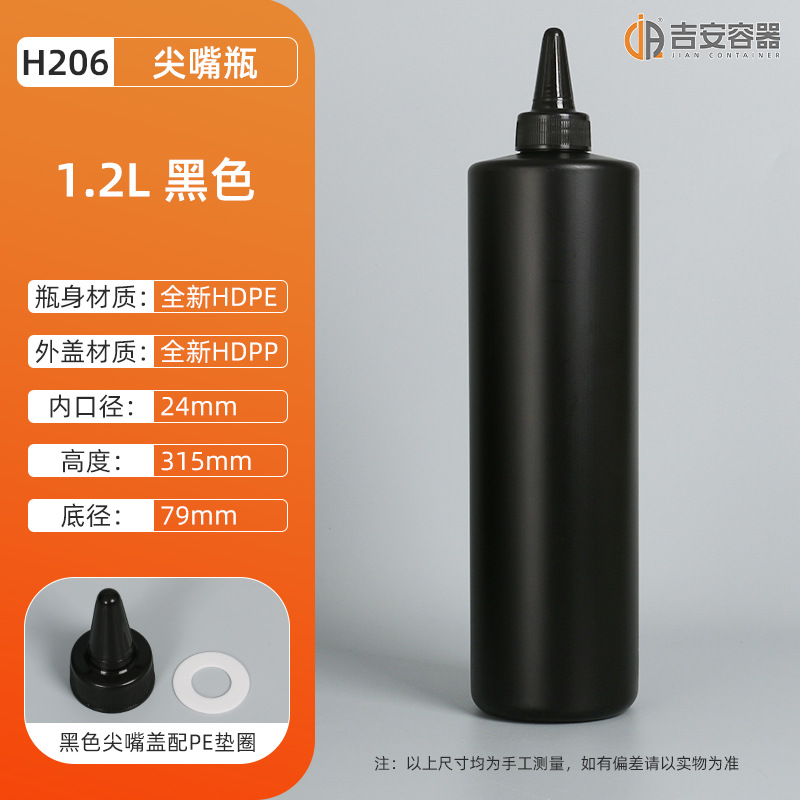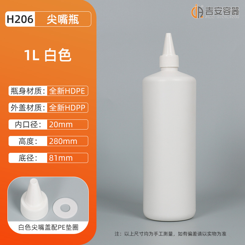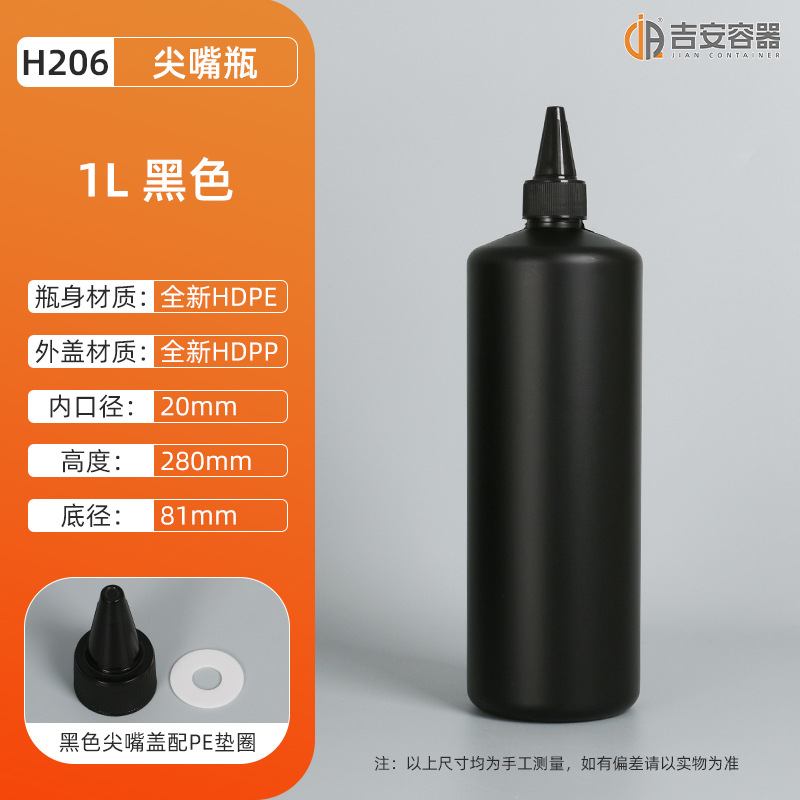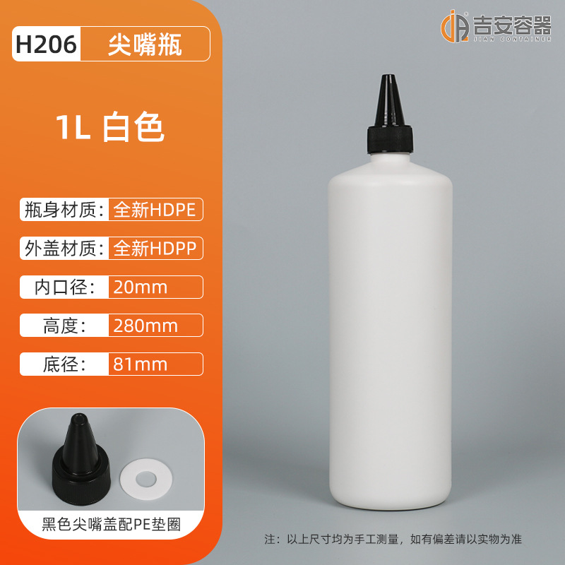 尖嘴瓶1升/1.1/1.2L黑色塑料瓶500ML白色胶水瓶 颜料瓶 美甲胶瓶