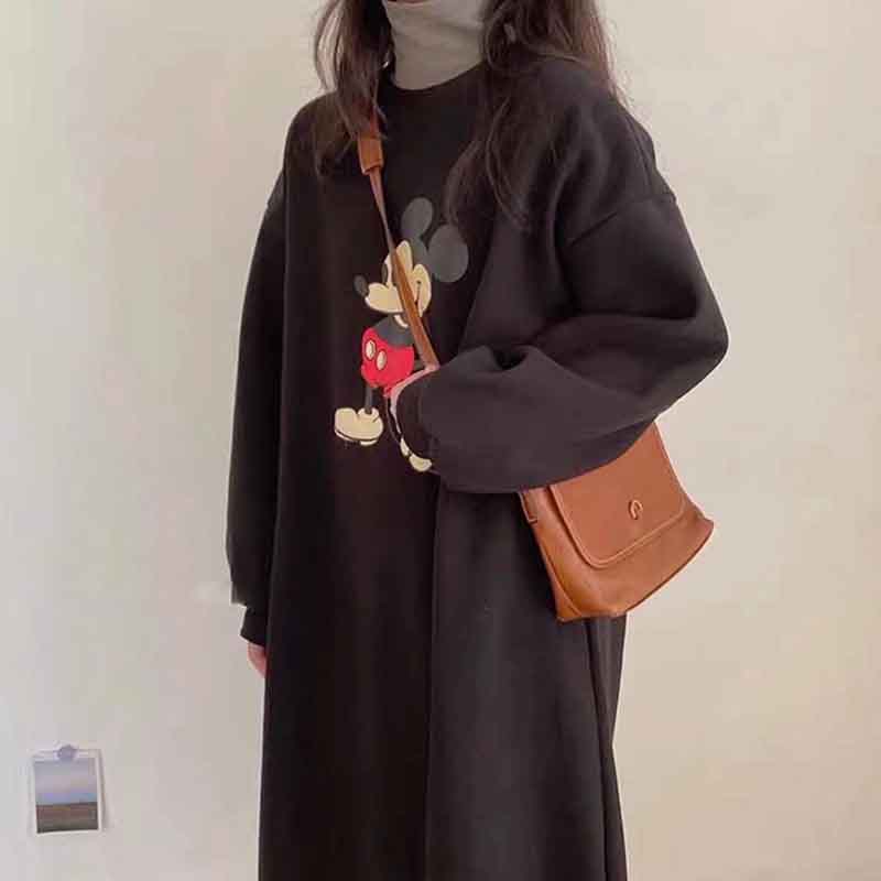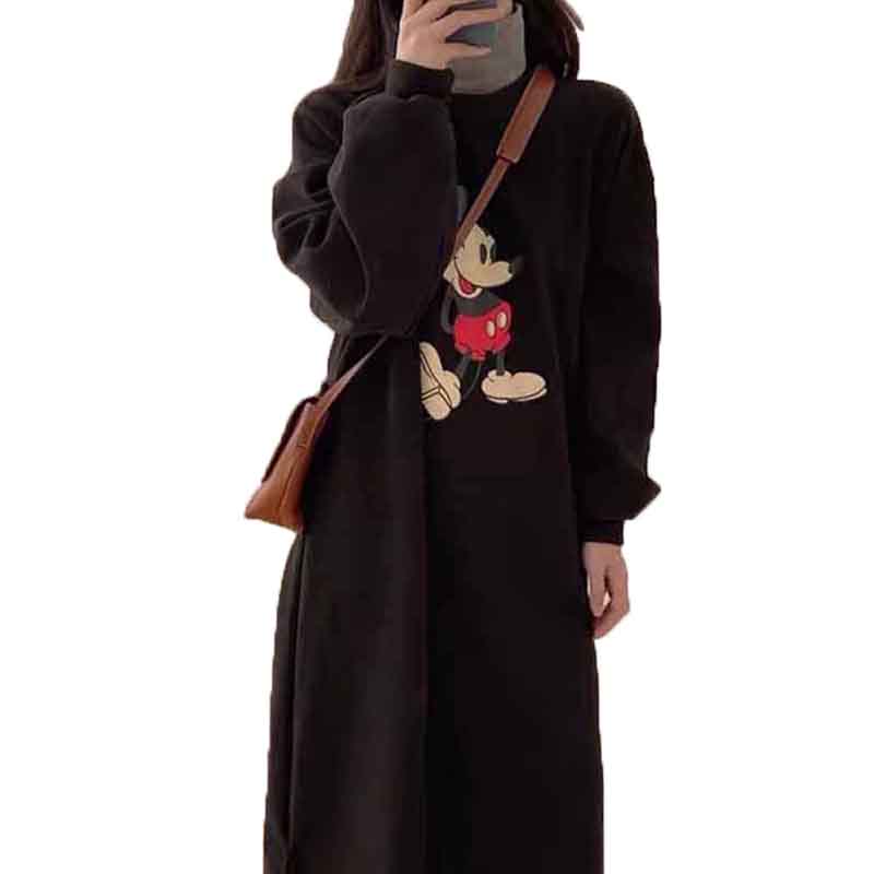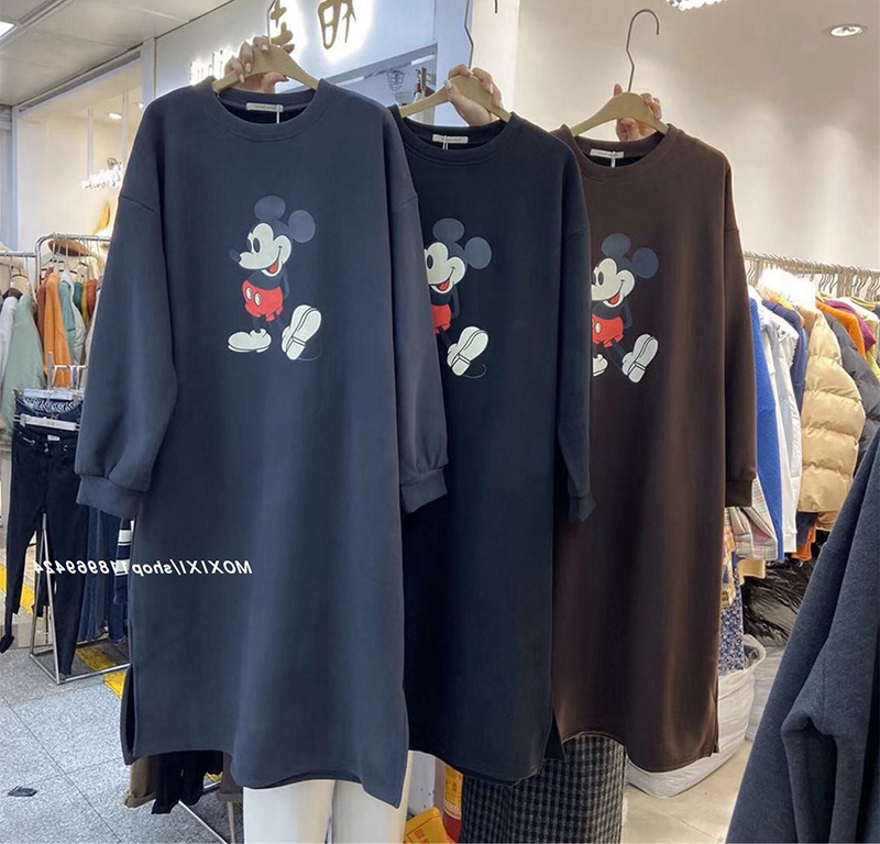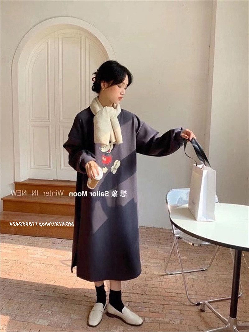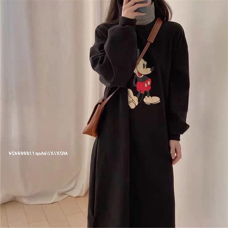 2021年早春新款設計感小眾可鹽可甜炸街中長版卡通衛衣洋裝子女
