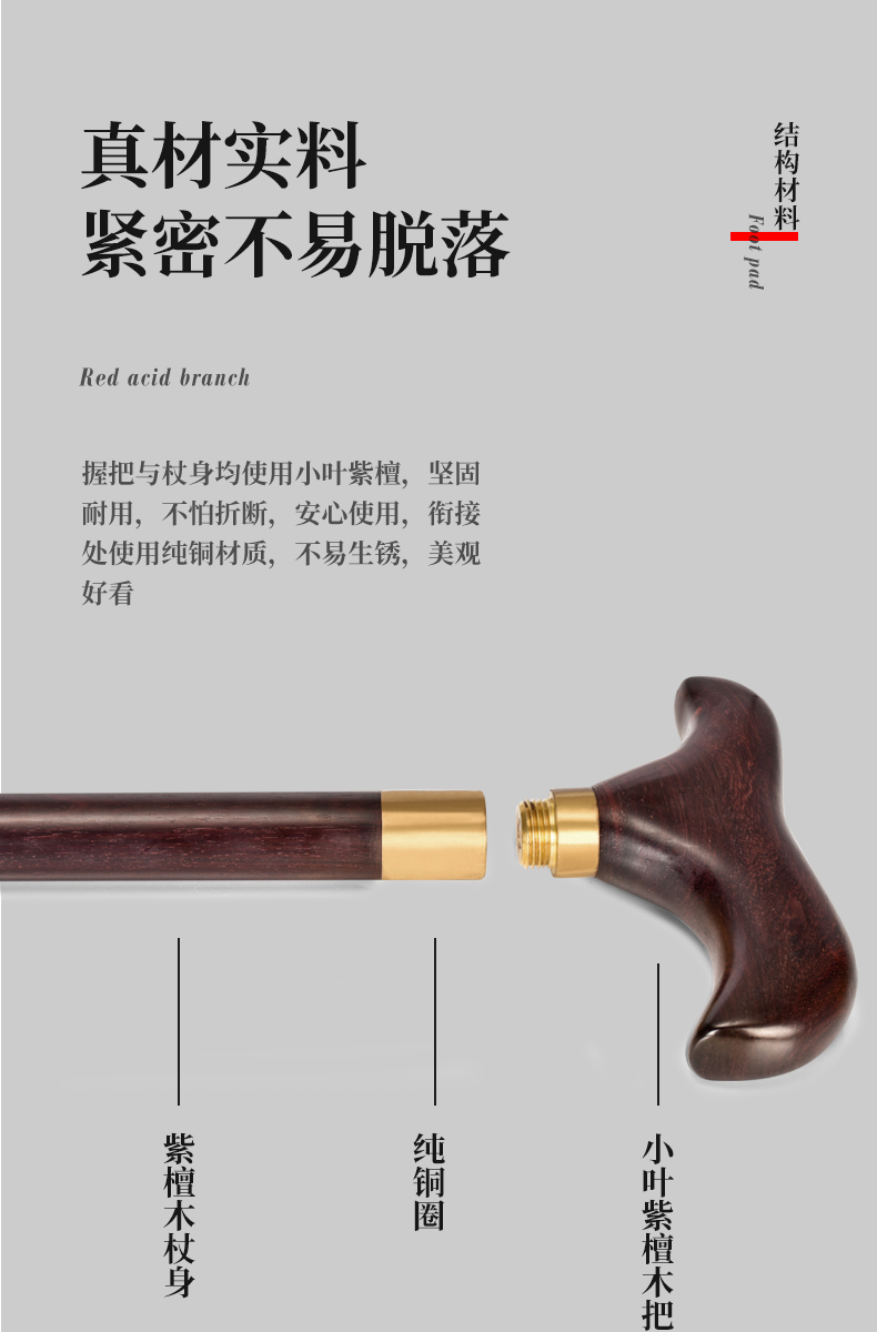 老料印度小葉紫檀木柺杖紅木手杖實木老年人柺杖收藏送禮工藝禮品擺飾