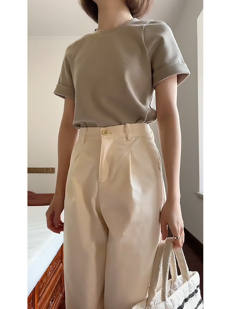 卡其色休閒西裝褲女夏季2023年新款高級感小個子窄版直筒寬褲子