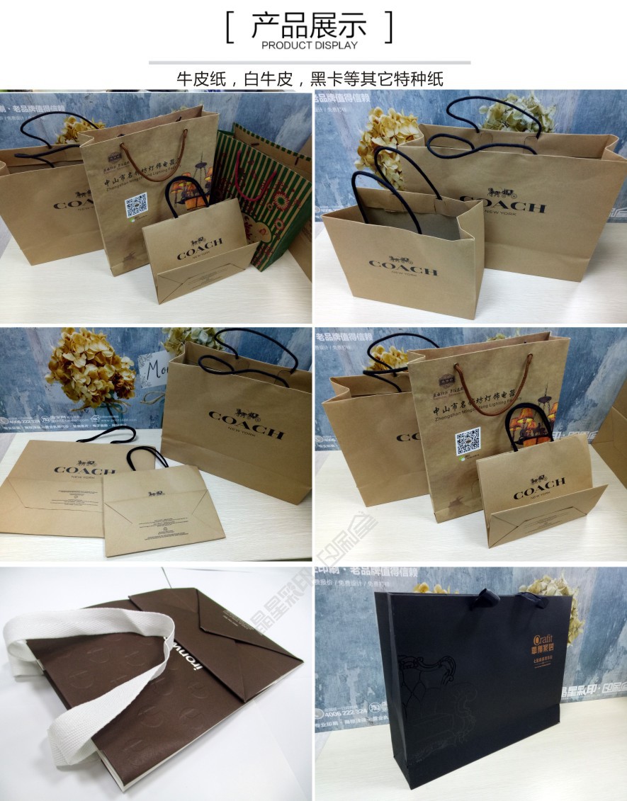 平口白牛皮黄牛皮特种纸手提袋企业广告定 制手提袋LOGO设计印刷