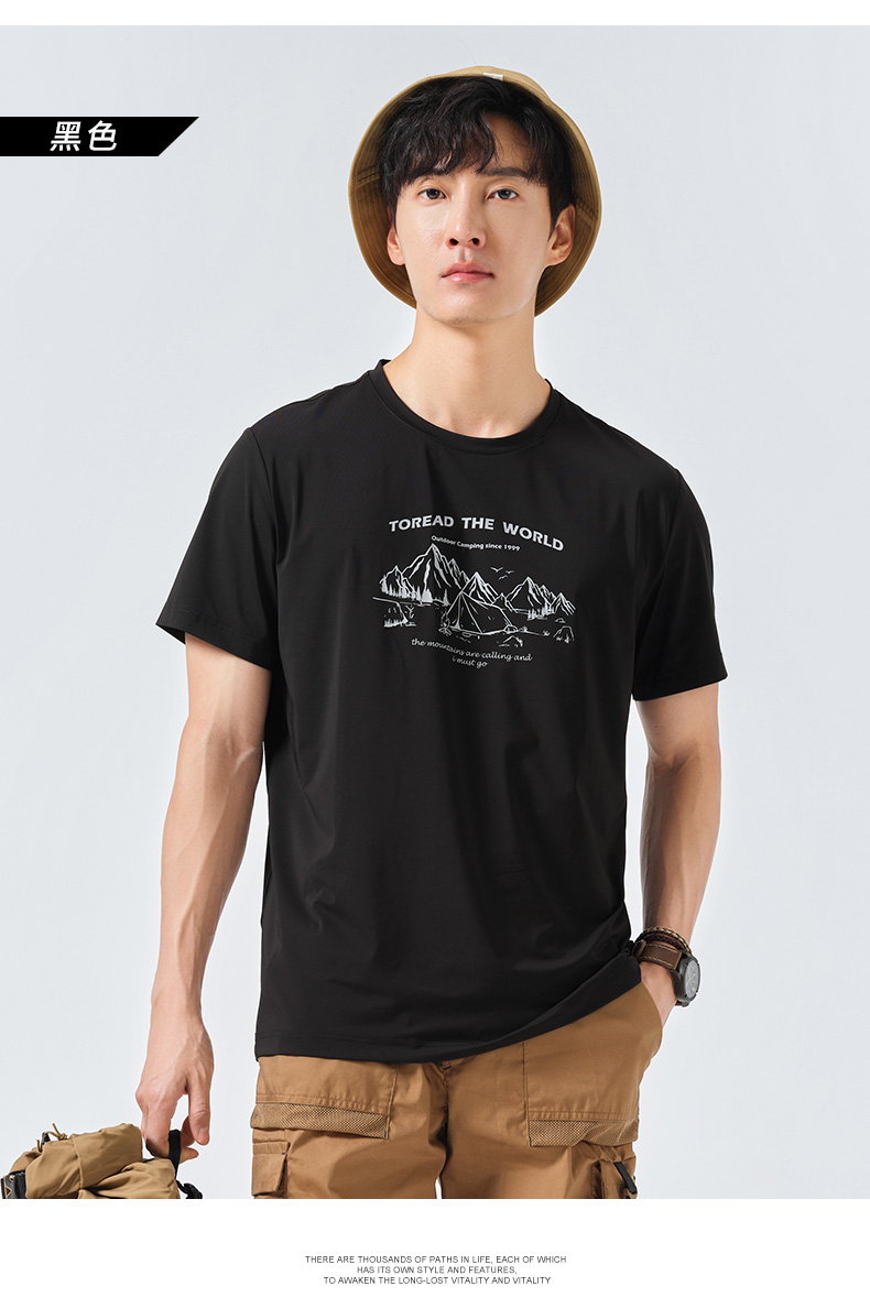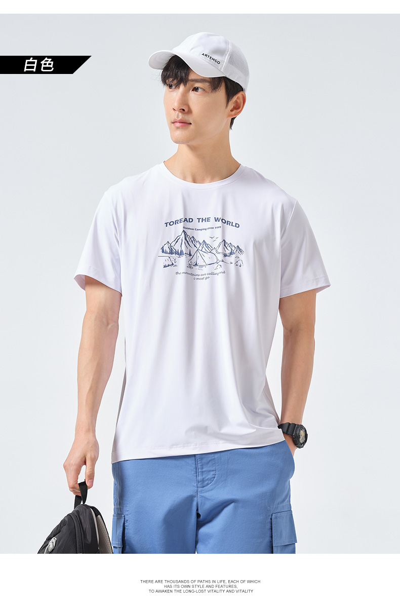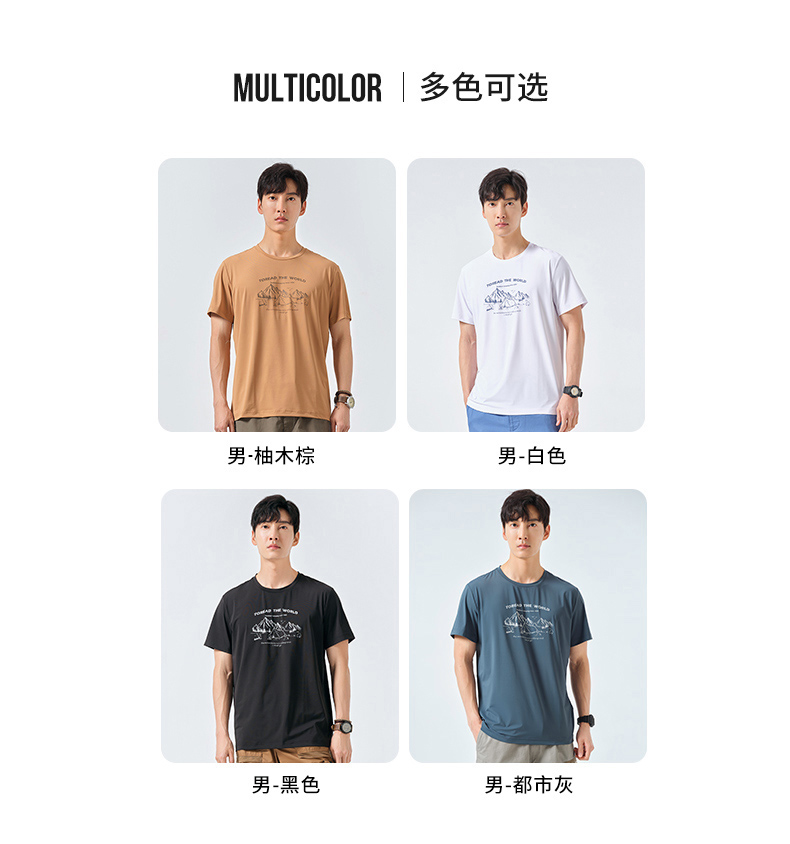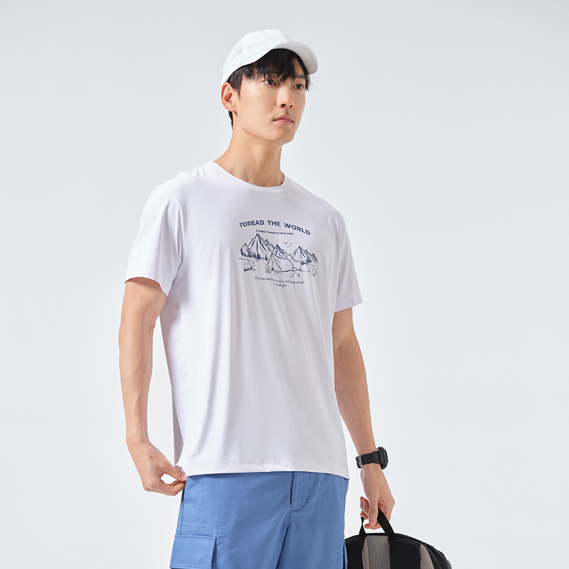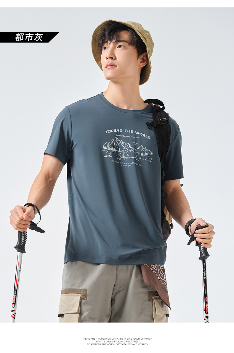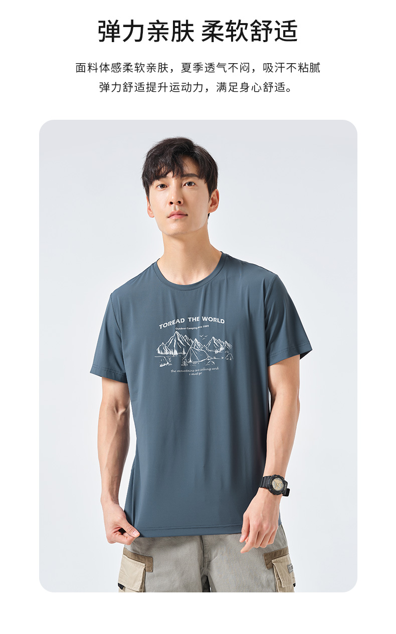探路者短袖春夏男式戶外運動upf40+彈力透氣休閒款T恤TAJK81256