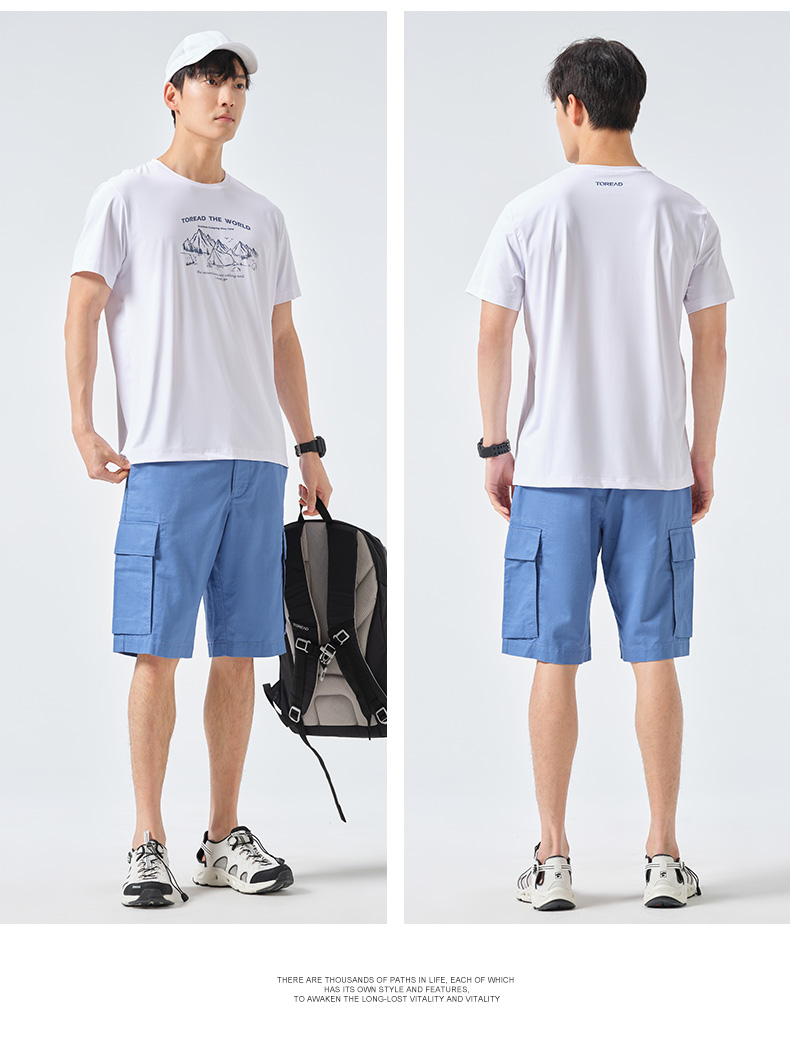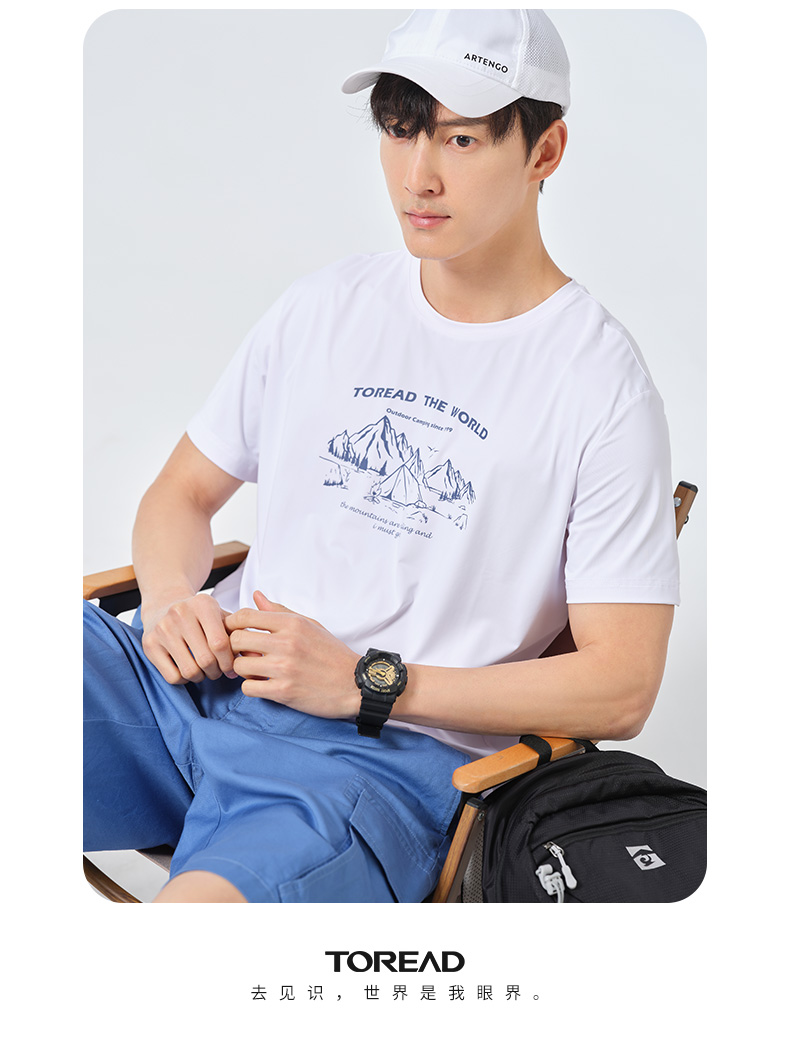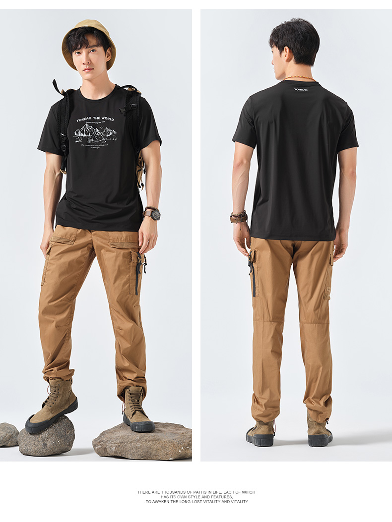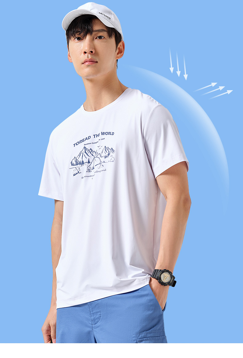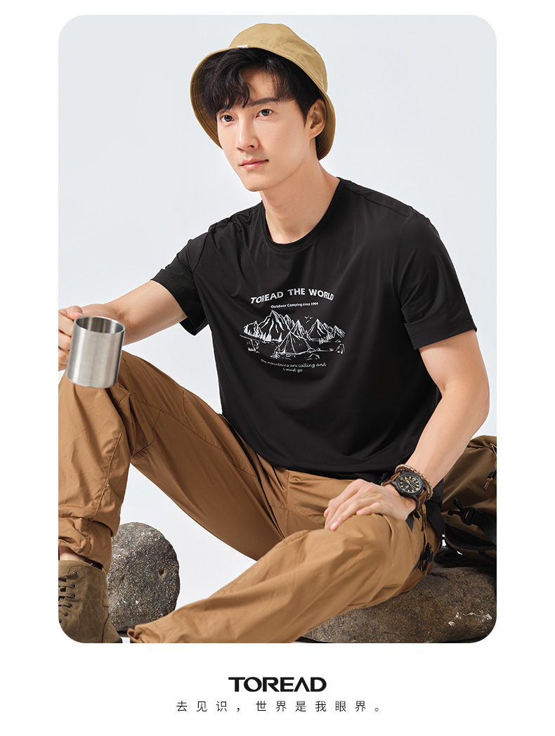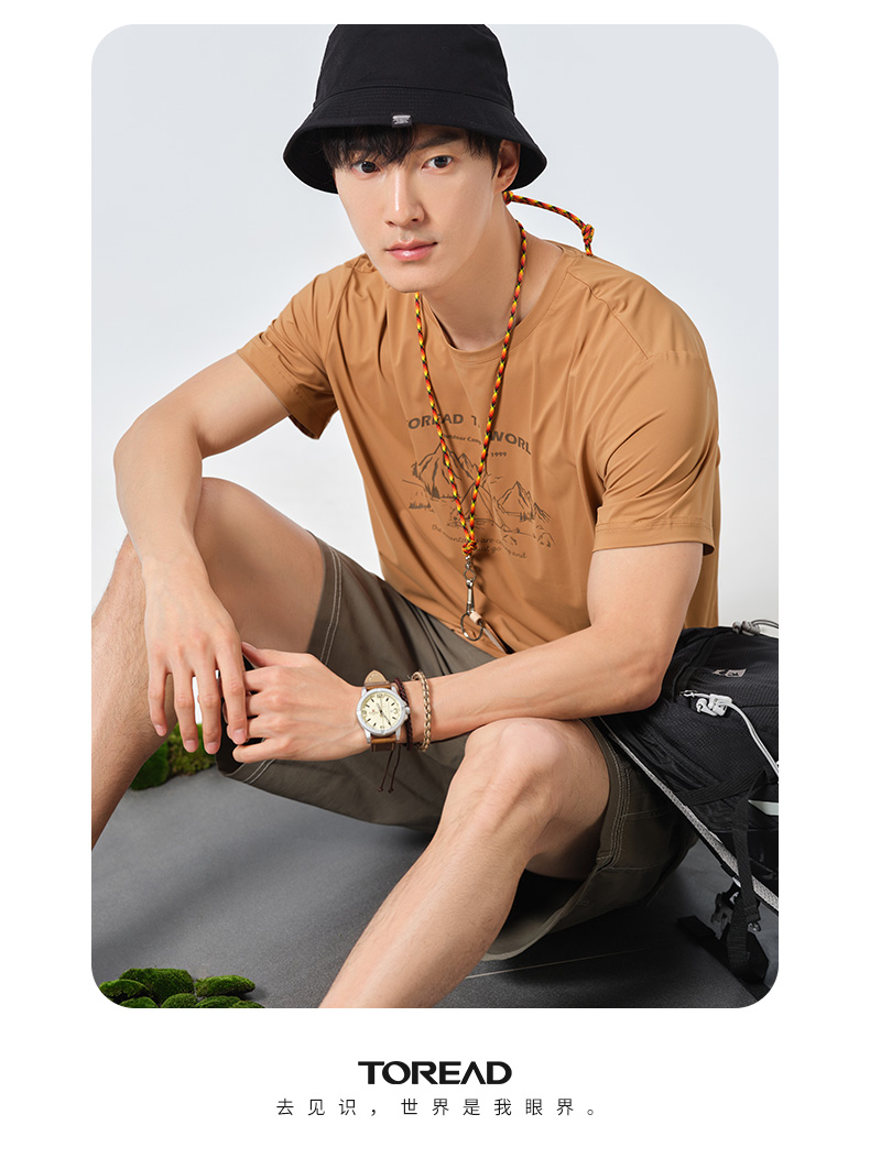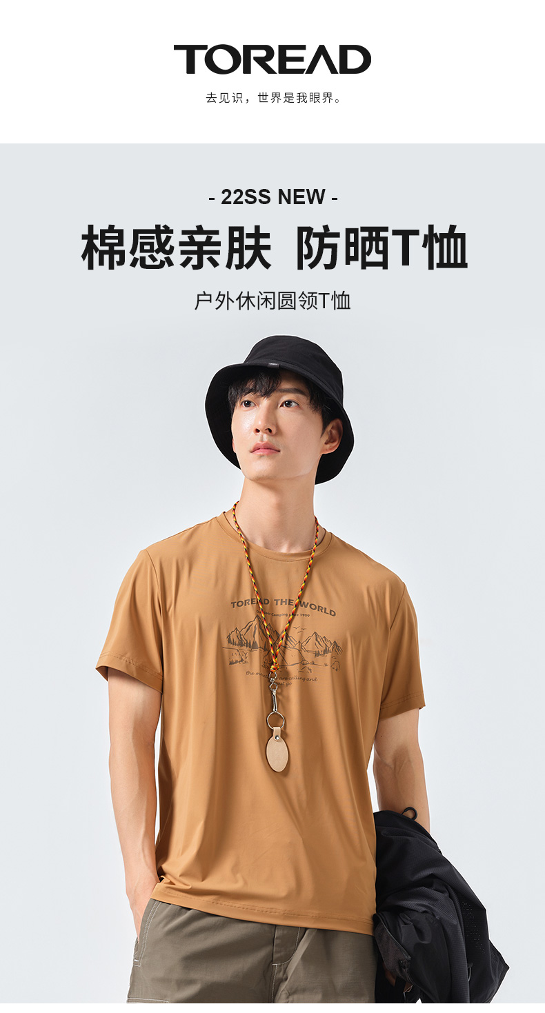 探路者短袖春夏男式戶外運動upf40+彈力透氣休閒款T恤TAJK81256