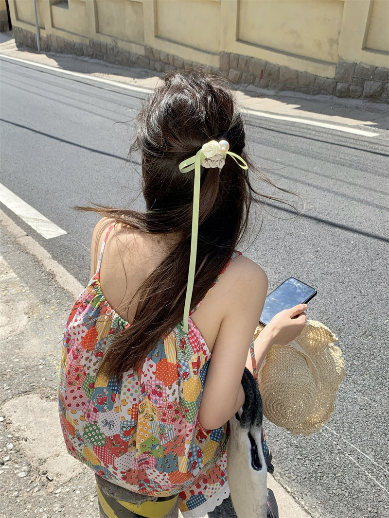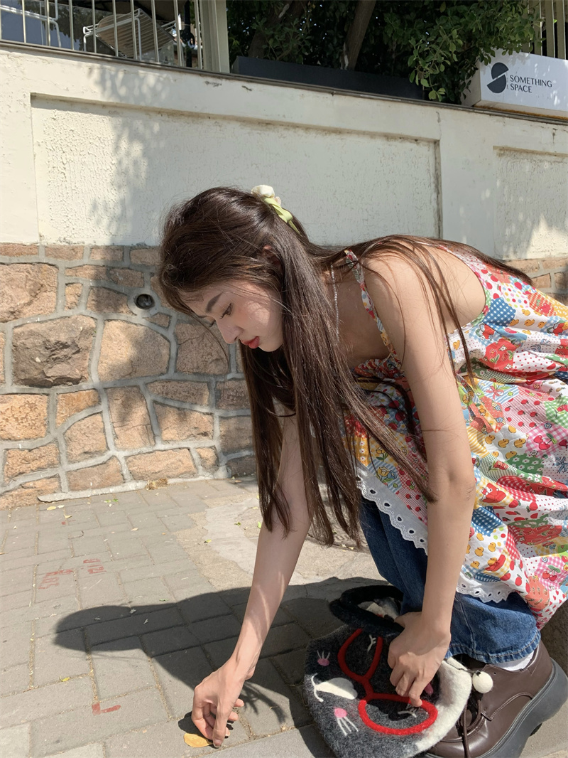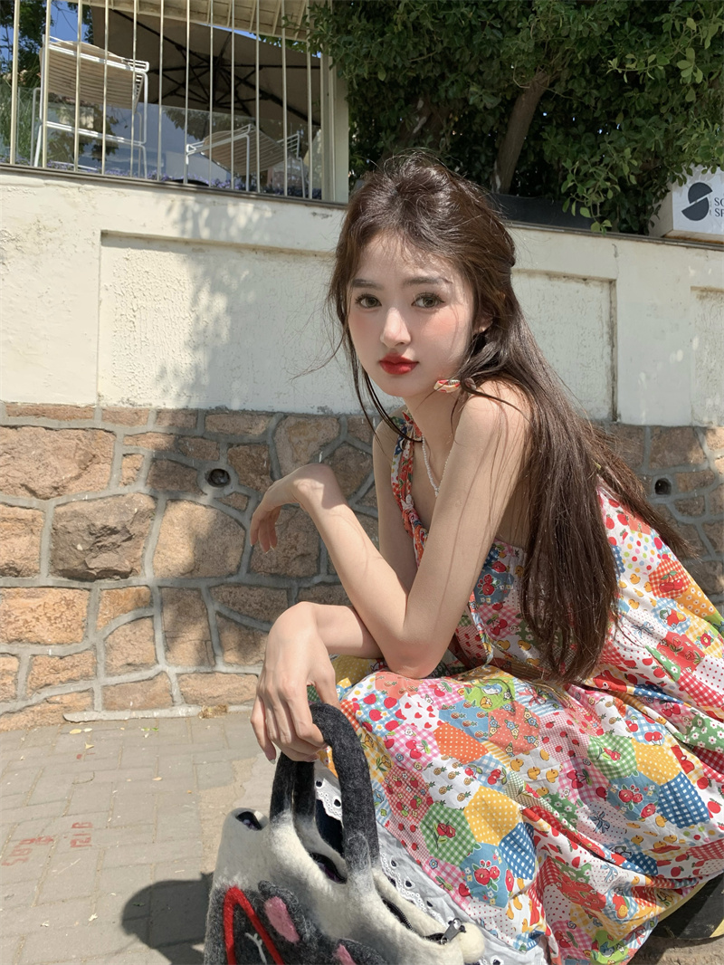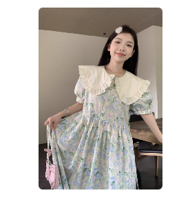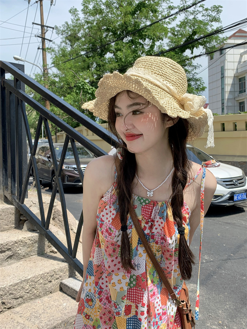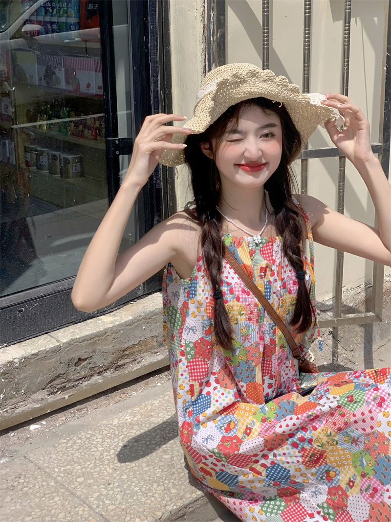 PPHOME嬌寵千金~清涼一甜美減齡可愛碎花拼接花邊寬鬆吊帶洋裝