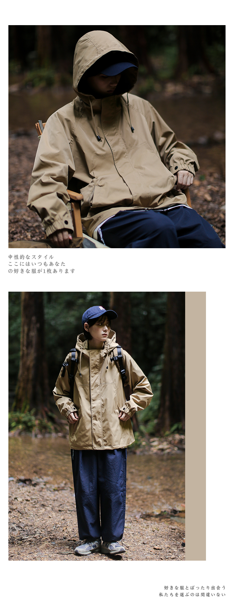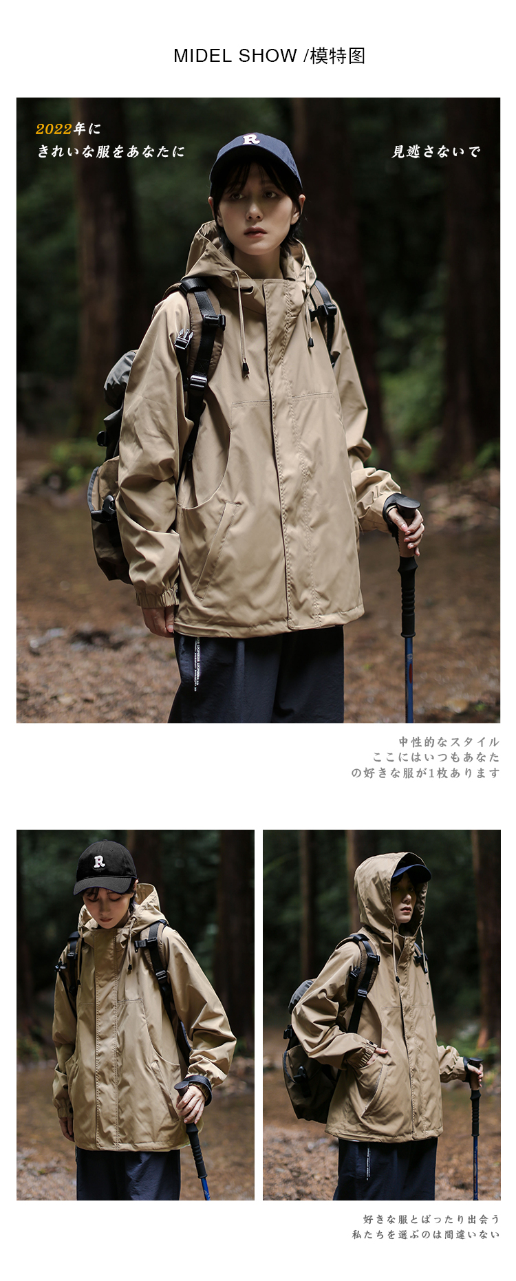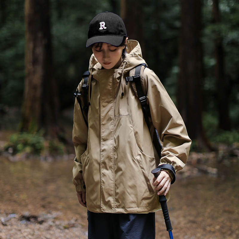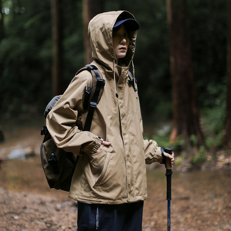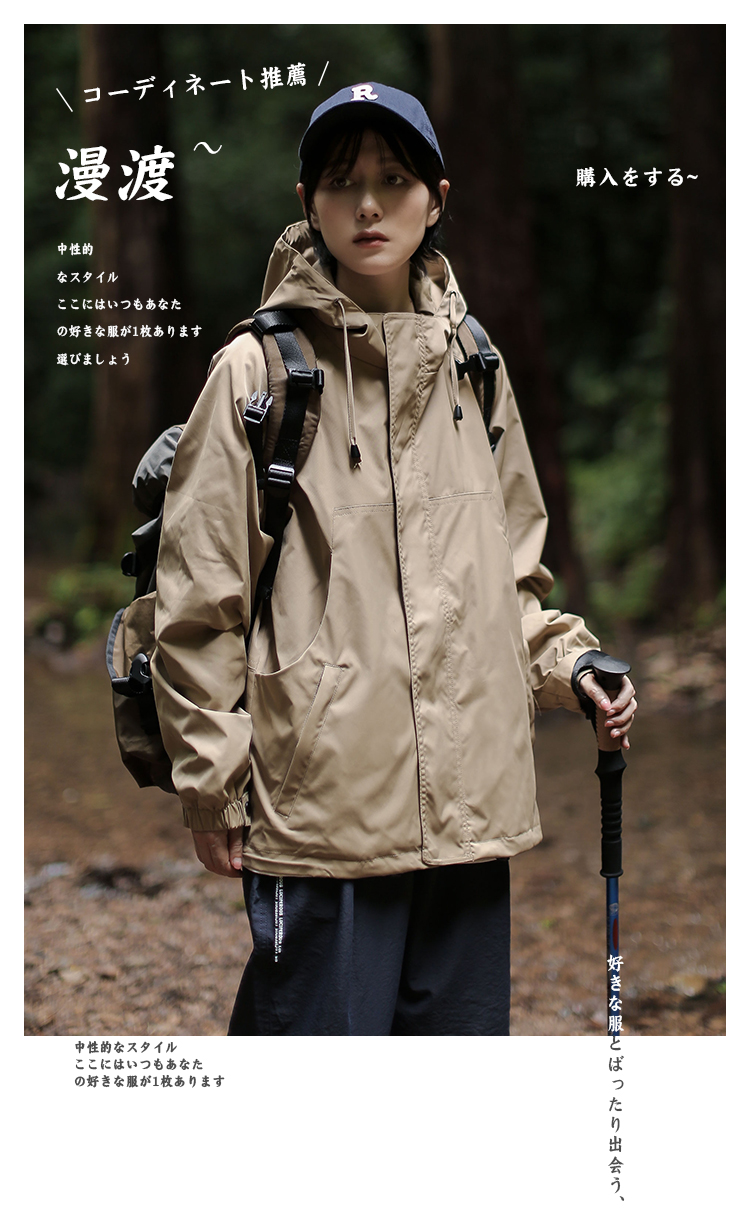 漫渡日系工裝連帽外套戶外登山服衝鋒衣男女防風防水棉服機能夾克