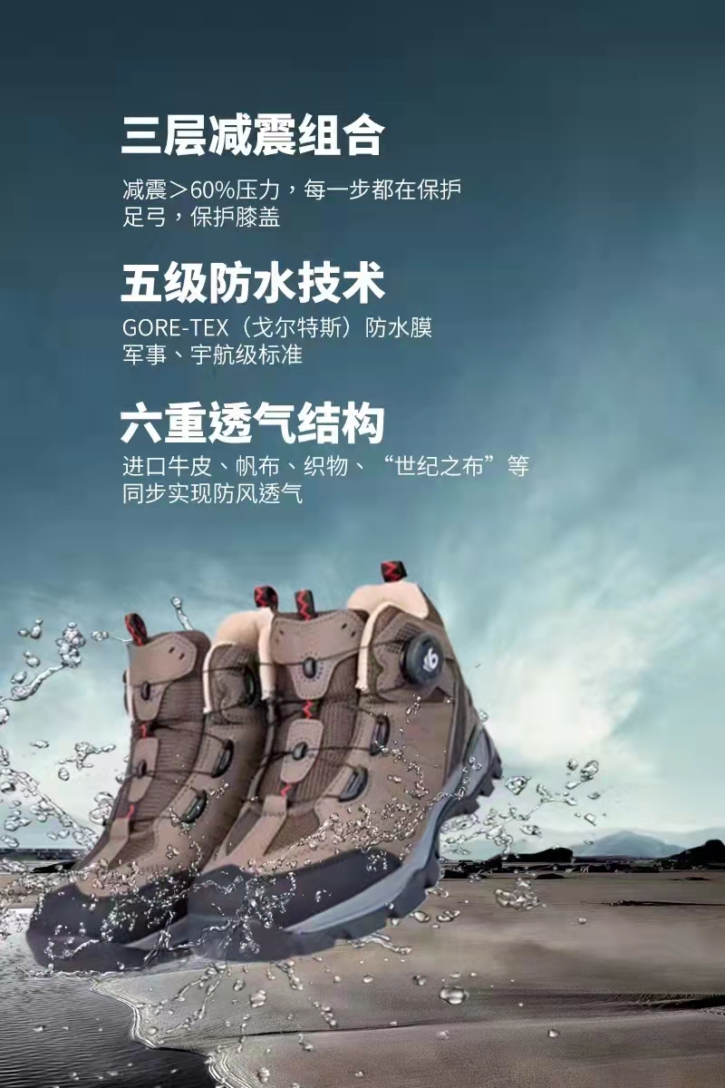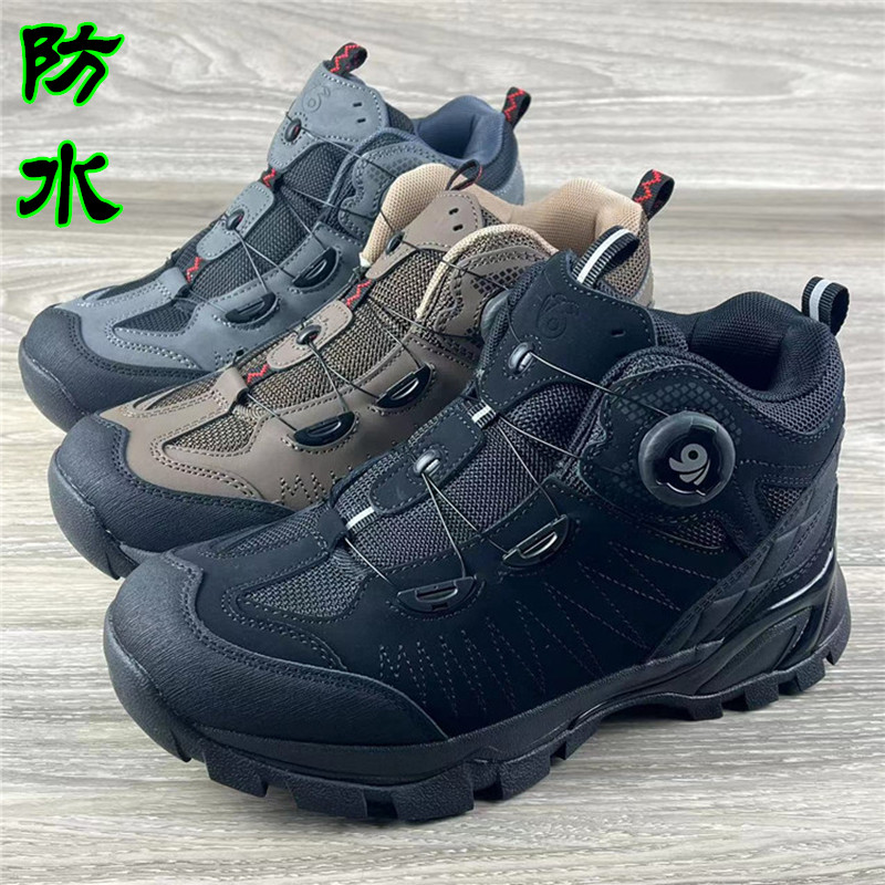 清倉原單旋轉鈕釦高筒男士防水防滑耐磨減震戶外徒步鞋登山越野鞋