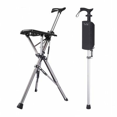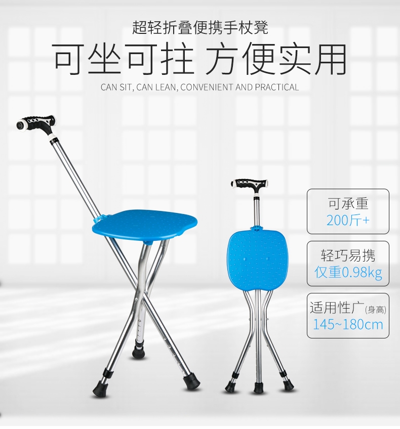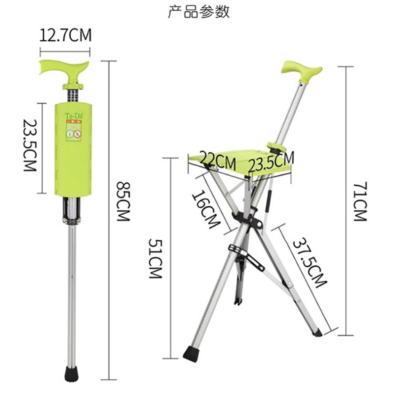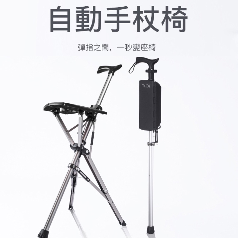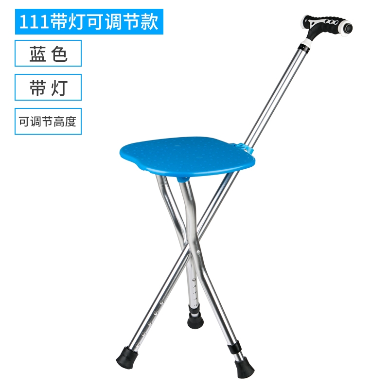 家用老年人輕便防滑鋁合金柺杖凳摺疊自動手杖椅子凳帶燈可調高度
