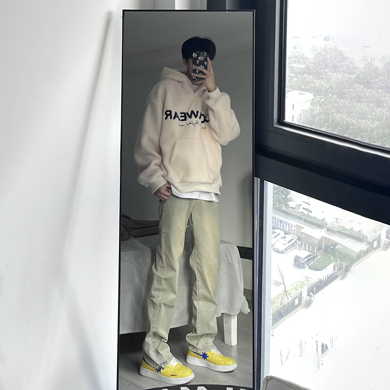 純黑色痞帥牛仔褲修身直筒美式vibe褲子高街彈力顯瘦顯高微喇長褲