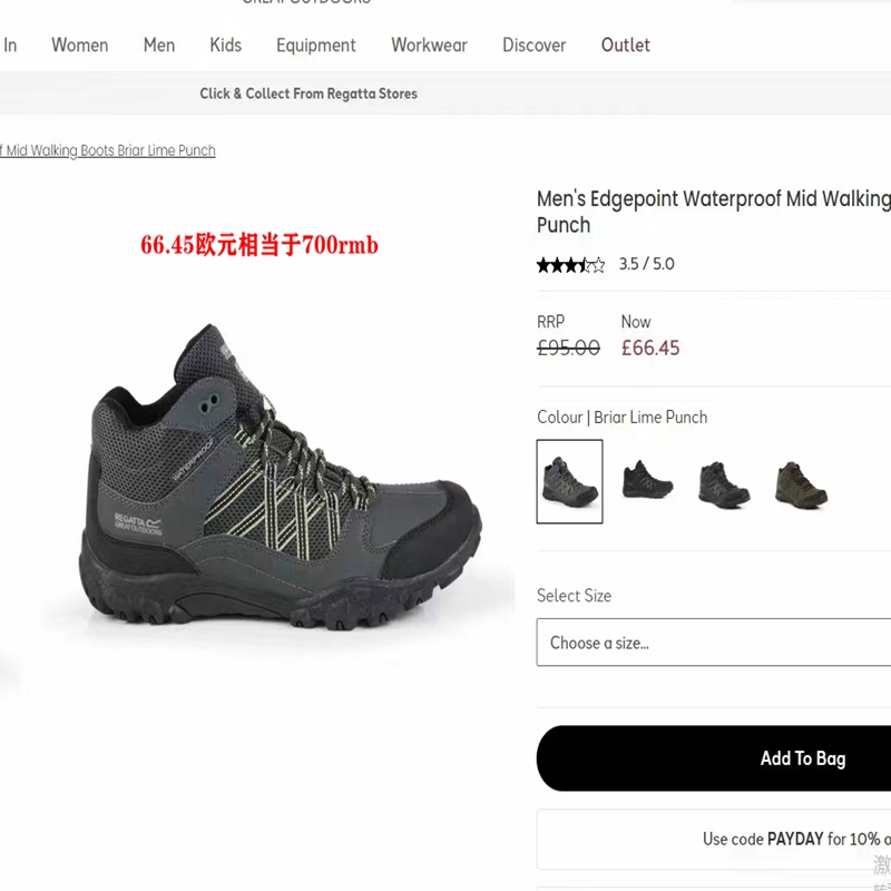 官網70歐 外貿出口英國RE*GATA撿漏戶外防滑耐磨防水徒步登山鞋男