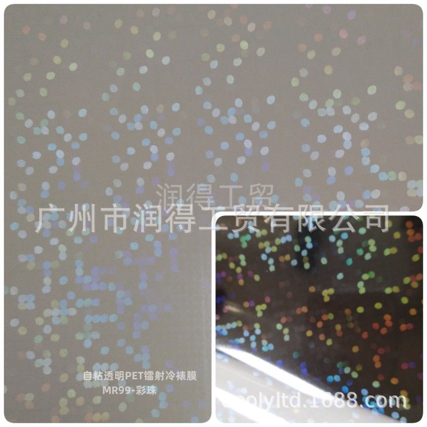 工厂现货 镭射透明大圆点彩珠PET自粘背胶冷裱膜 写真相片保护膜