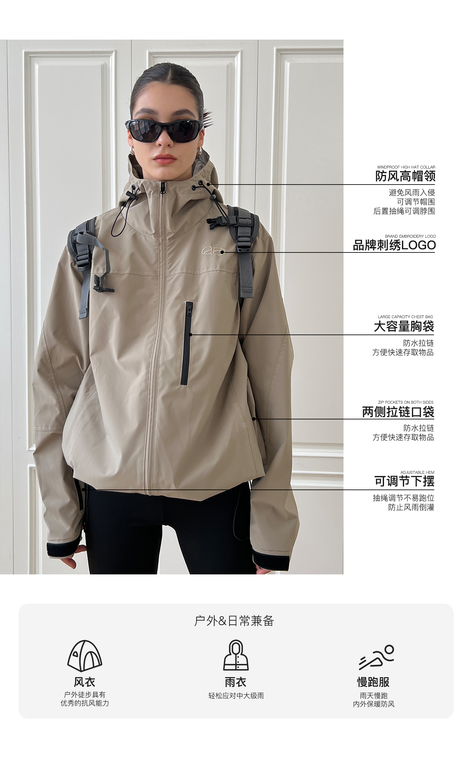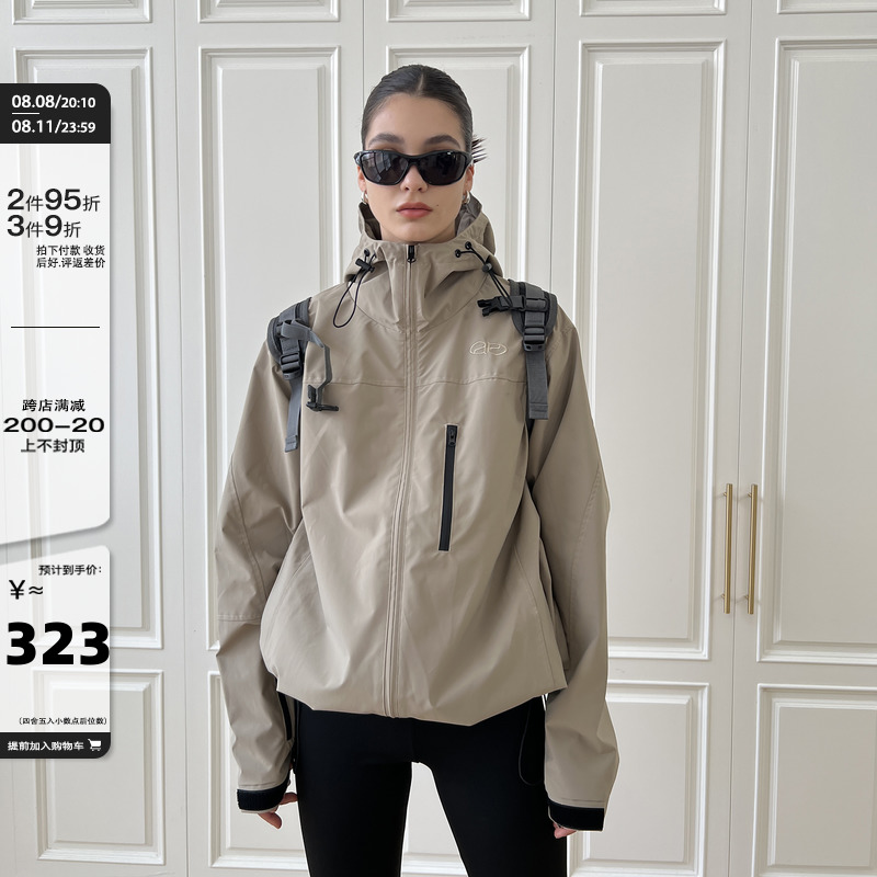 AE6604美式vintage衝鋒衣外套女春裝加絨潮牌戶外防水登山服夾克