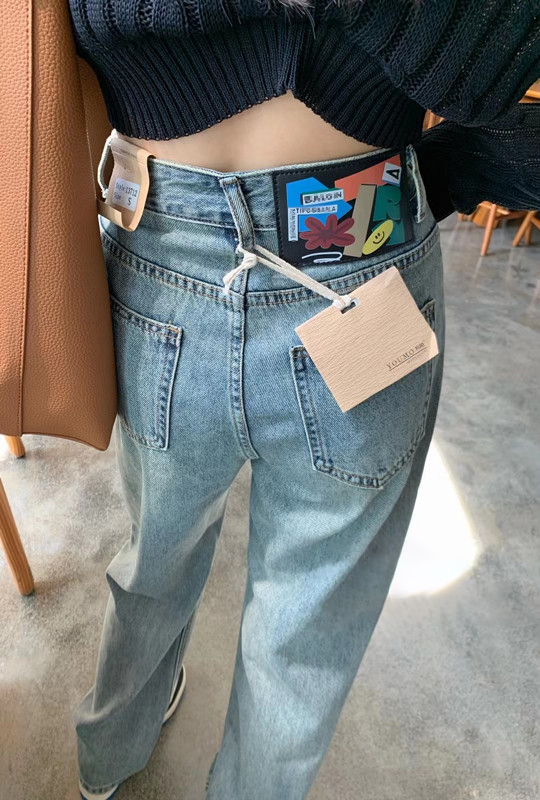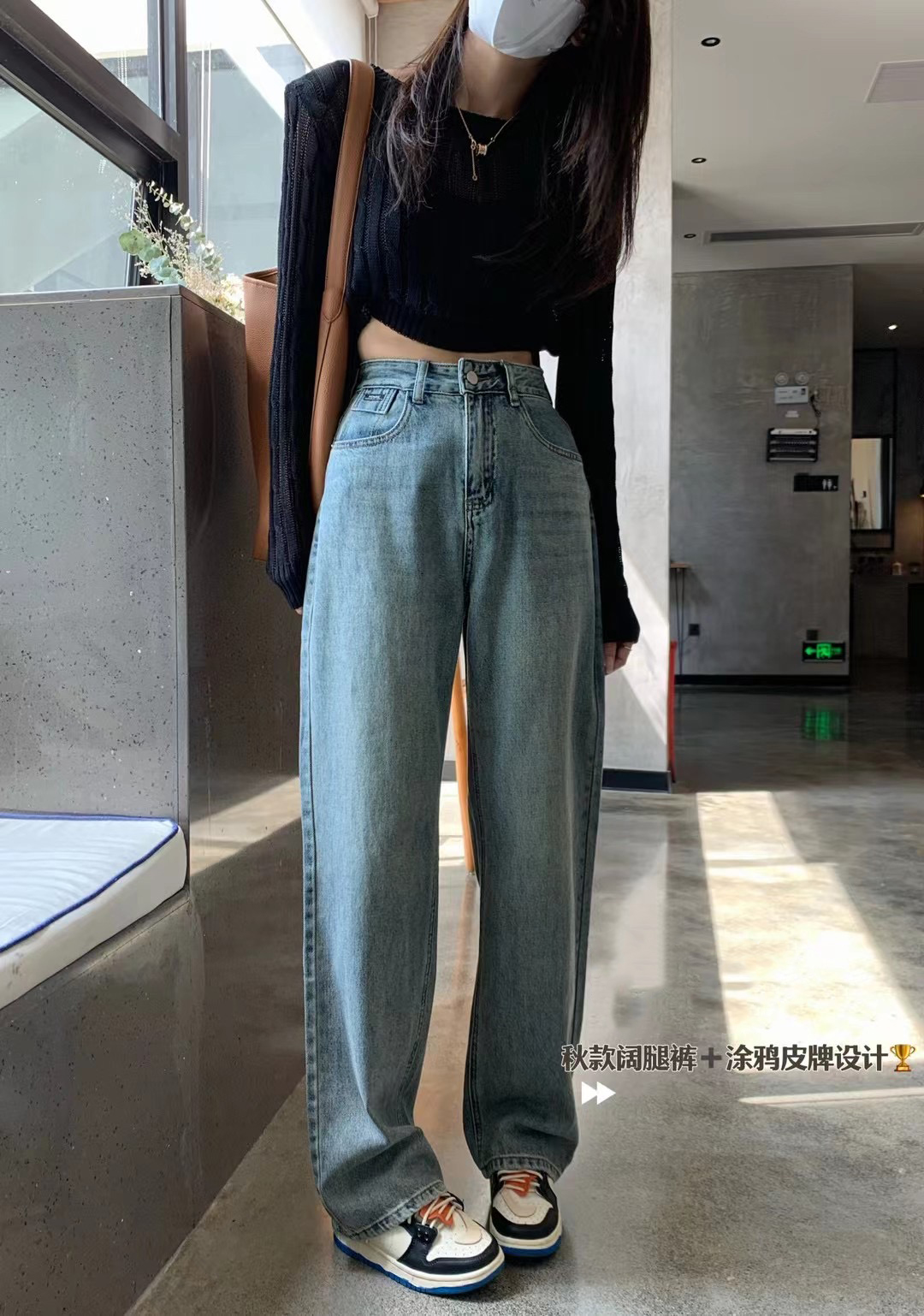 設計感直筒牛仔褲女2023年新款春秋高腰寬鬆顯瘦窄版闊腿拖地褲子