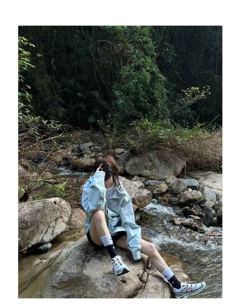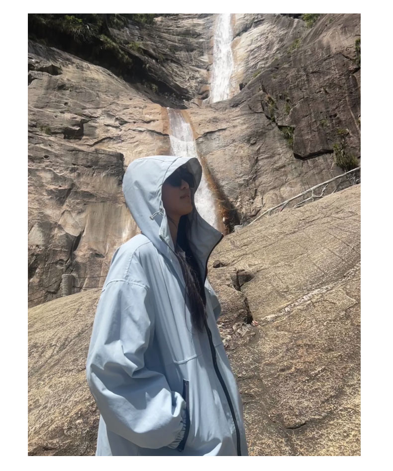 藍色夏季衝鋒衣女款防曬衣薄美式戶外爬山登山服外套川西旅遊穿搭