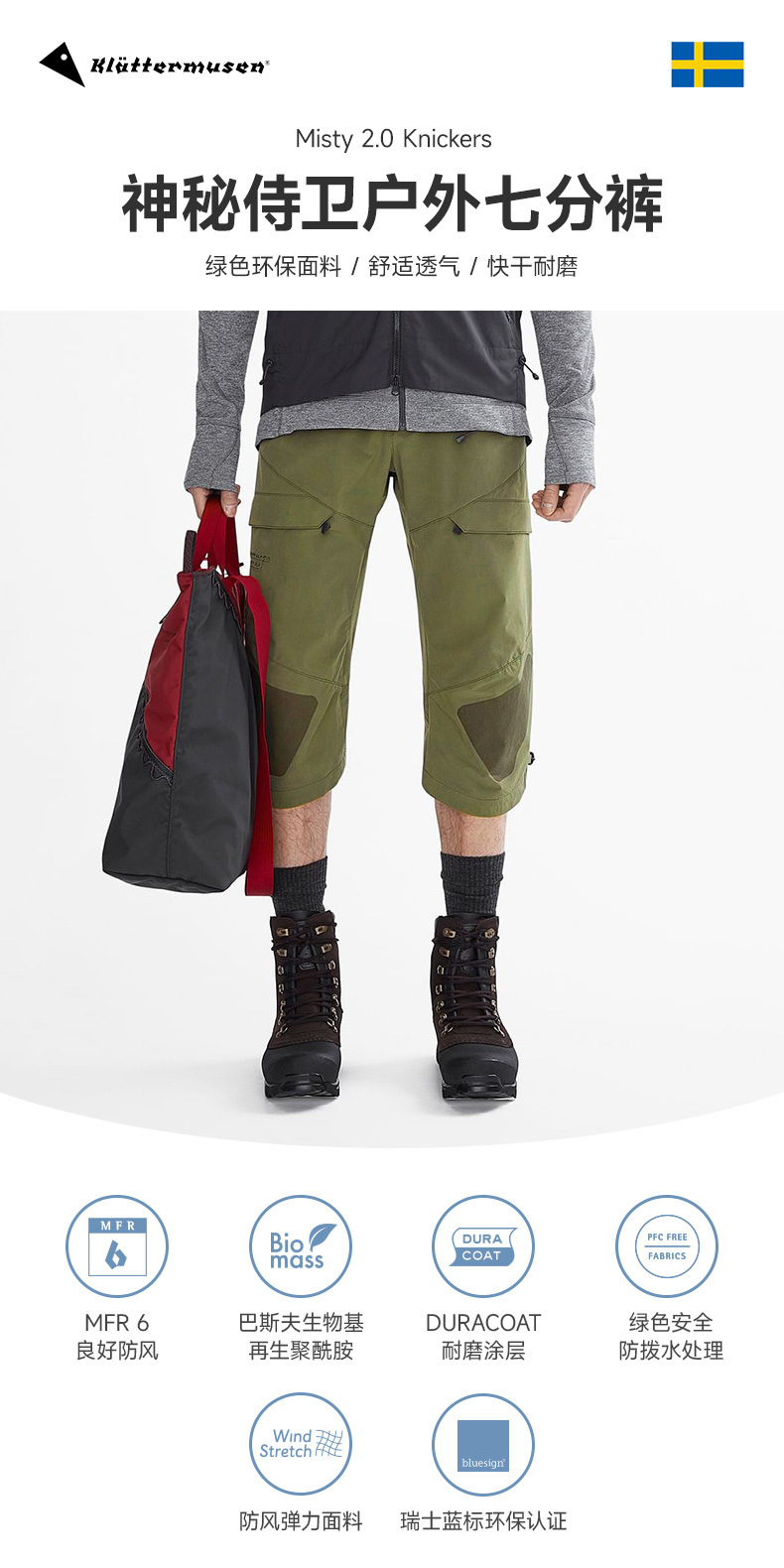 Klattermusen攀山鼠神祕侍衛男士戶外徒步軟殼快乾七分短褲15572M