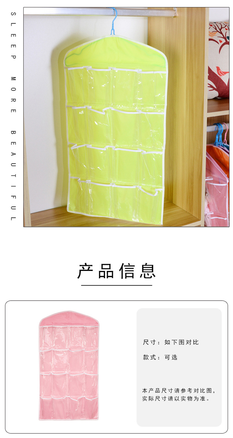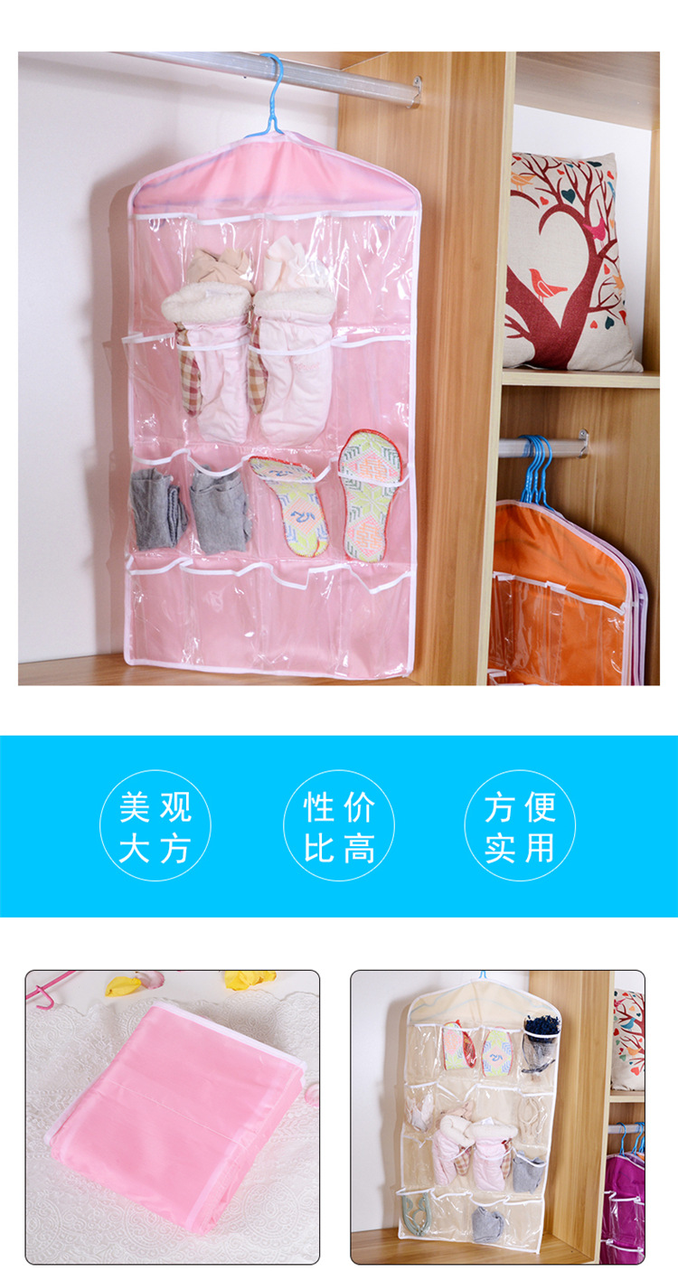 16格 多格衣柜内裤袜子分类收纳袋挂袋 悬挂式储物整理收纳袋地摊
