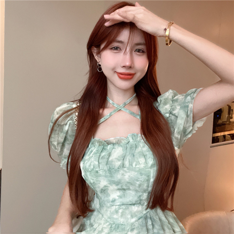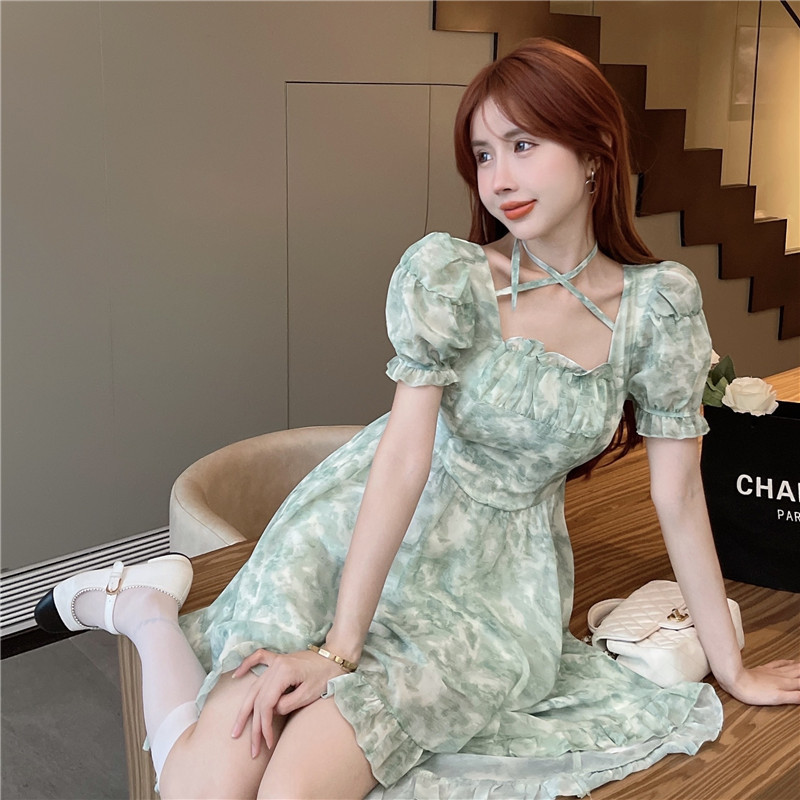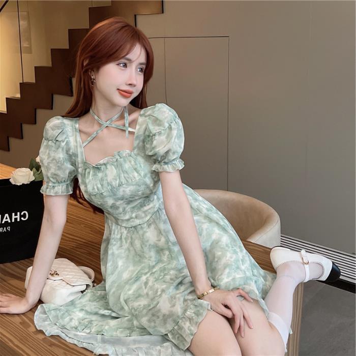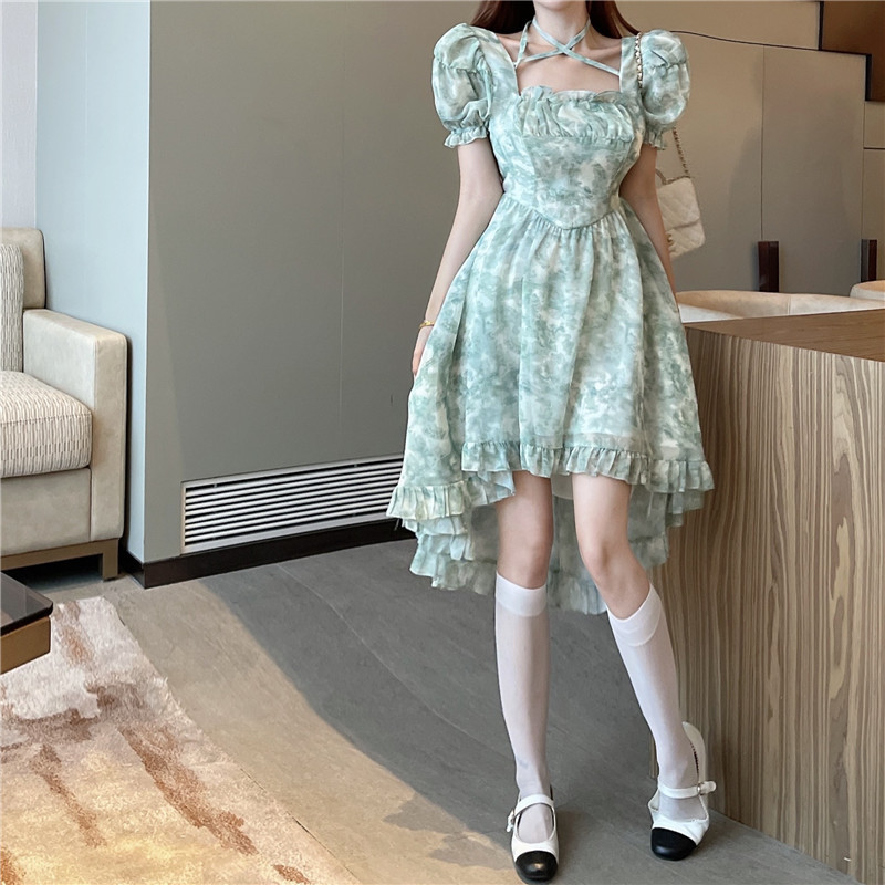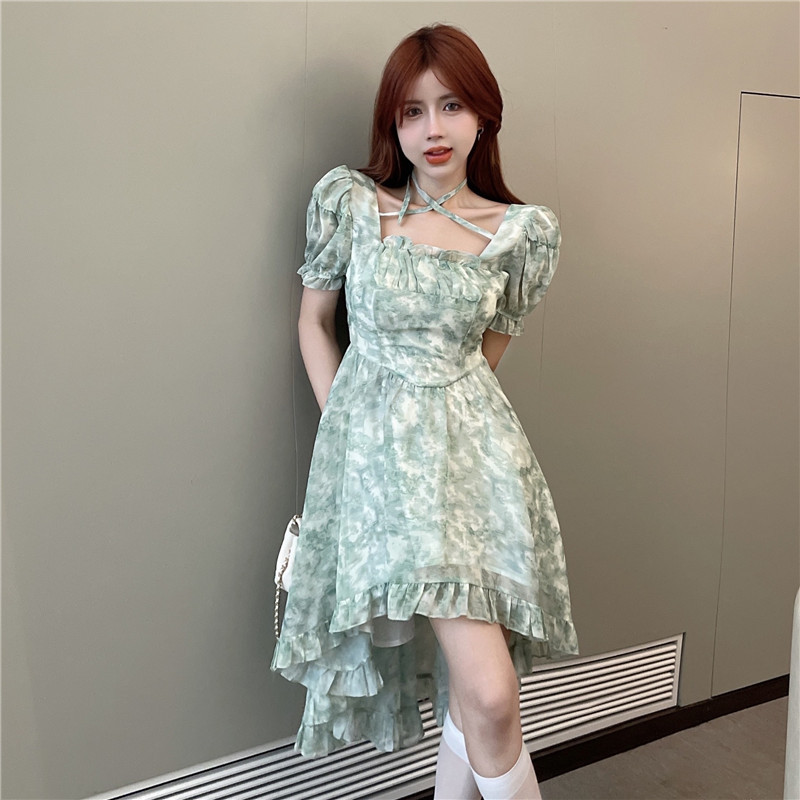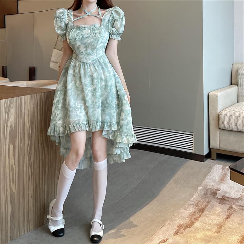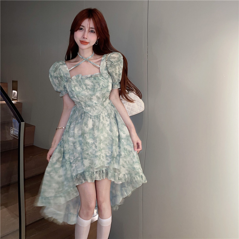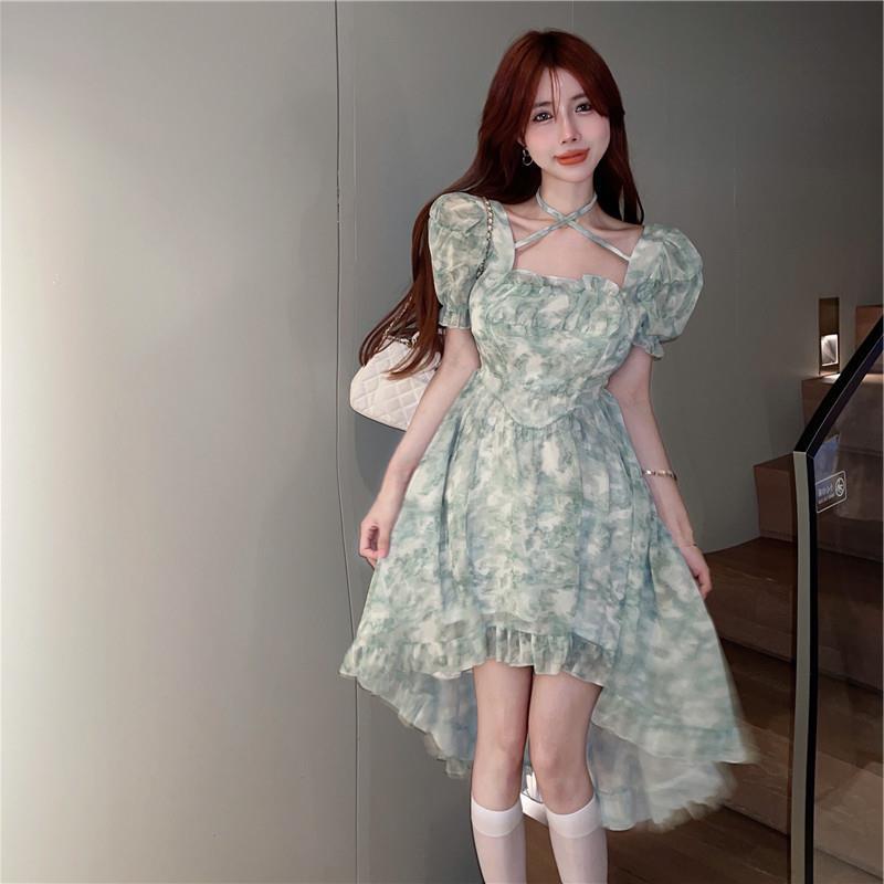 不规则设计感前短后长连衣裙夏装法式碎花森系初恋连衣裙小清新女