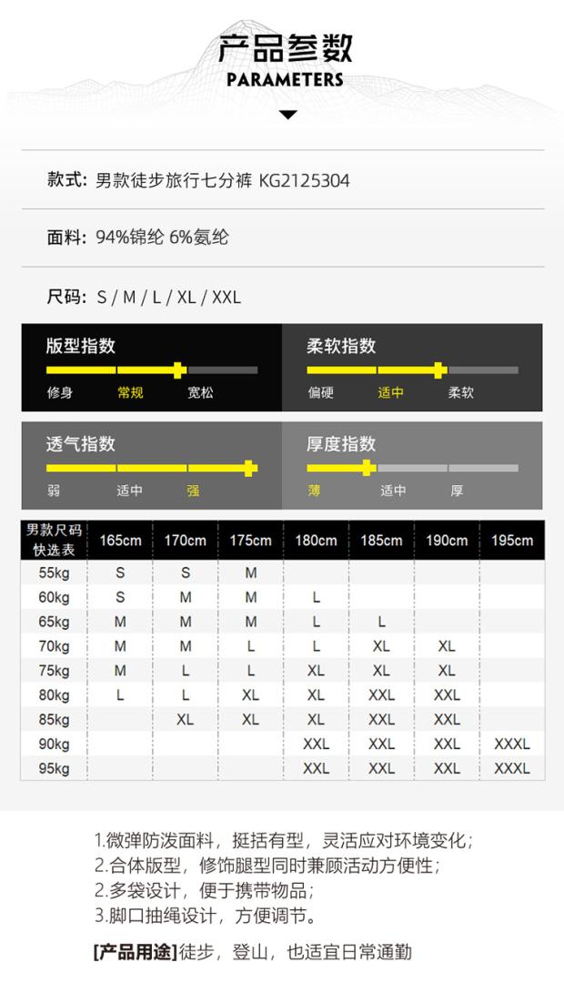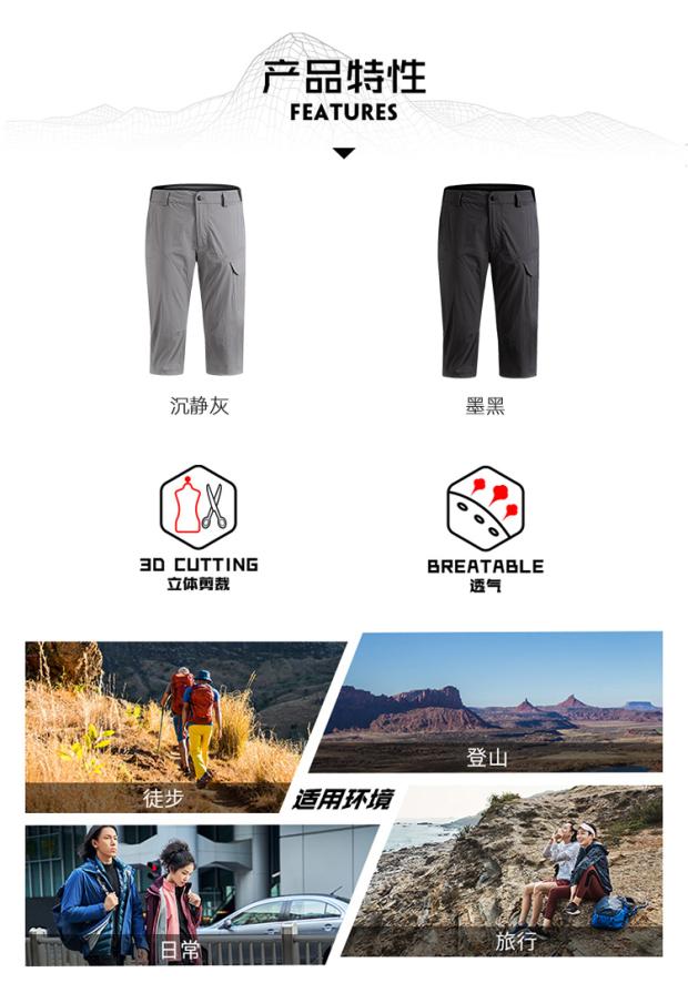 春夏新凱樂石男款速乾七分褲徒步旅行透氣登山G510565