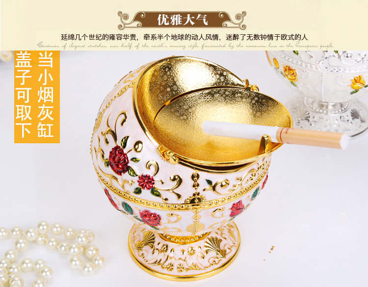 带盖多功能创意烟缸欧式烟灰缸客厅金属客厅KTV办公室家居有盖子