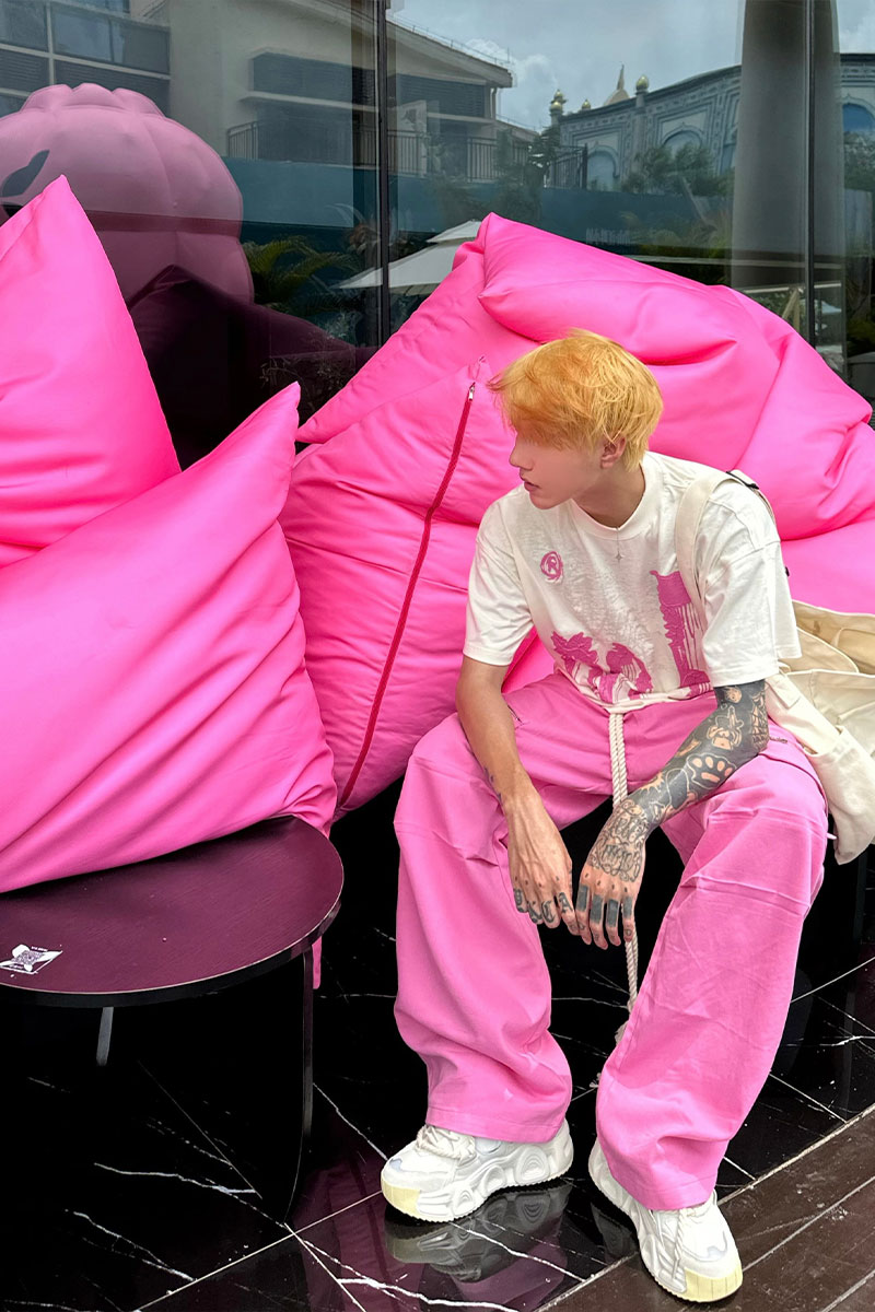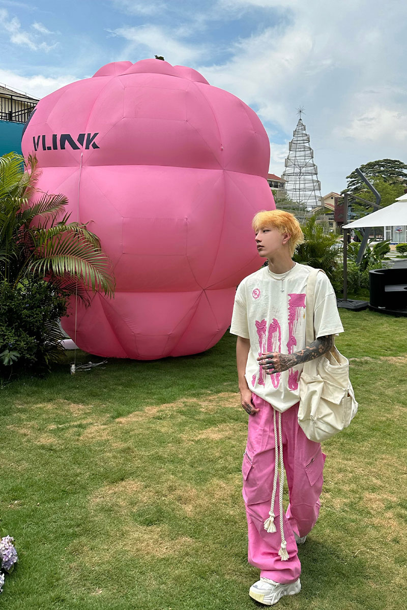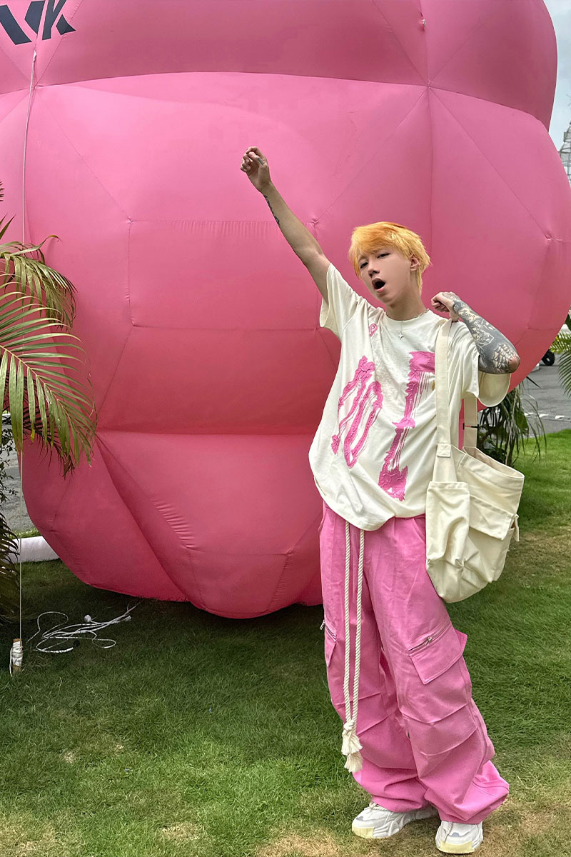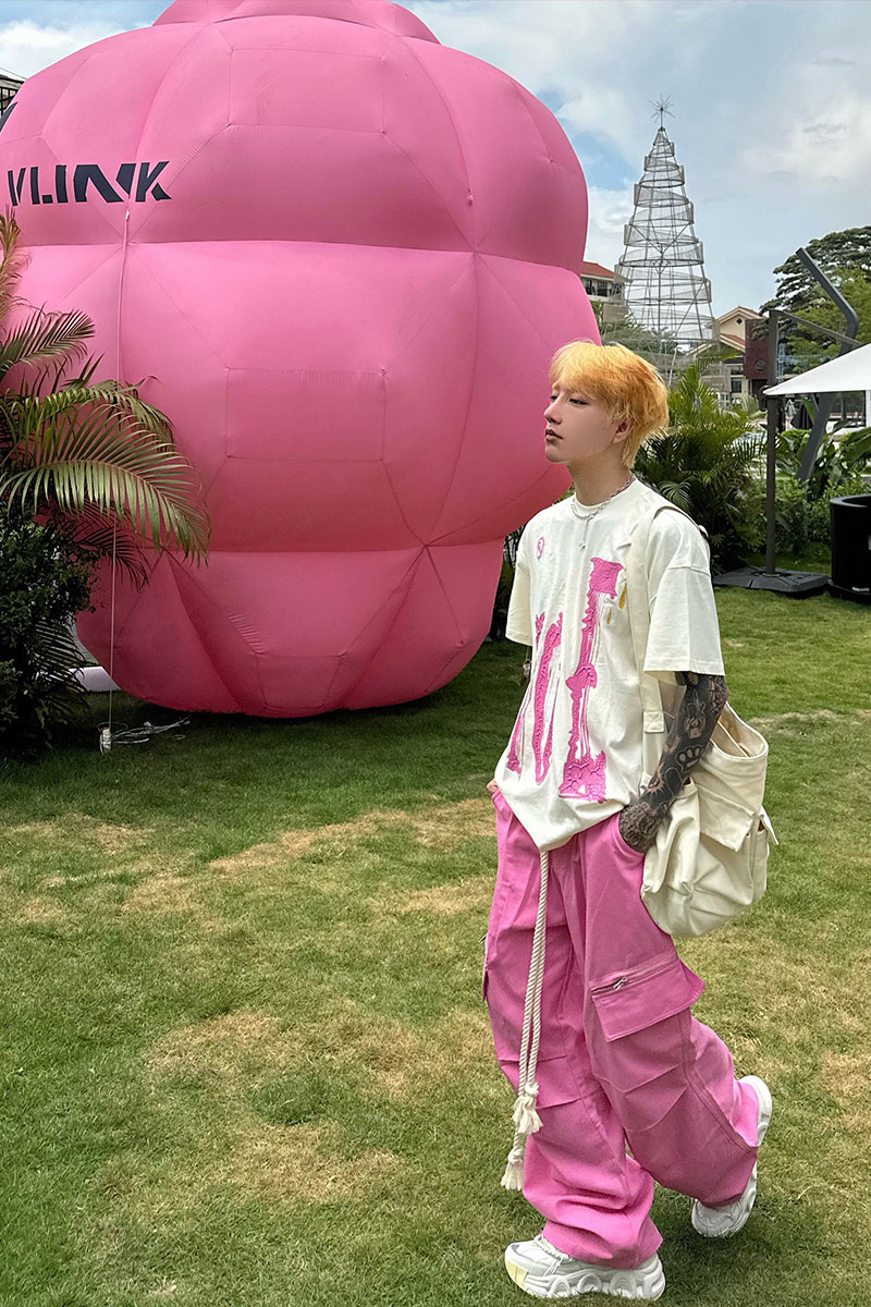 美式復古粉色工裝褲潮牌男款夏日多巴胺穿搭嘻哈hiphop直筒寬褲