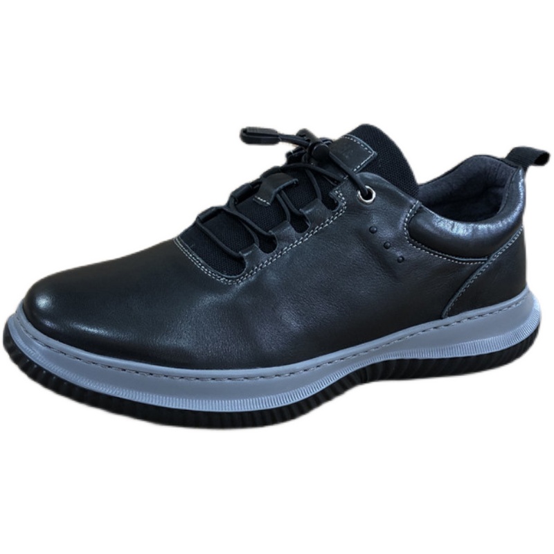 撤櫃處理真皮男鞋冬新款牛皮拼色鬆緊帶中跟防滑底青年運動休閒鞋