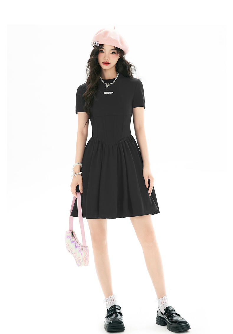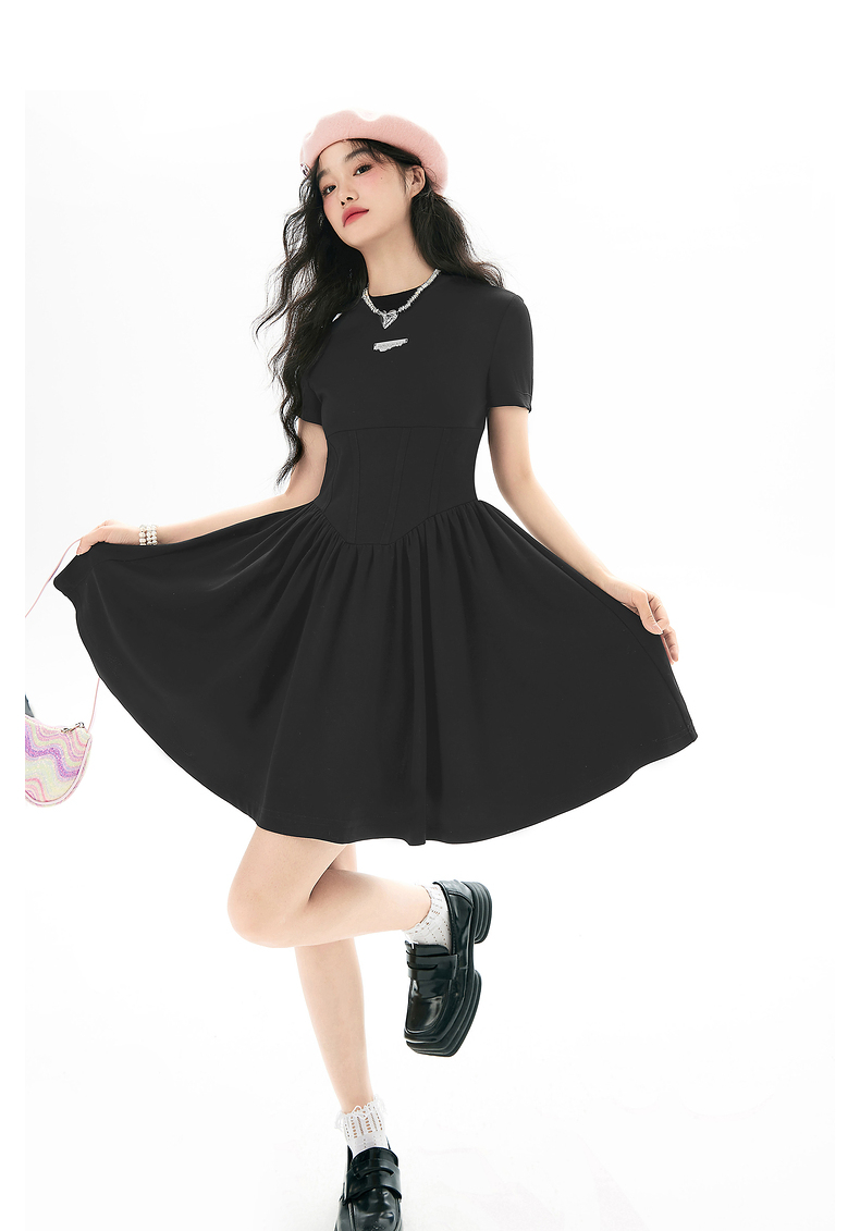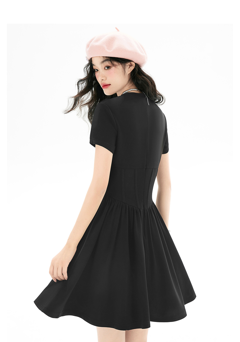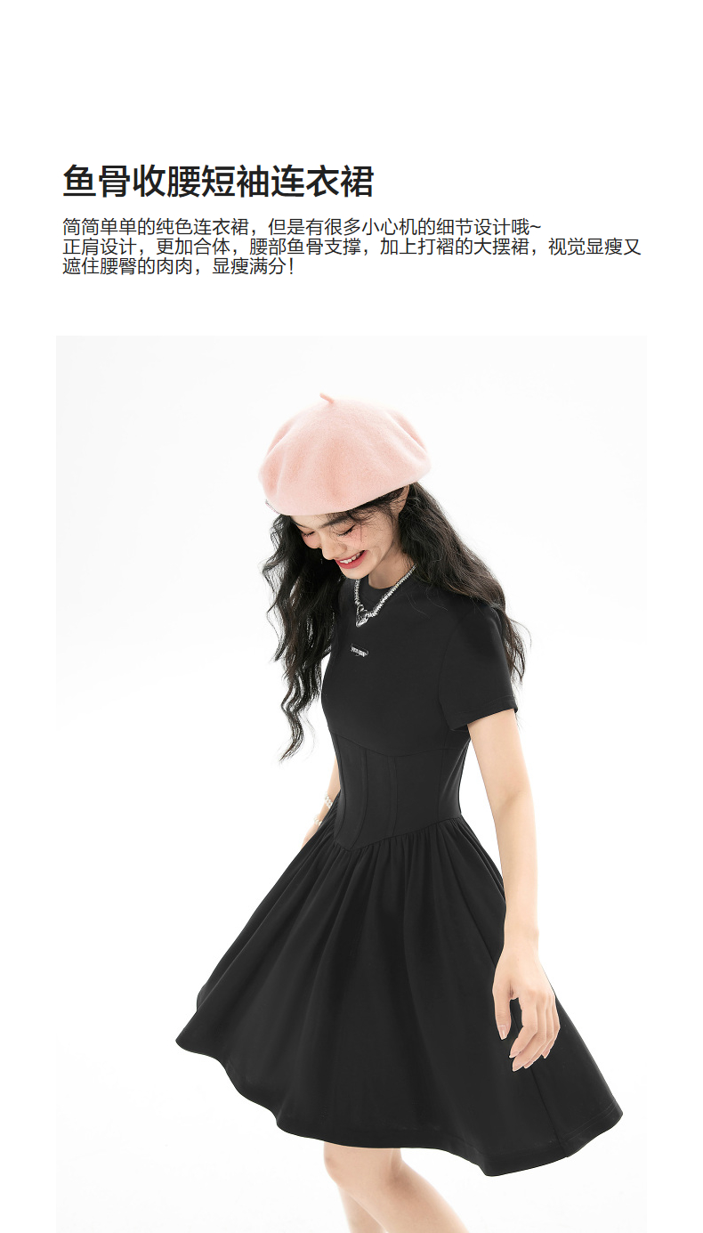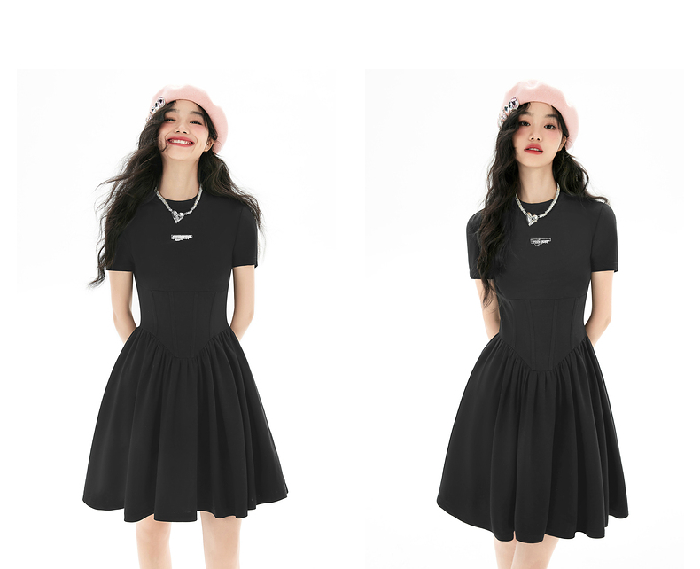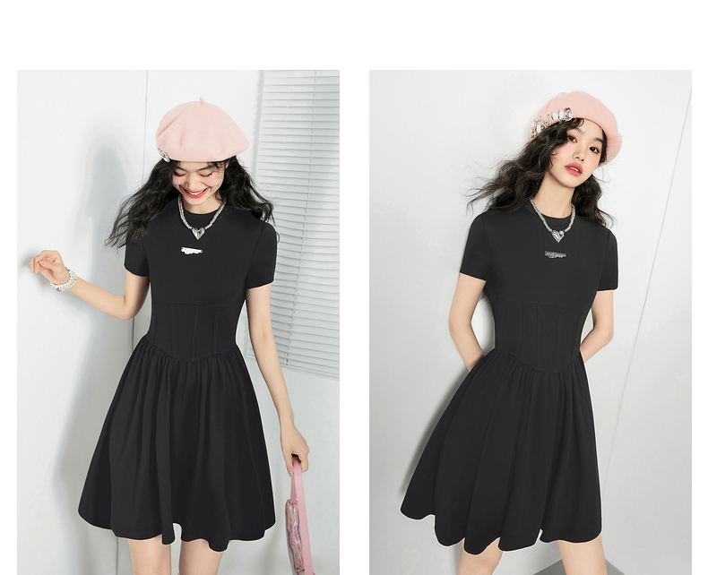 EPTISON短袖洋裝女2023夏季新款法式高級小眾設計感氣質長裙子