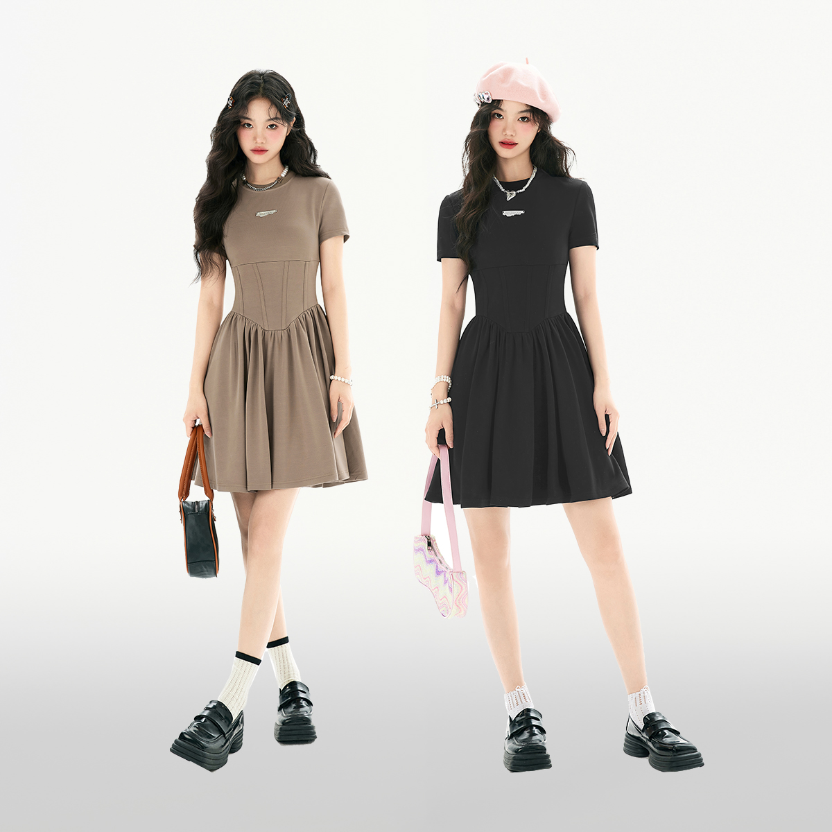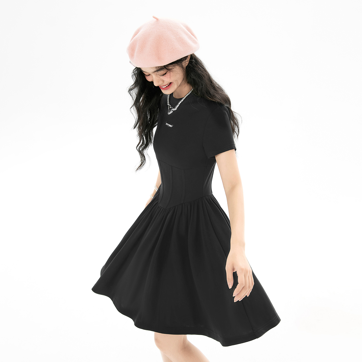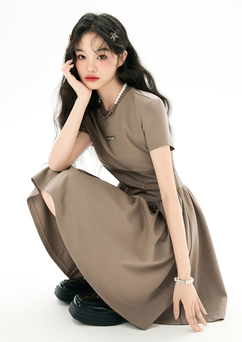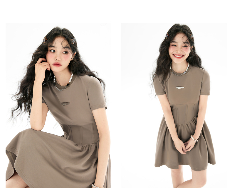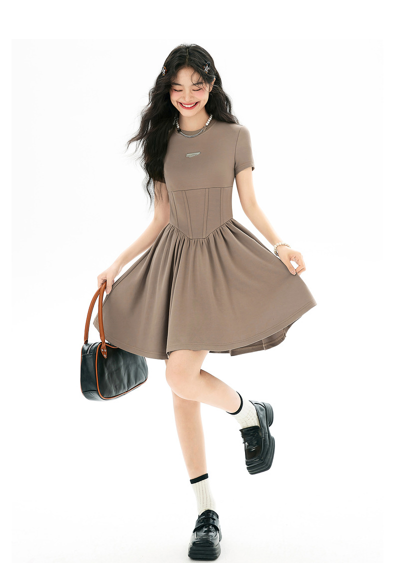 EPTISON短袖洋裝女2023夏季新款法式高級小眾設計感氣質長裙子