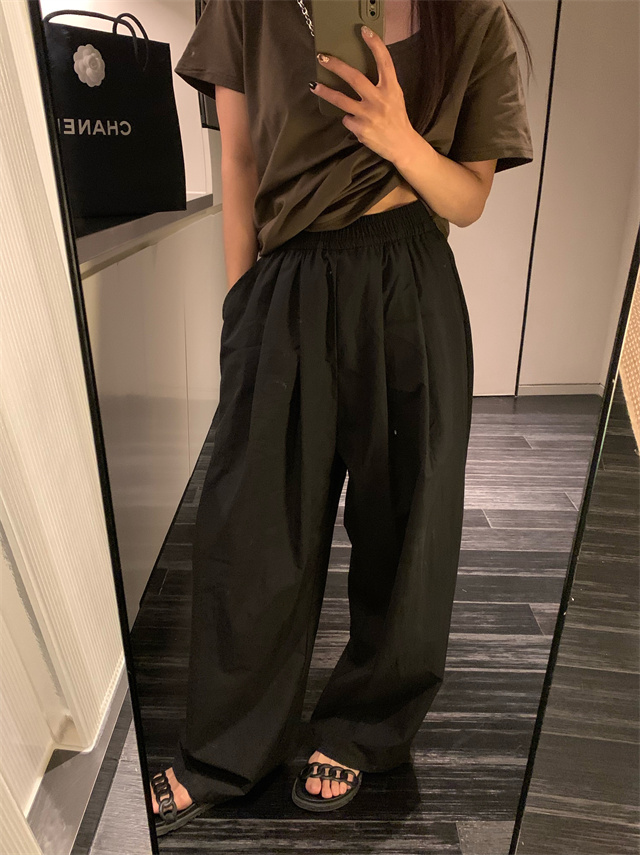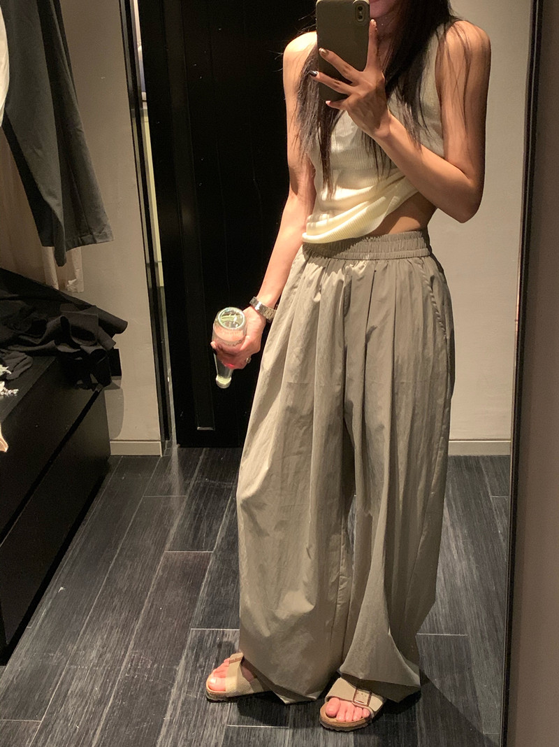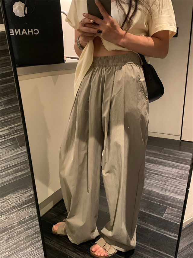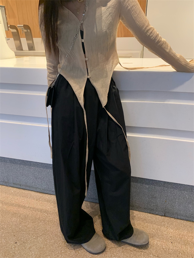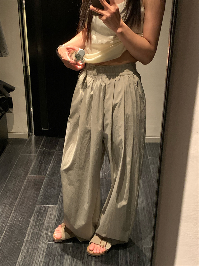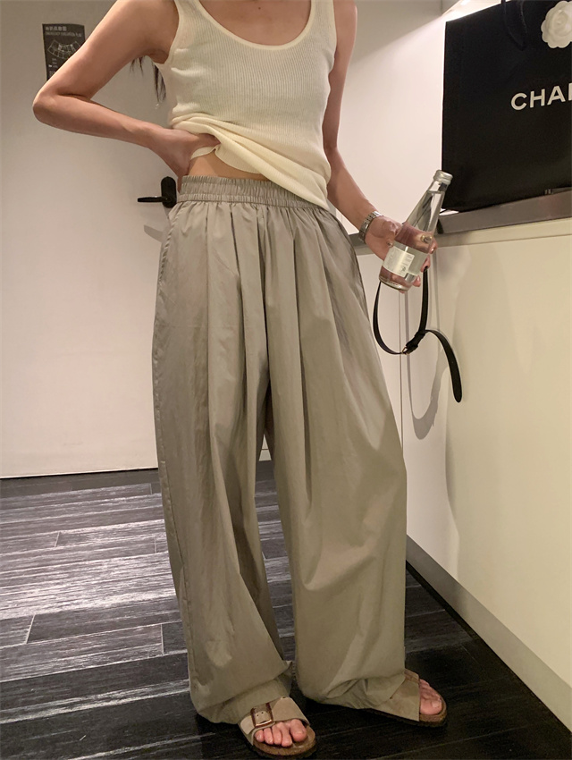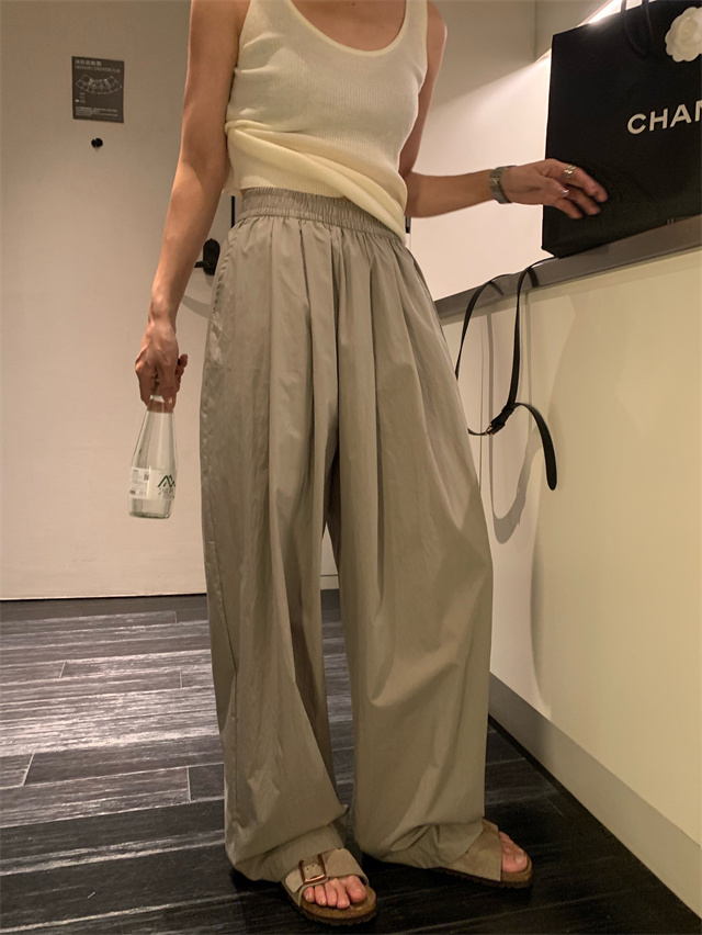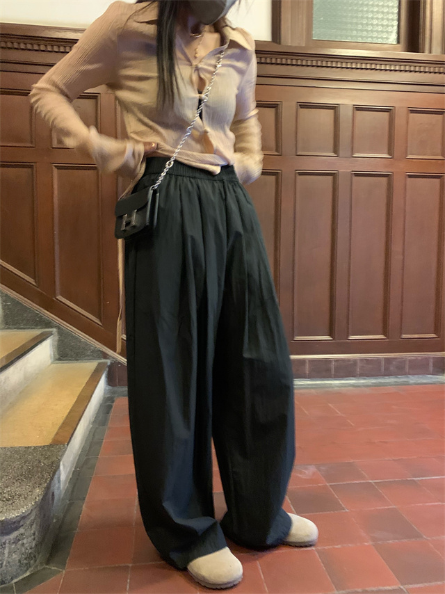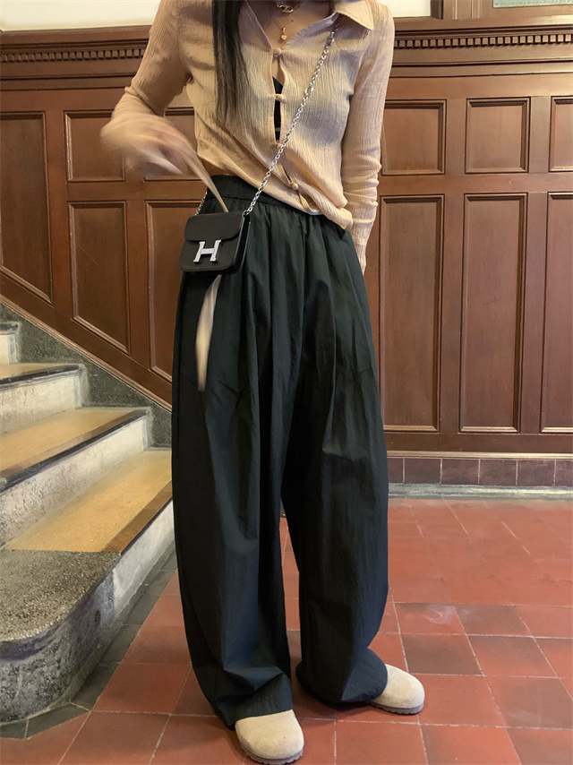 留下 1992 微皺空氣感舒適寬鬆百搭拖地褲慵懶隨性百搭直筒褲女潮