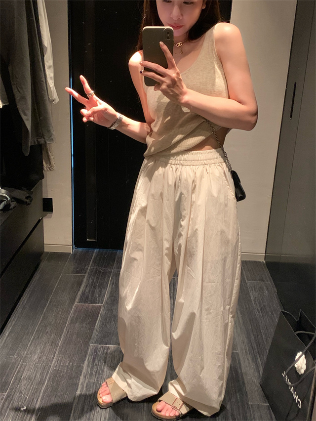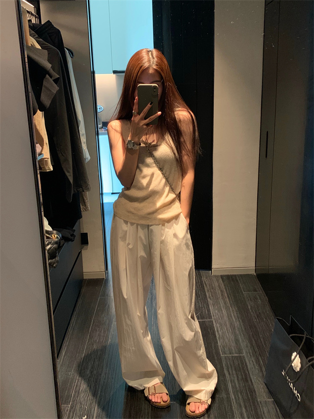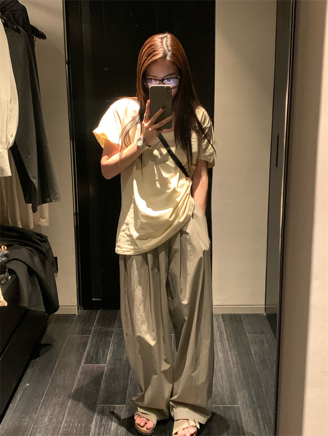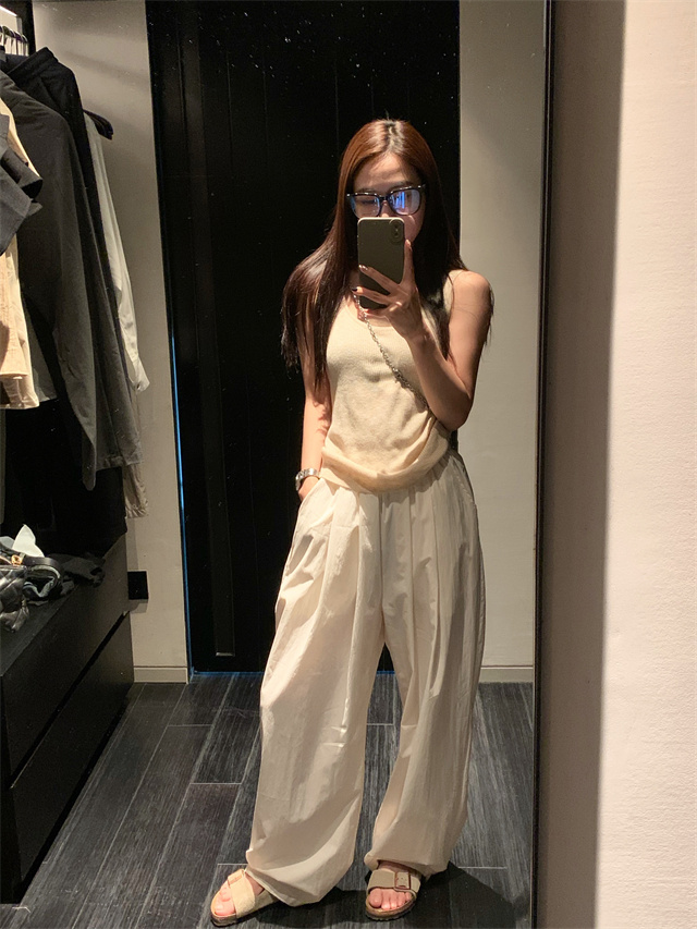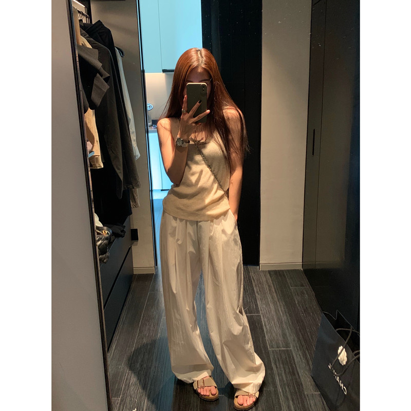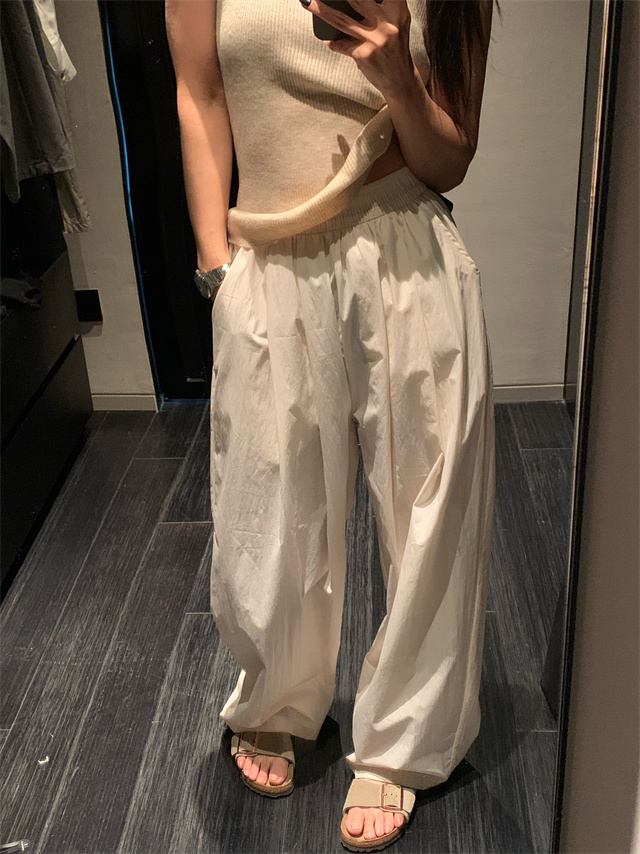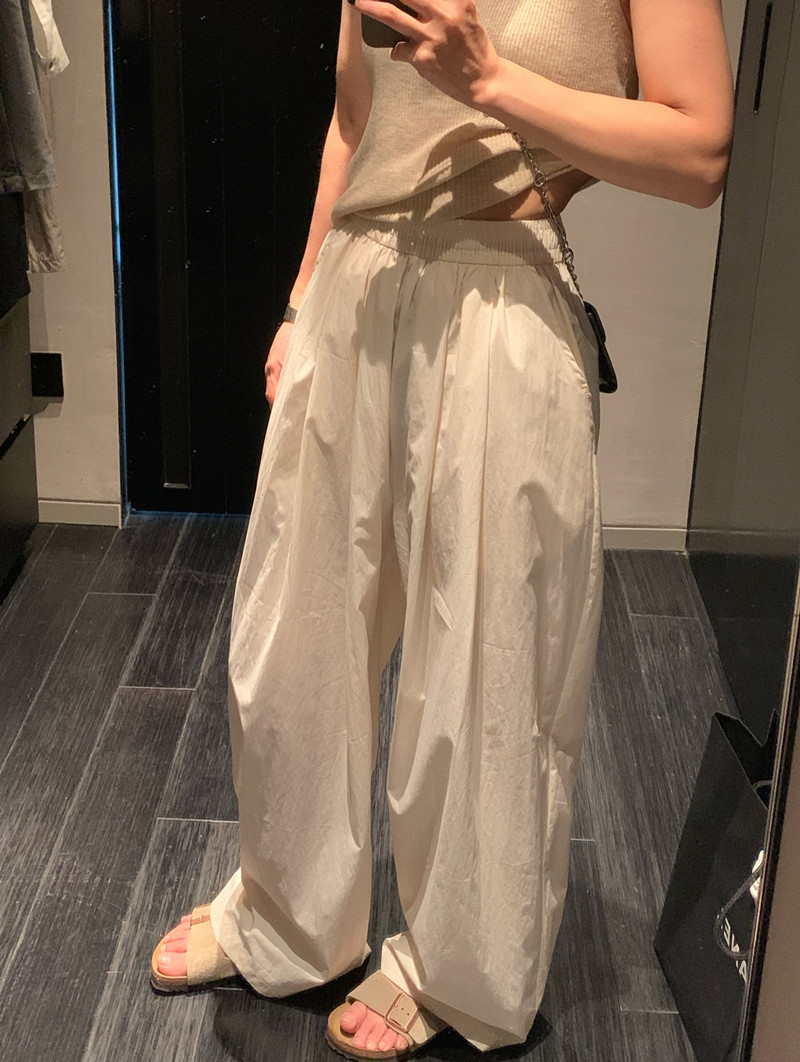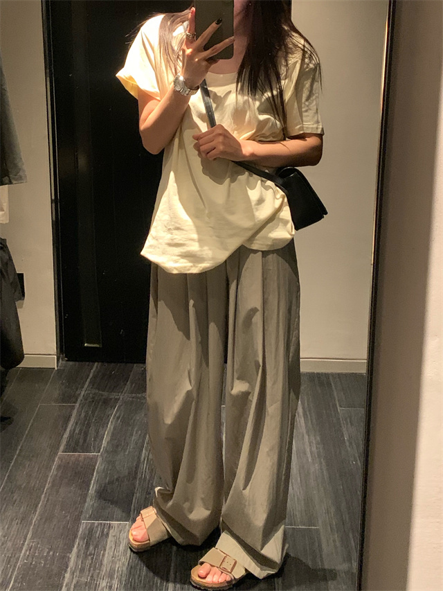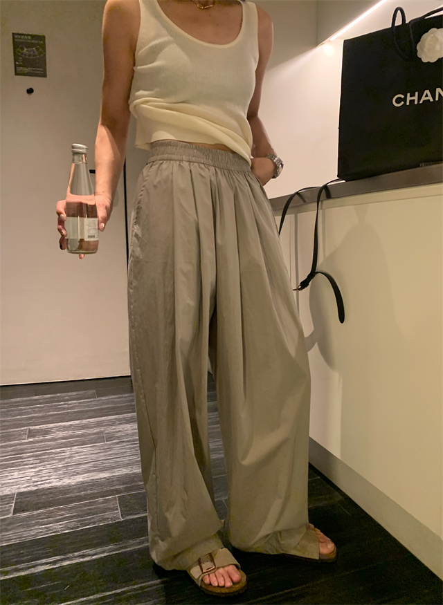 留下 1992 微皺空氣感舒適寬鬆百搭拖地褲慵懶隨性百搭直筒褲女潮