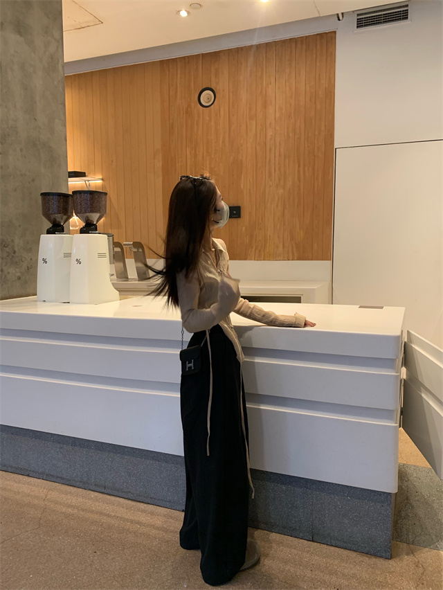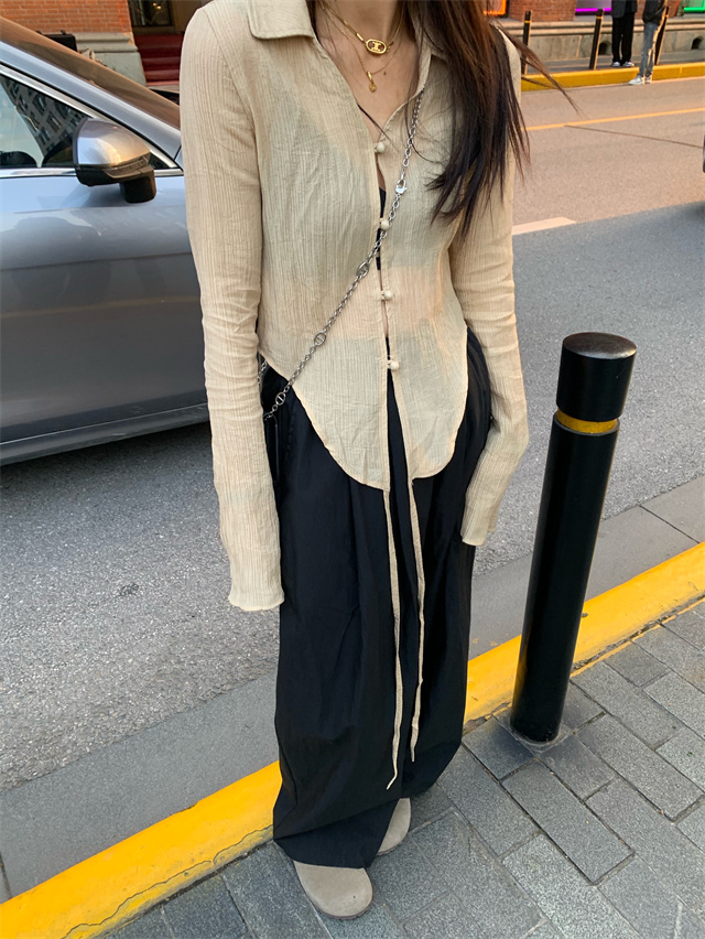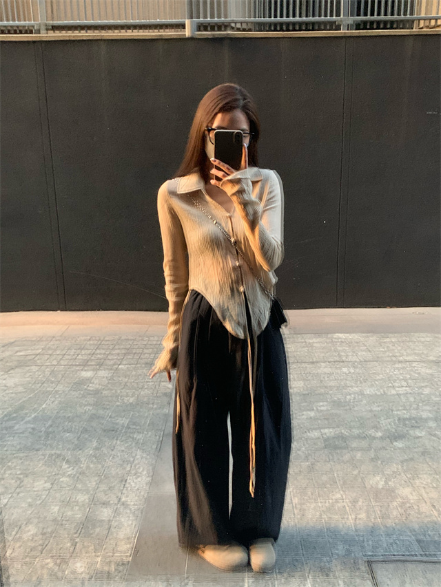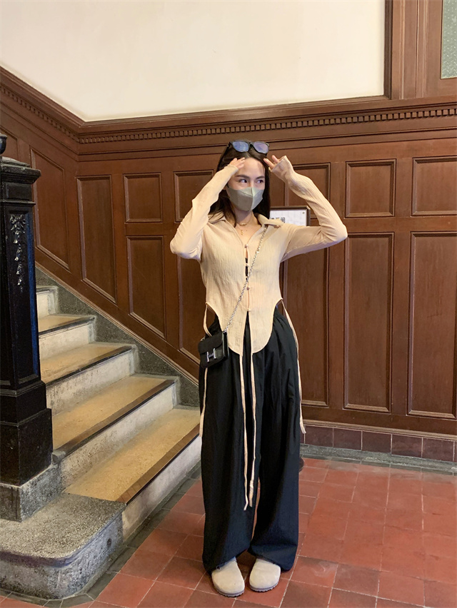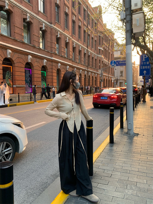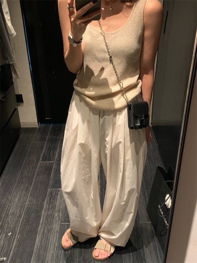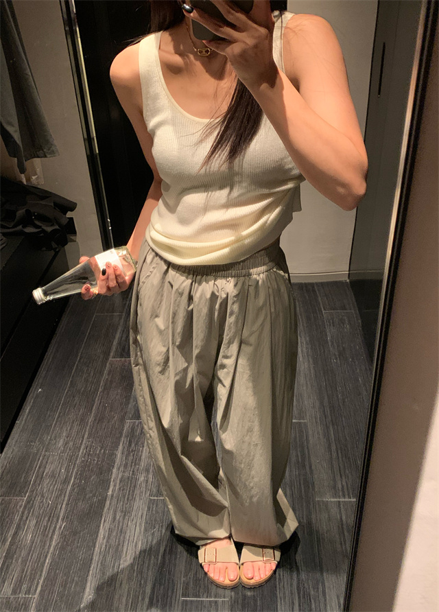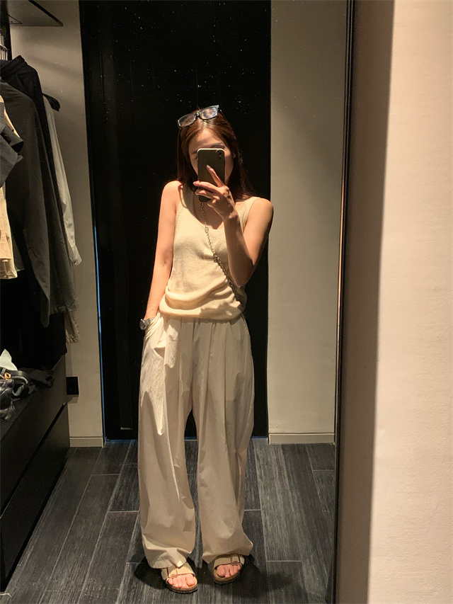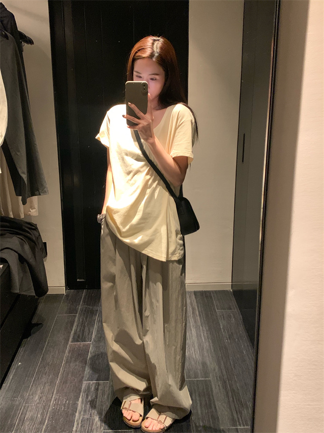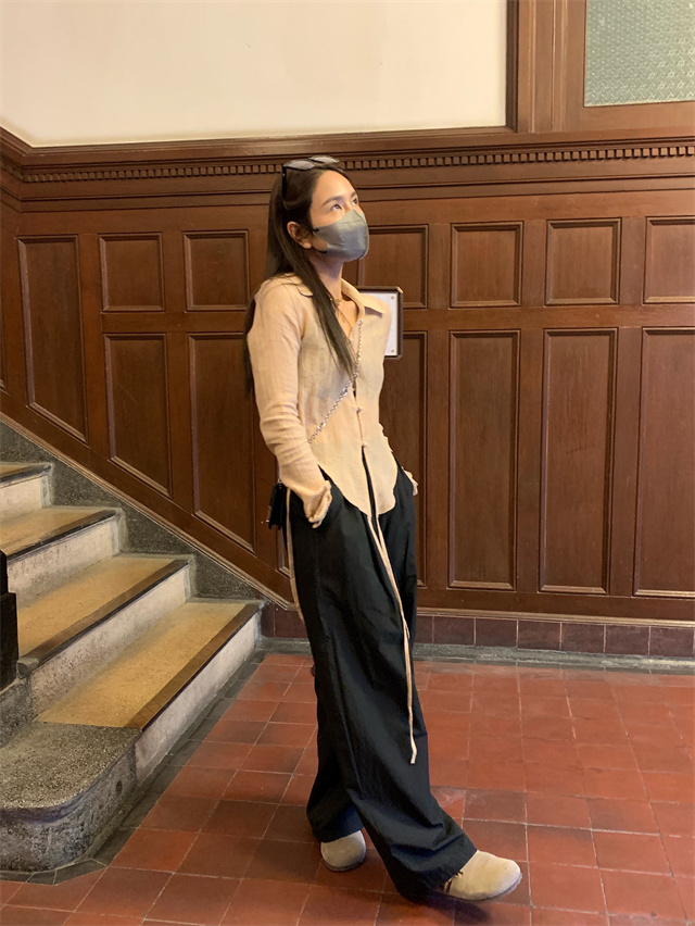 留下 1992 微皺空氣感舒適寬鬆百搭拖地褲慵懶隨性百搭直筒褲女潮