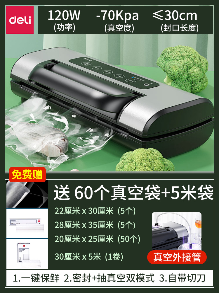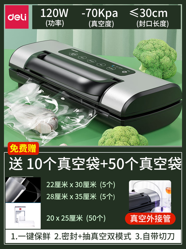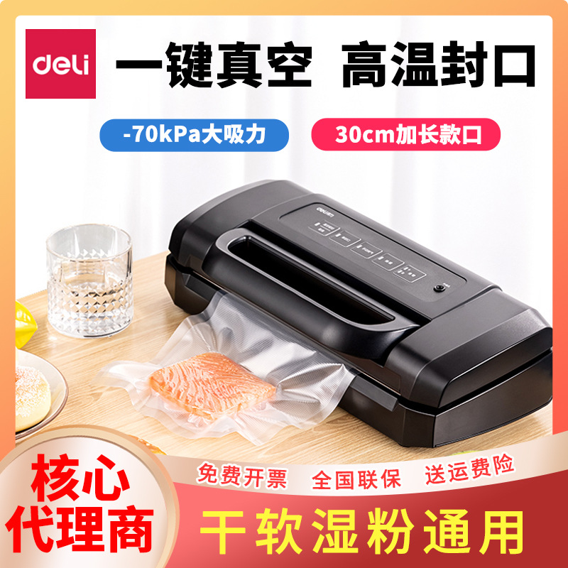得力LM1001真空保鲜封口机家庭用干湿全自动小型食品抽真空包装机