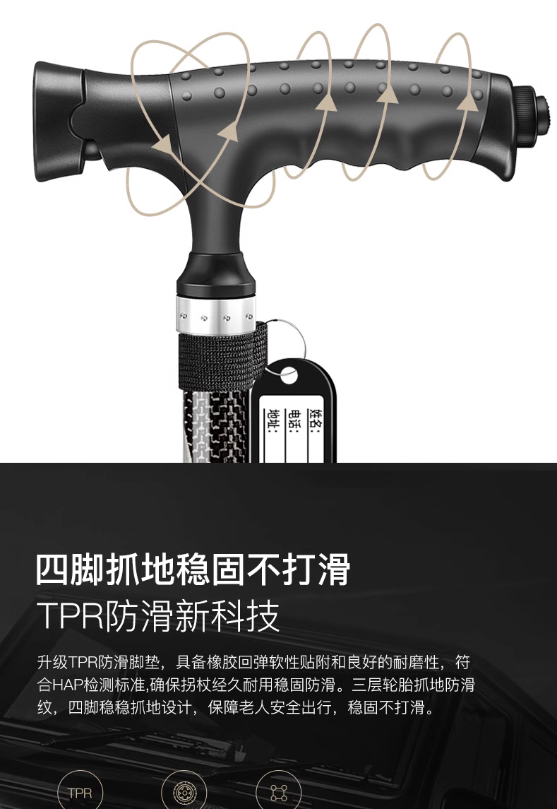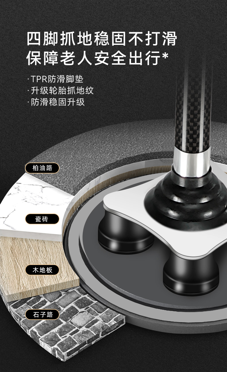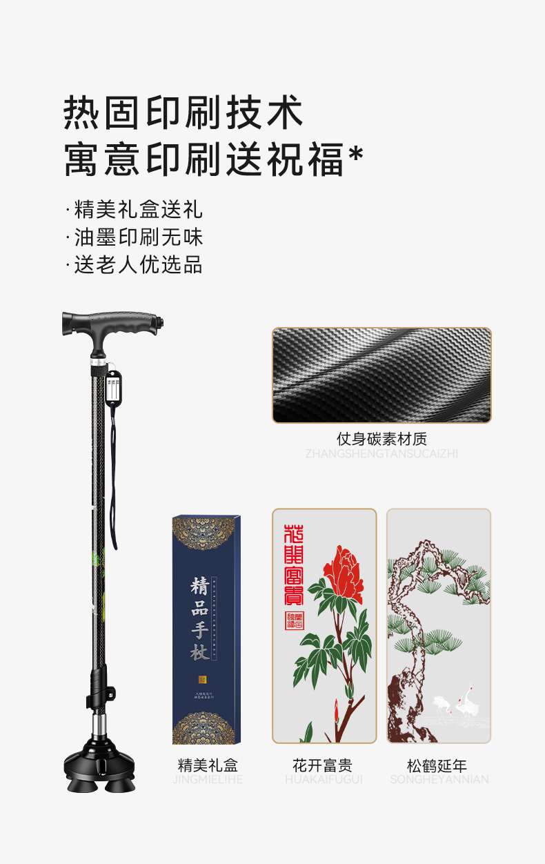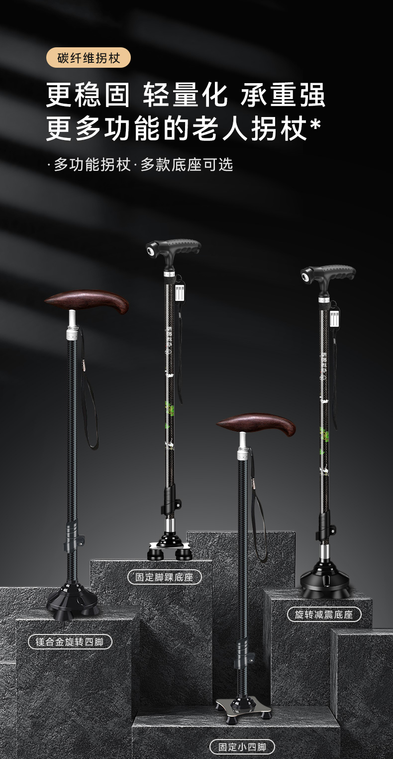 釣魚熊老人柺杖碳素超輕伸縮手杖四腳防滑輕便老年人碳纖維柺棍扙