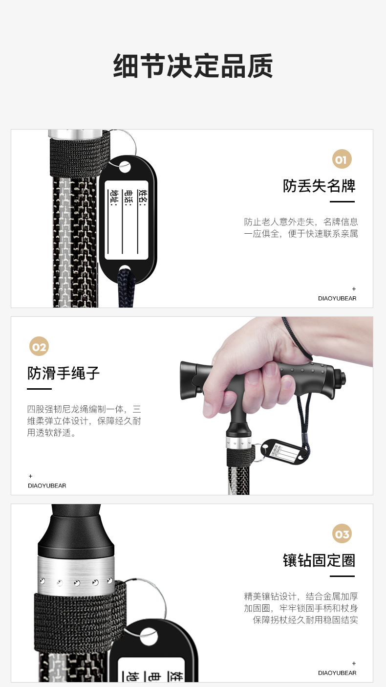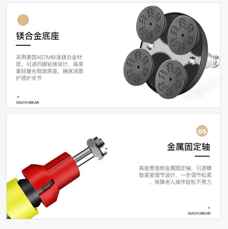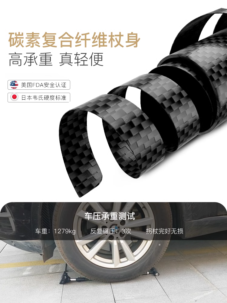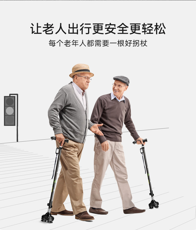 釣魚熊老人柺杖碳素超輕伸縮手杖四腳防滑輕便老年人碳纖維柺棍扙