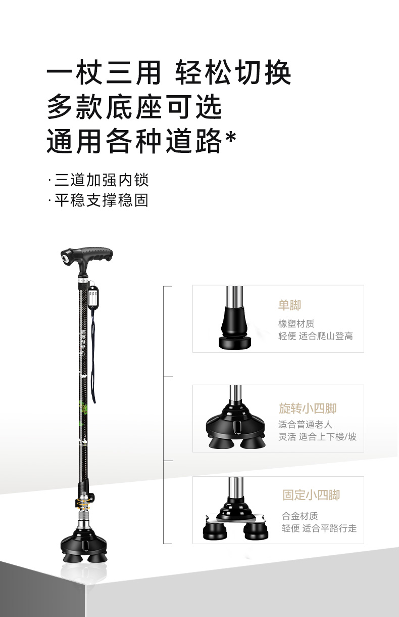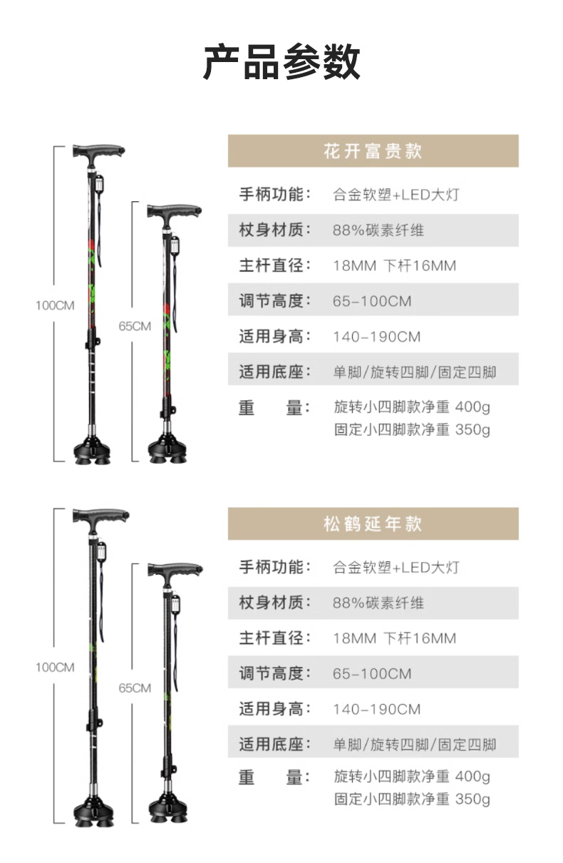 顏色分類 鬆鶴延年單用(燈座可調+碳素)單腳 純色加粗單用(燈座可調+碳素)單腳 鬆鶴延年兩用(燈座可調+碳素)單腳+旋轉四腳 鬆鶴延年兩用(燈座可調+碳素)單腳+固定四腳 鬆鶴延年三用(燈座可調+碳素)單腳+固定+旋轉 升級加厚禮盒裝(雞翅木手柄+輕便碳素)單腳 紅木手柄兩用款(碳素)單腳+固定小四腳 紅木手柄兩用款(碳素)單腳+旋轉小四腳