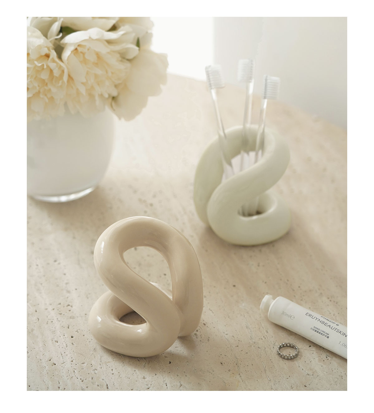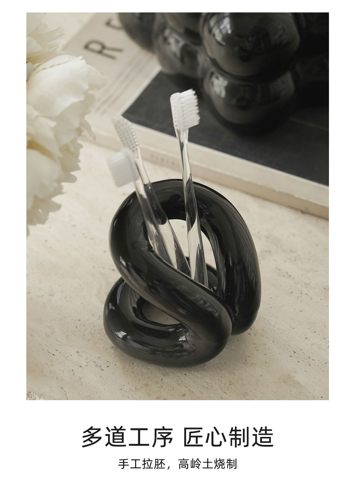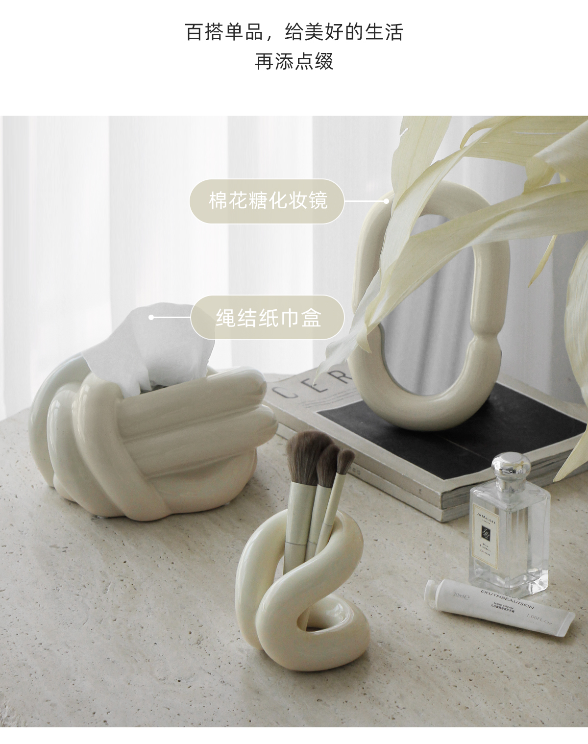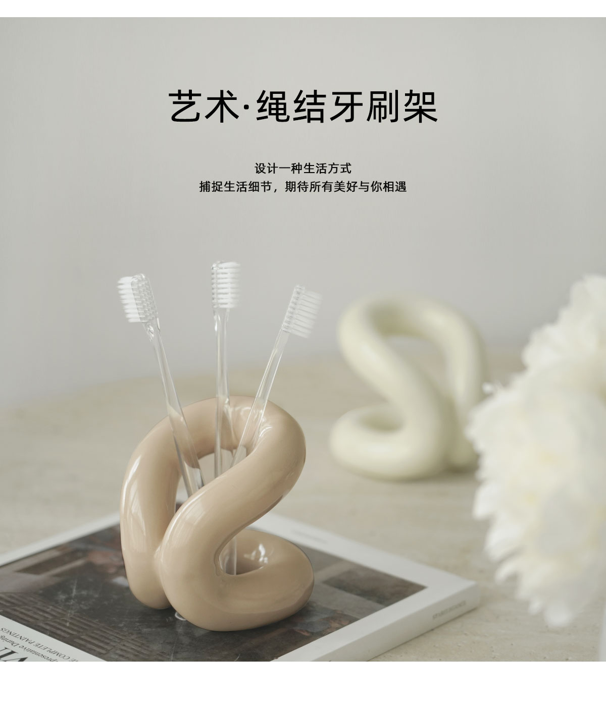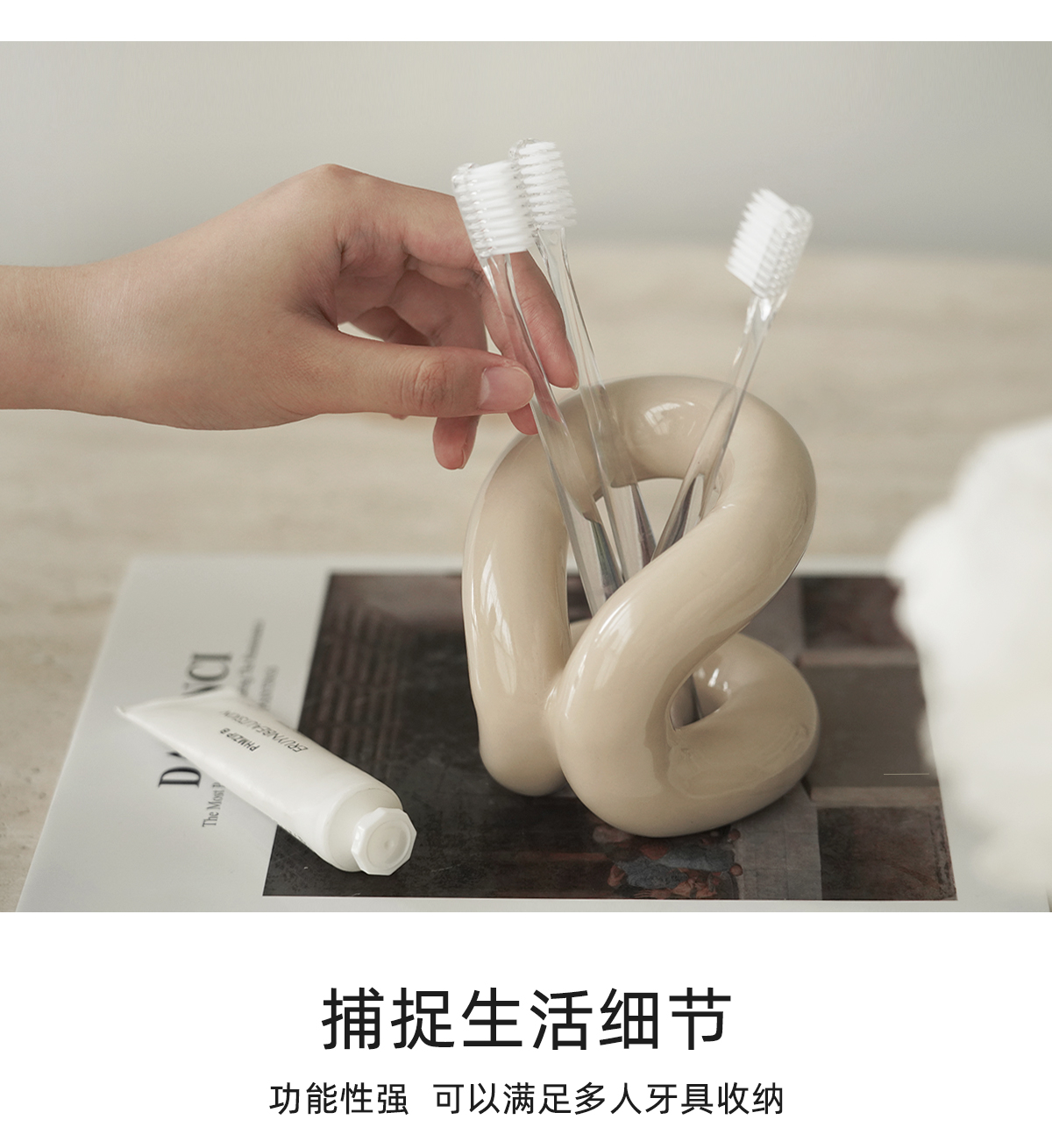 納茉生活繩結系列陶瓷牙刷架置物架情侶化妝室牙具牙膏裝飾收納層架