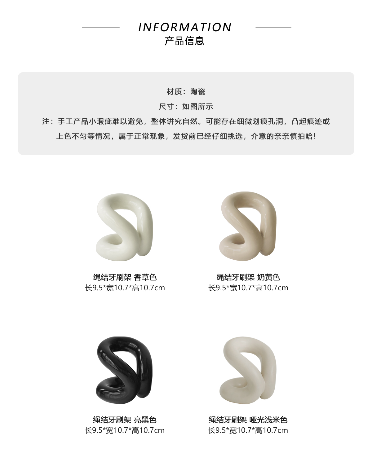 顏色分類 繩結牙刷架 香草色,繩結牙刷架 奶黃色,繩結牙刷架 亮黑色