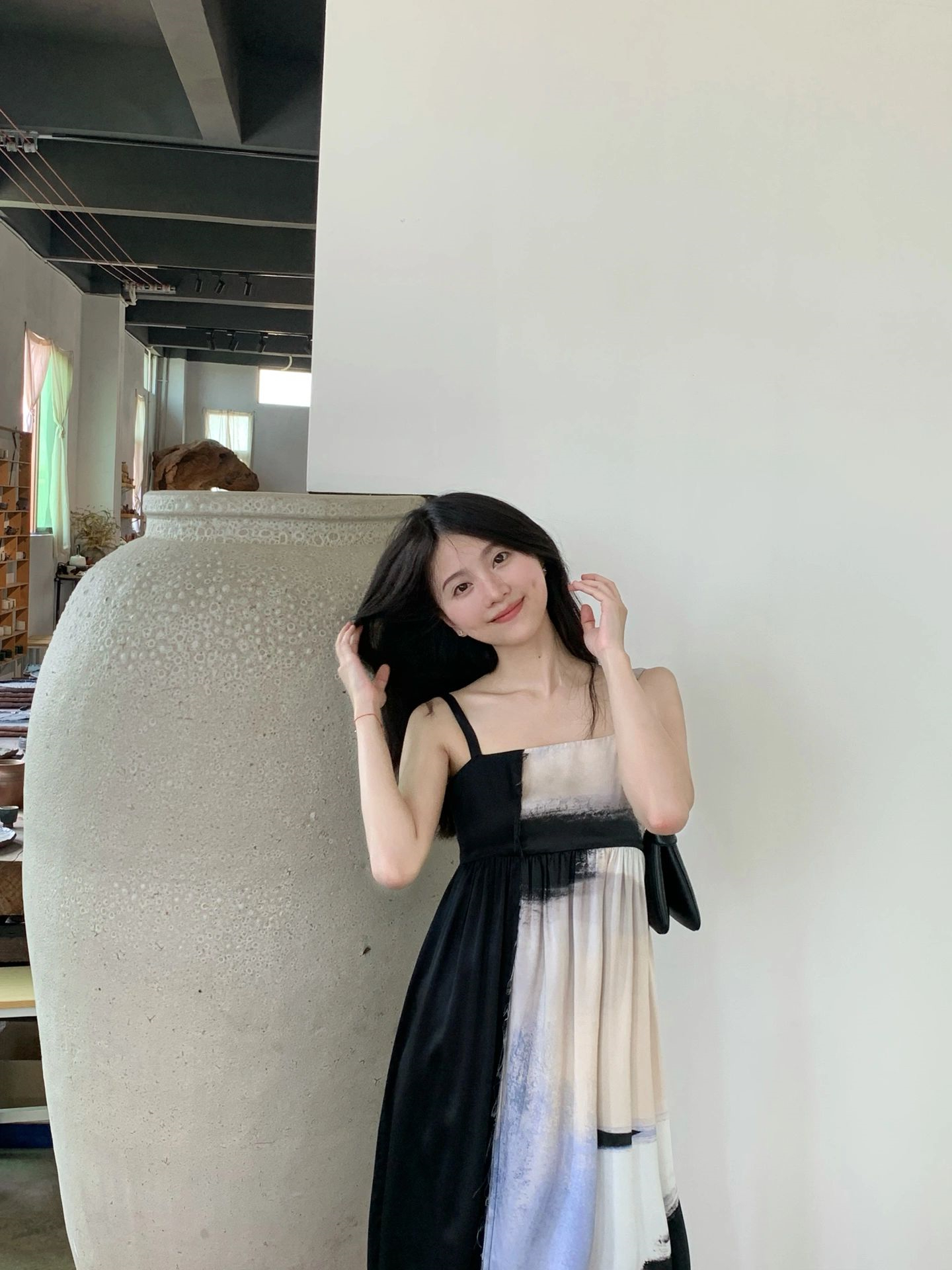 FENNI STUDIO/千禧 原創印花水墨畫吊帶洋裝女夏設計感小眾長裙