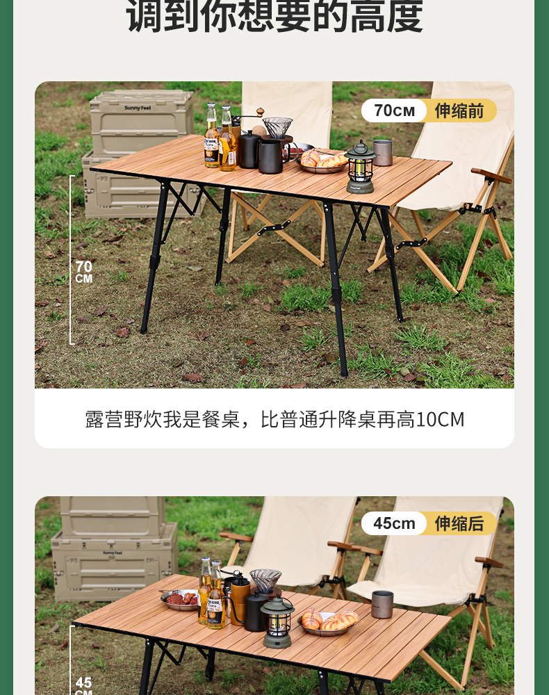 sunnyfeel山扉戶外摺疊蛋卷桌鋁合金可升降可攜式露營野餐月亮椅